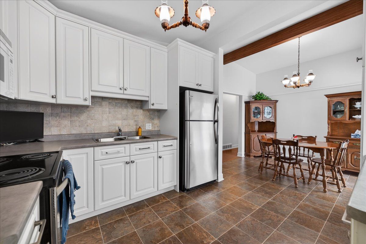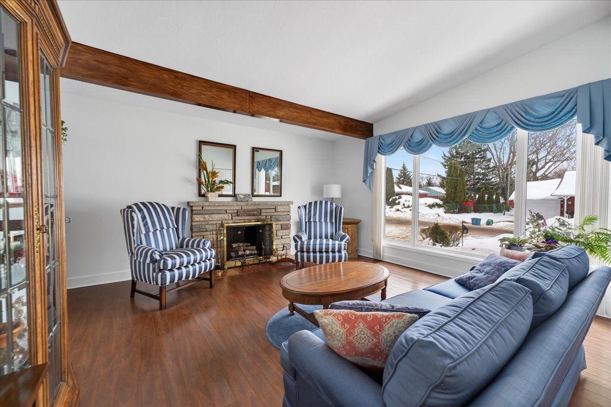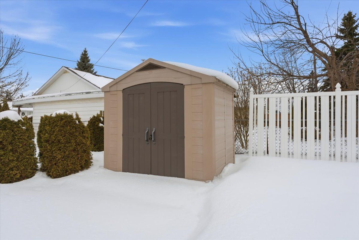 Welcome to this immaculately maintained bungalow, perfectly nestled in a warm, family-friendly neighbourhood close to schools, parks, shopping, transit, and everyday amenities. This home has been lovingly cared for and thoughtfully updated, offering true move-in ready comfort. Recent improvements include new asphalt shingles (2025), a/c (2024), all new windows (2022), and a beautifully updated kitchen (2021). The main bathroom has been refreshed, and stylish vinyl plank flooring adds both durability and modern appeal. The bright and inviting living room features a vaulted ceiling and a cozy wood-burning fireplace, creating the perfect setting for relaxing evenings. Downstairs, the fully finished basement offers additional living space with a welcoming gas fireplace in the recreation room - ideal for family gatherings, movie nights, or entertaining guests. The exterior is just as impressive. Step through the patio doors from the kitchen onto a spacious deck - perfect for bbqs and summer entertaining. An oversized canopy along the side of the home provides a wonderful shaded sitting area to enjoy the outdoors. The fully fenced backyard is beautifully landscaped with a lovely garden, offering both privacy and charm. Practical features include an extra-deep 26-foot single garage with garage door opener and an extra-wide double paved driveway, providing ample parking and storage. This is a home that truly shows pride of ownership inside and out. Book your private showing today - you won't be disappointed.