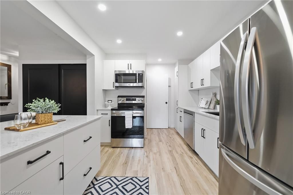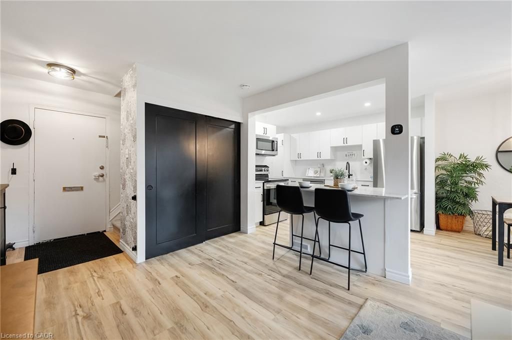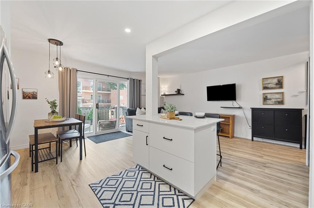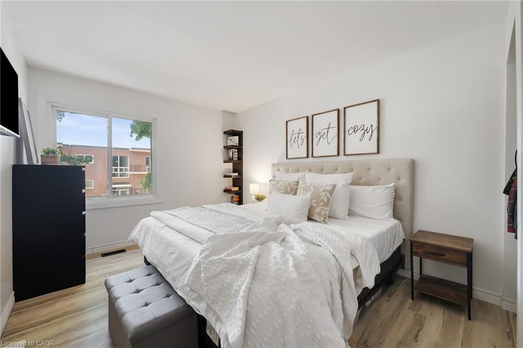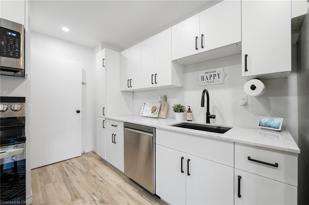 Stunningly renovated 3-bedroom, 1-bathroom two-storey condo townhome in st. Catharines desirable carlton neighbourhood. Tucked away at the back of a quiet, family-friendly complex, this home offers added privacy, a fully fenced backyard, and a stylish, move-in ready interior. Features a bright, open-concept main floor with new vinyl plank flooring throughout, large principal rooms, and a custom kitchen with modern cabinetry, stainless steel appliances, quartz countertops, and a breakfast island. Sliding patio doors lead to a private yard with patio, green space, and a shed perfect for relaxing or entertaining. Upstairs includes 3 spacious bedrooms with contemporary finishes and a renovated 4-piece bathroom. The partially finished basement adds flexible space for a rec room, home office, playroom, additional bedroom or gym. Freshly painted throughout, move-in ready and located near parks, schools, shopping, and transit this home offers the benefits of condo living without compromising on space or lifestyle.
