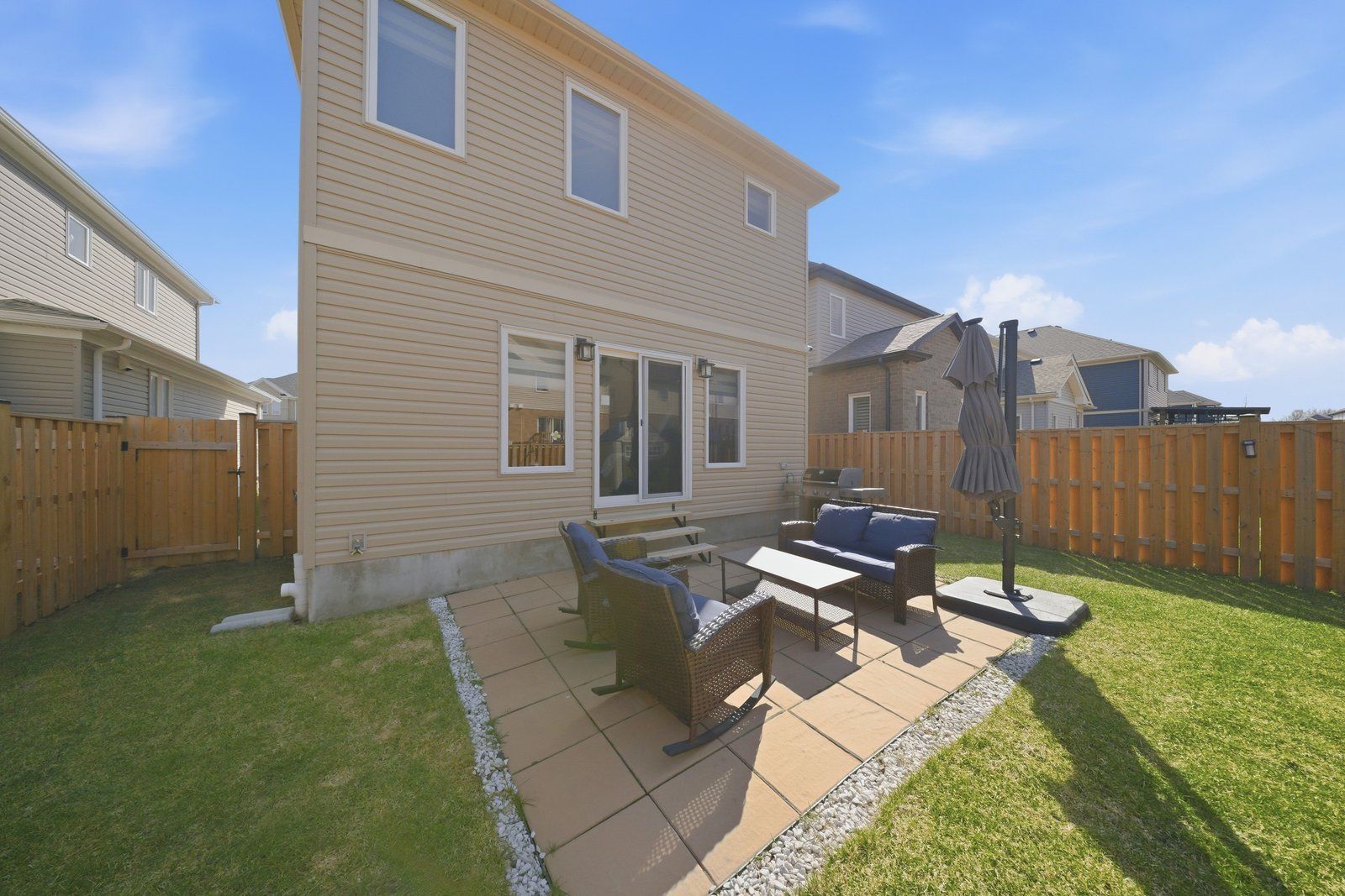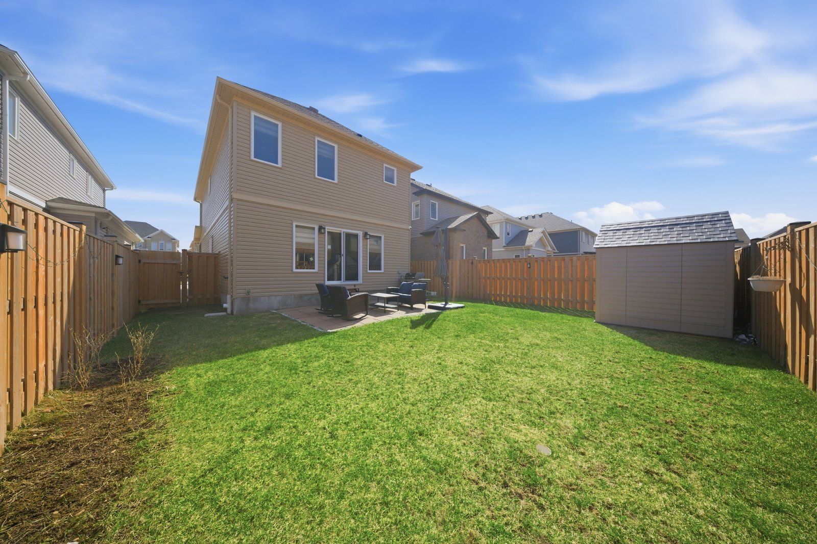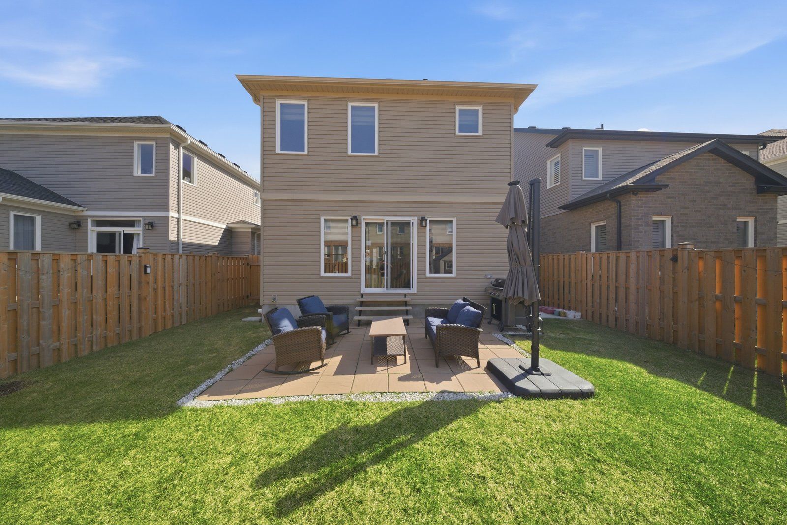 Welcome to 17 0ldham avenue, located in the highly sought-after pinehurst community of paris! Built in 2021 by reid's heritage homes, this stunning 2-storey residence offers approximately 1,849 sq. Ft. Of modern living space, featuring 3 bedrooms and 3 bathrooms. Step inside to an impressive open-concept layout highlighted by a grand foyer open to above and upgraded flooring throughout the main level. The spacious kitchen is designed to impress with quartz countertops, stylish backsplash, upgraded cabinetry, chimney hood fan, gas line, water line, and a large centre island perfect for entertaining. The bright dining area flows seamlessly into a combined with a separate great room with sliding doors leading to a fully fenced backyard complete with a shed. 9 ft ceiling on the main floor. Features a 2 piece powder room and convenient inside access from garage. An upgraded staircase leads to the second floor, where you'll find a generous primary bedroom with a walk-in closet and 4-piece ensuite, along with two additional bedrooms and a 3-piece main bathroom. The unfinished basement offers excellent 3-piece rough-in, cold room, laundry area, and 200 amp service. Additional features include a smart home system (google nest lock, digital doorbell, hikvision cameras), samsung appliances, water softener, garage door opener (belt drive) with 2 remotes, built-in garage storage, gas bbq line, and upgraded front/side pavement. Situated in a family-friendly neighbourhood, just minutes from pinehurst lake conservation area, central to highway 401 & 403. Schools parks gym and all essential amenities. Don't miss out !!