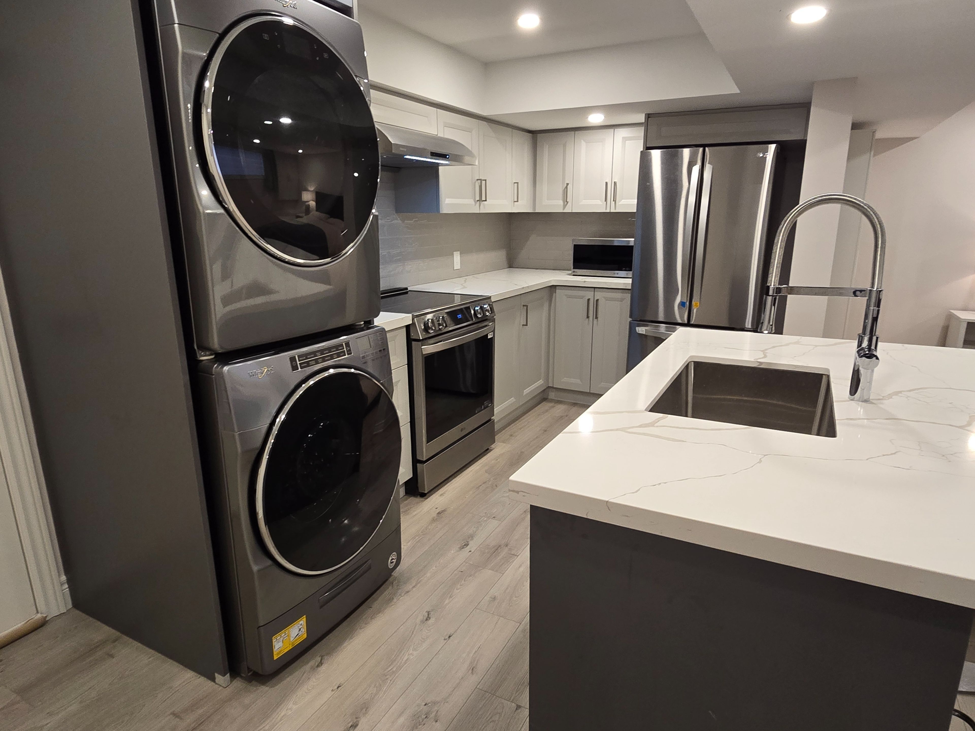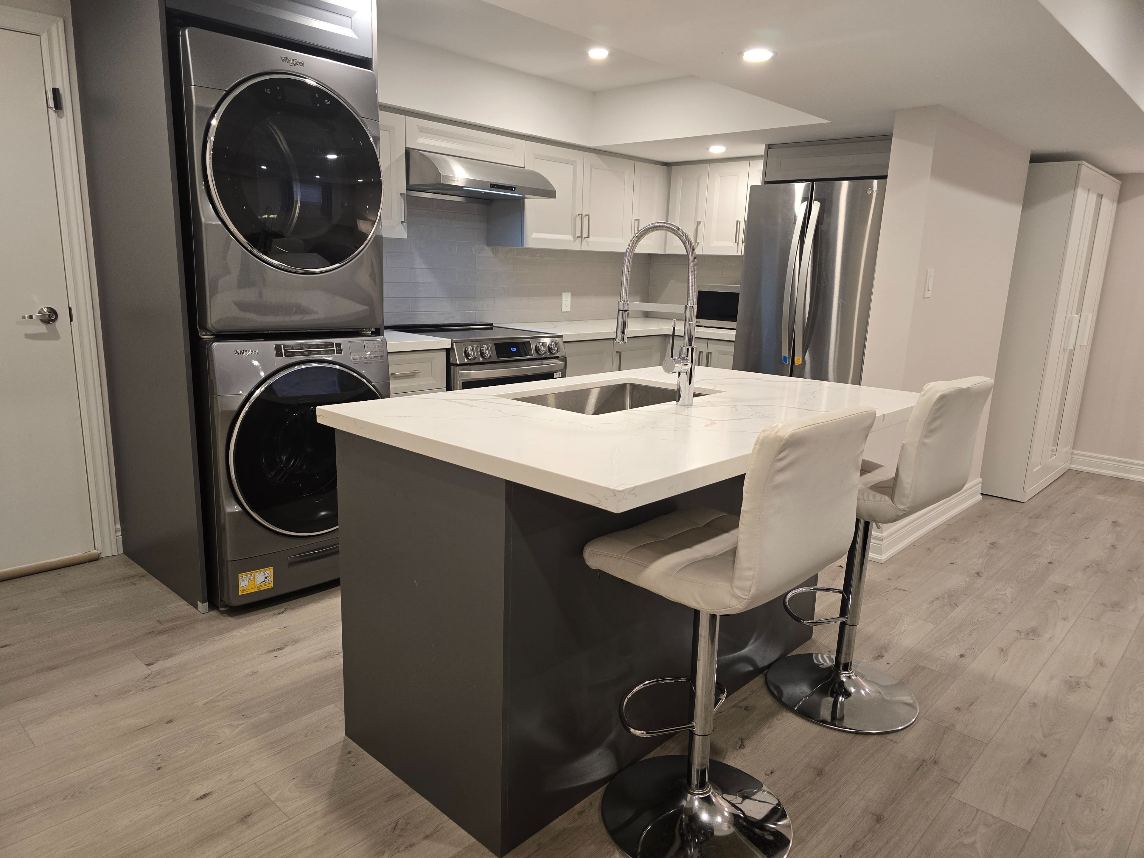 This beautifully furnished, brand-new one-bedroom apartment designed for modern living is ready for move-in. The separate entrance and ensuite laundry provide full privacy. Featuring an open concept layout, the apartment offers a bright and airy living space with high-quality finishes throughout. The sleek kitchen is fitted with contemporary cabinetry and brand new appliances. Perfect for professionals, this apartment offers comfort, convenience, and the feeling of a fresh start in a brand new home. One driveway parking is included.