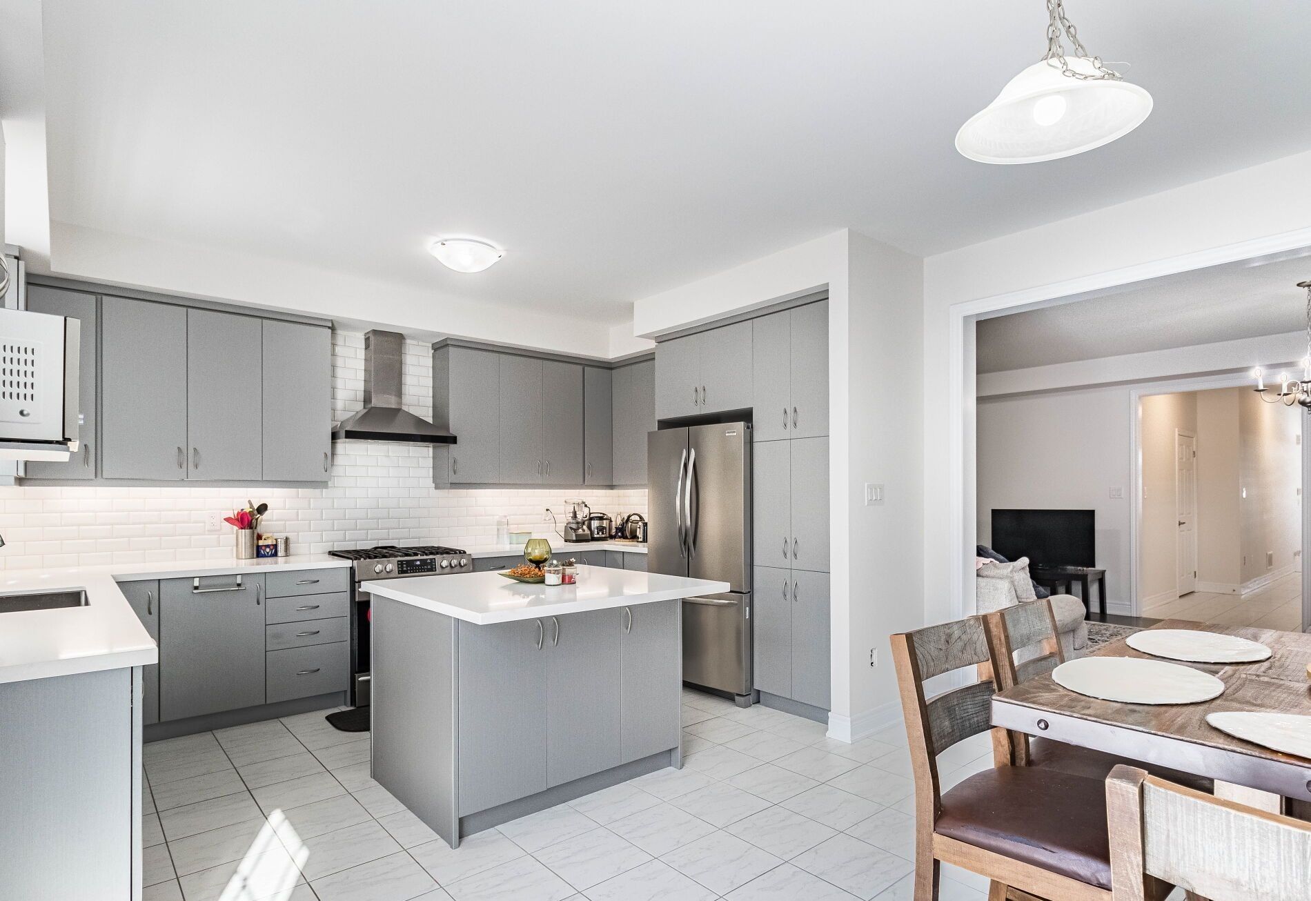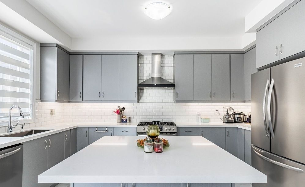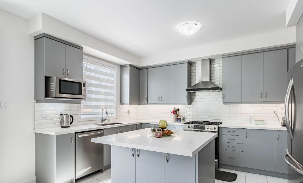 • Modern kitchen featuring quartz countertops and stylish backsplash.