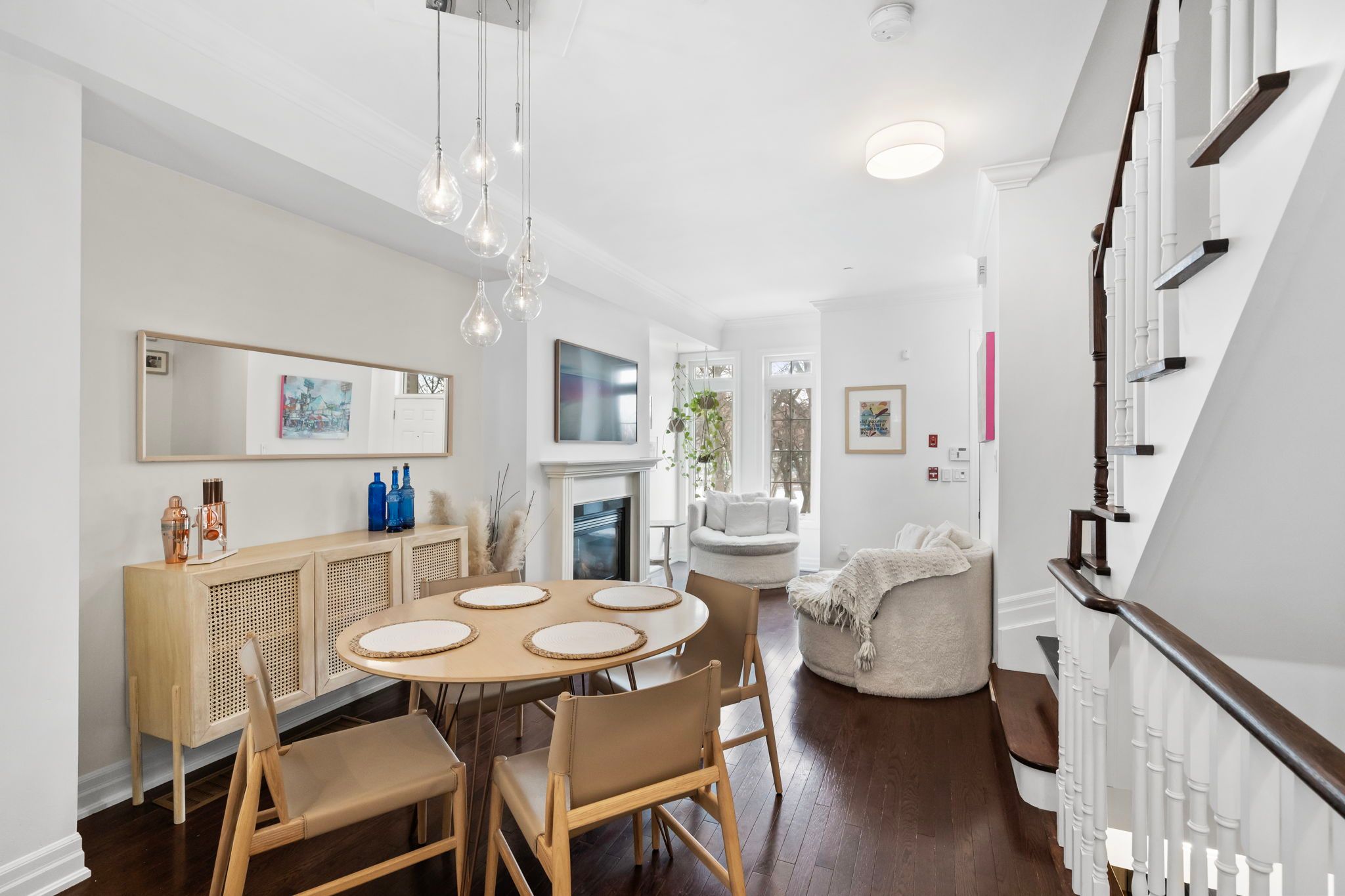 Welcome to 17 peelar mews. A fully refreshed freehold executive townhome in the heart of mimico village with no maintenance fees. This home is light-filled from top to bottom. Clean lines. Fresh finishes. Move-in ready. The main level offers an open concept layout designed for both everyday living and entertaining. The living room is anchored by a gas fireplace and flows seamlessly into a bright, updated kitchen featuring quartz counters, upgraded appliances and a walkout to your private terrace with pergola. A true extension of your living space in the warmer months. Upstairs, the primary suite feels like a retreat with its own juliette balcony and a beautifully appointed five-piece ensuite. Spacious, airy and thoughtfully updated. The finished lower level adds versatility with a comfortable family room, two-piece bath and direct access to the garage. Ideal for a media space, home office or guest area. The location is where this home truly shines. Steps to the mimico go station. Union station in approximately 15 minutes. Transit at your doorstep, including ttc access. Walk to the lake, waterfront trail, parks and green space. Around the corner from san remo bakery and local favourites. Close to top-rated schools and community amenities. Quick access to the gardiner, 427, and both pearson and billy bishop airports, mimico offers a rare balance. Quiet residential streets with true walkability. Lakefront lifestyle with downtown convenience. Freehold. Renovated. Bright. Connected.