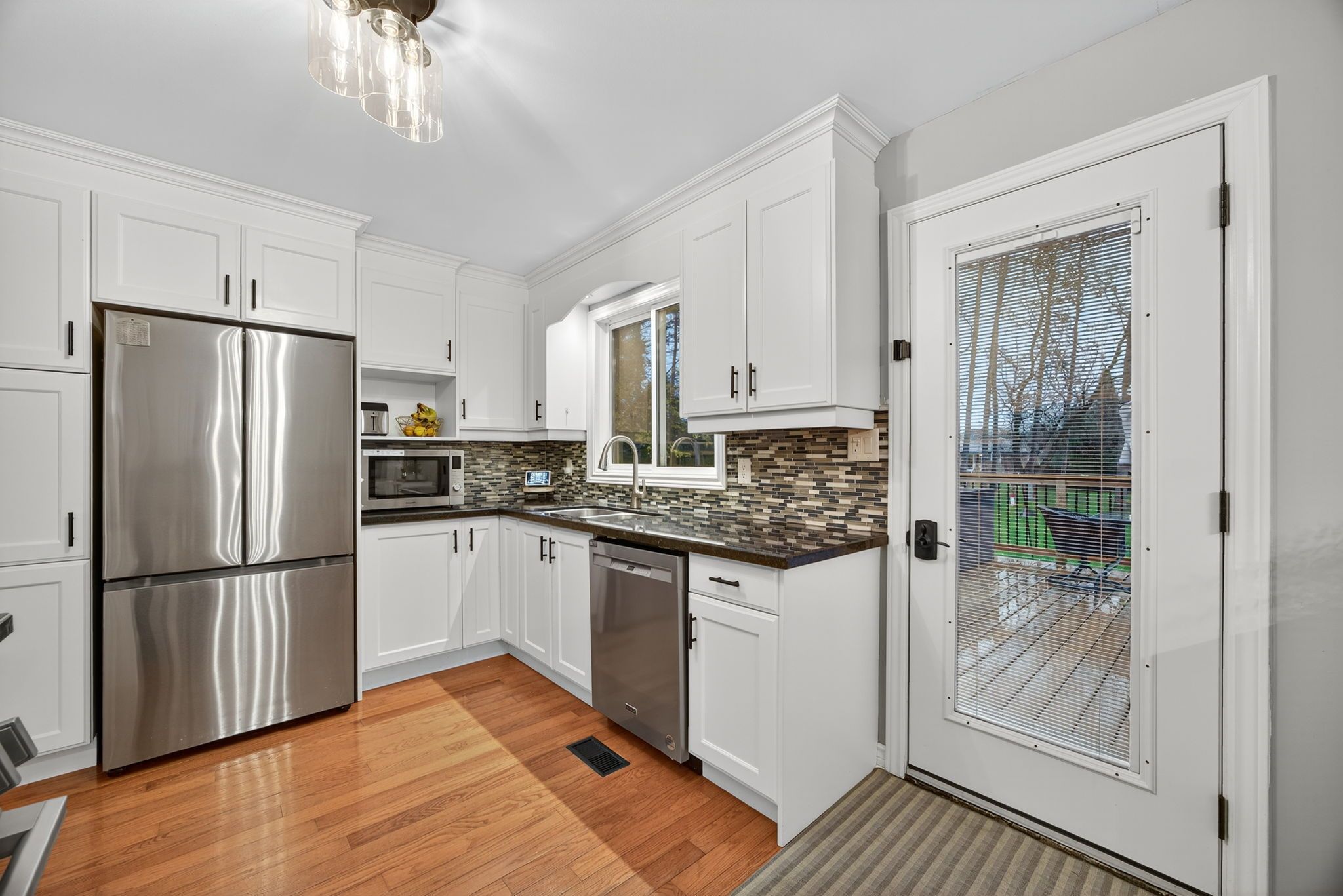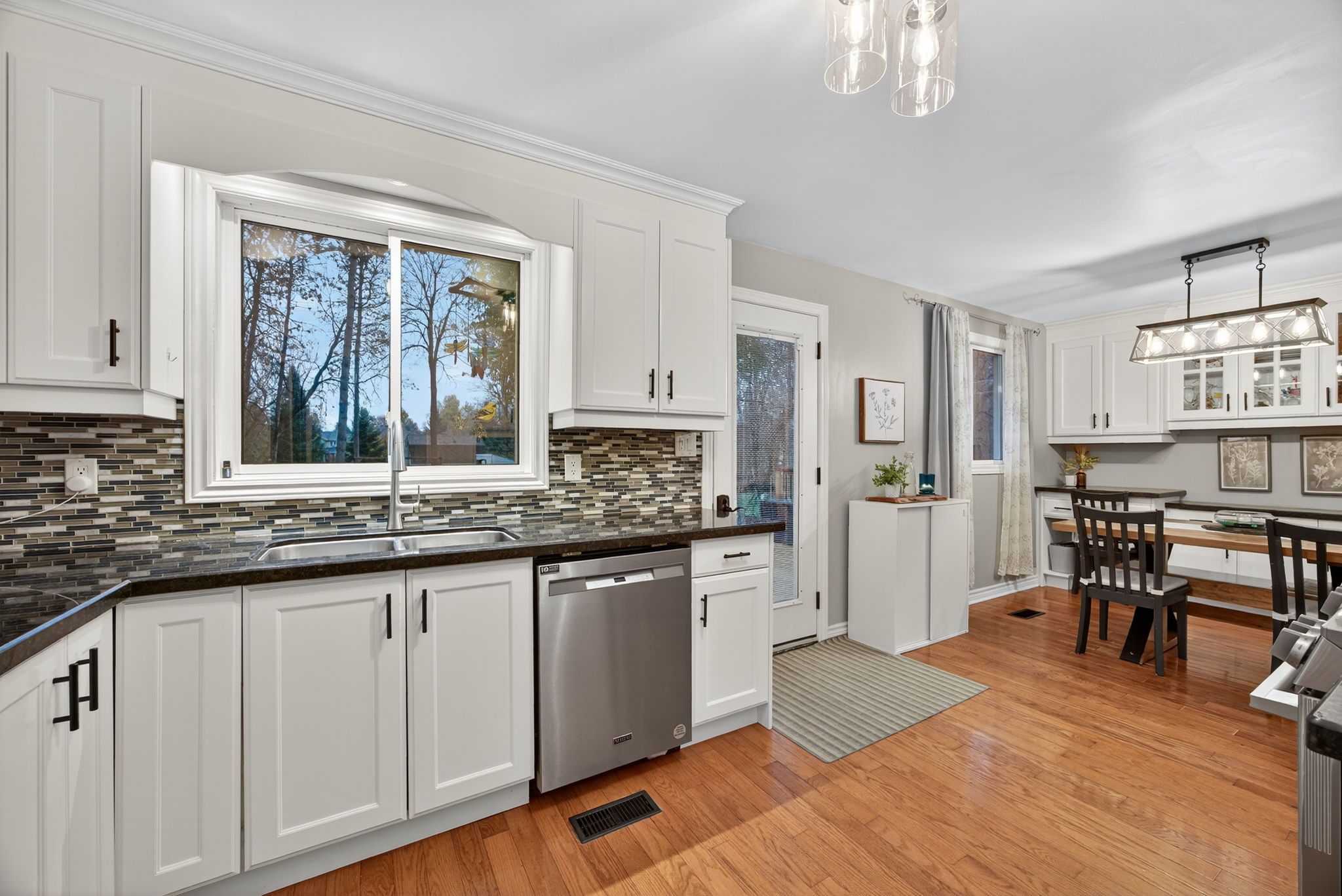 Your search is finally over! This spectacular 3+2 bedroom, 2 bath raised bungalow truly has everything a family could wish for, offering the perfect blend of comfort, function, and outdoor living. The main floor features a gorgeously updated kitchen, a generously sized living room with a cozy gas fireplace, three spacious bedrooms with excellent closet space, and beautiful hardwood floors throughout. The finished lower level offers even more room to grow, work, or relax, with two additional bedrooms, an updated 3-piece bath, a warm and comfortable family room, and a versatile flex space currently being used as a home gym - complete with walk-up access to the double car garage for everyday convenience. But the real showstopper is outside. Step into your private backyard oasis - fully fenced and surrounded by mature trees for privacy, offering multiple outdoor zones to relax, entertain, and enjoy. Featuring a spacious deck and patio, three storage sheds (including a 12' x 16' storage shed/workshop), fire pit, raised planter boxes, and your own peaceful zen-inspired garden - this is outdoor living at its finest. Who needs a cottage? A truly one-of-a-kind property with space to grow, play, and unwind. Don't miss the chance to call this exceptional home your own.