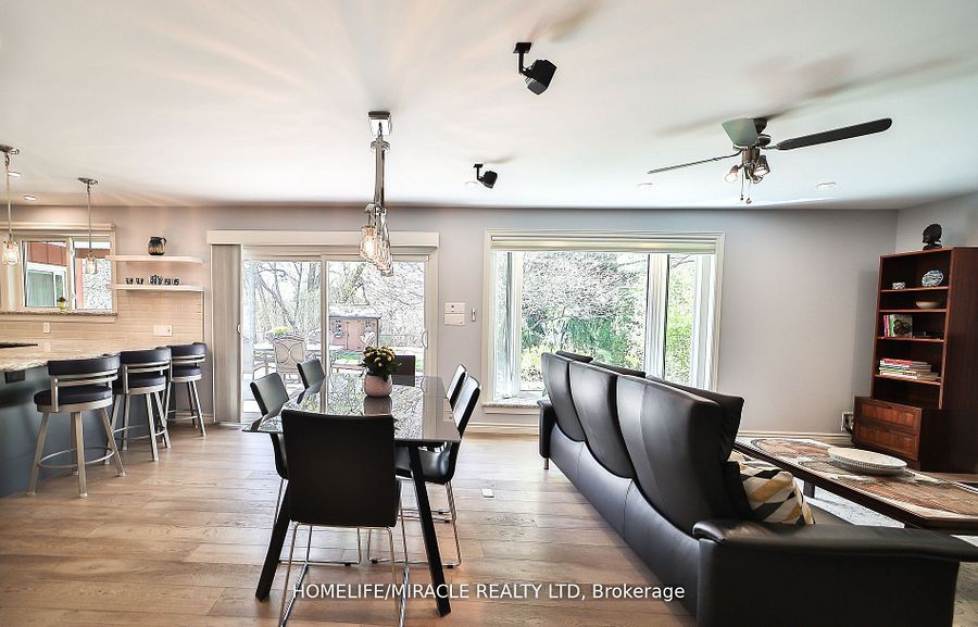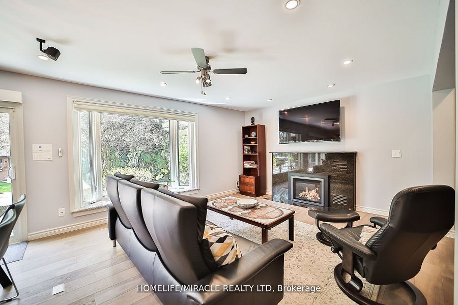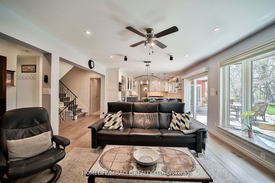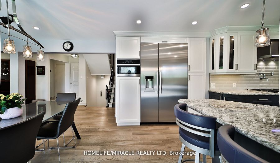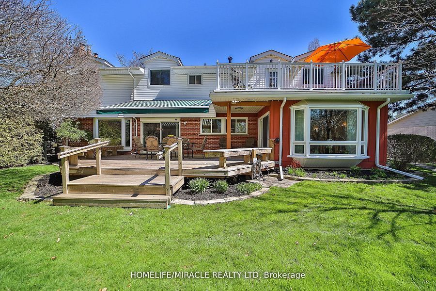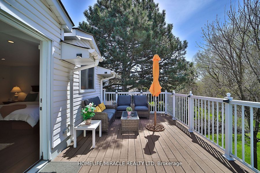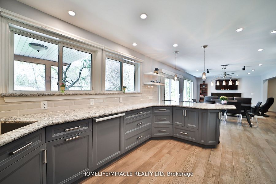 Wow! One of a kind fully renovated home featuring 7 spacious bedrooms all on the second floor & 4. 5 baths throughout. Boasting approximately 5,558 sqft of total living space, situated on a massive 84. 73 x 173. 55 lot backing onto protected green space offering spectacular views of nature along with exclusive access to trails from your very own backyard. This home has it all! Oversized bay windows fill the home with natural sun light & warmth. The new custom kitchen featuring cambria quartz, shaker style cabinetry with under mount led lighting accented by beautiful back splash & adorned by s/s miele appliance & a pot fill is a chiefs delight. Tons of recent modern contemporary updates throughout, including new large plank hardwood flooring to led smart home lighting that can be controlled from your phone, usb outlets throughout & pot lights with independent dimmer switches. The oversized deck with dual access points from either the kitchen or dinning room is an entertainers dream, featuring a sitting area with built in lighting & overhead powered awning, it'll never rain on your party again. Dual stair cases take you up to a primary bedroom boasting a resort like en-suite with heated floors, overhead rain shower & skylight over the beautiful soaker tub. Step out to the spacious private terrace overlooking the massive backyard with unobstructed views of nature, great for bird watching, or relaxing in the evening with your favourite book. The 6 additional rooms offer tremendous flexibility for growing families, to hosting your favourite guests. Den on main floor can be used as 8th bedroom. This unique home shows pride of ownership & character throughout. Double car garage & a stately circular driveway with no sidewalk to obstruct provides a true front courtyard experience. Dare to compare, there is no other home in brampton that offers this level of sophistication, lot size, space, & exclusivity. This home offers tremendous value for growing families, to savvy buyers.