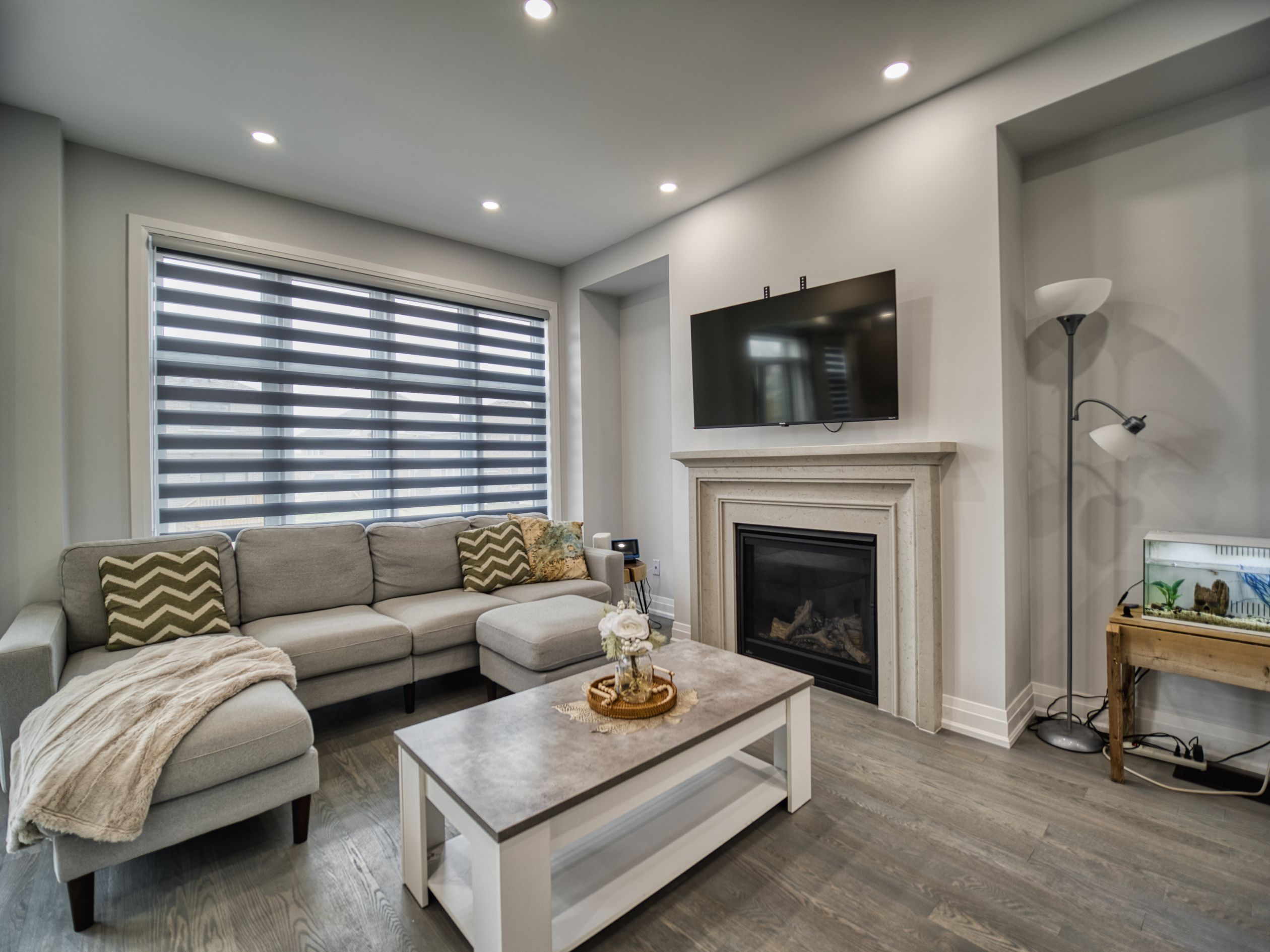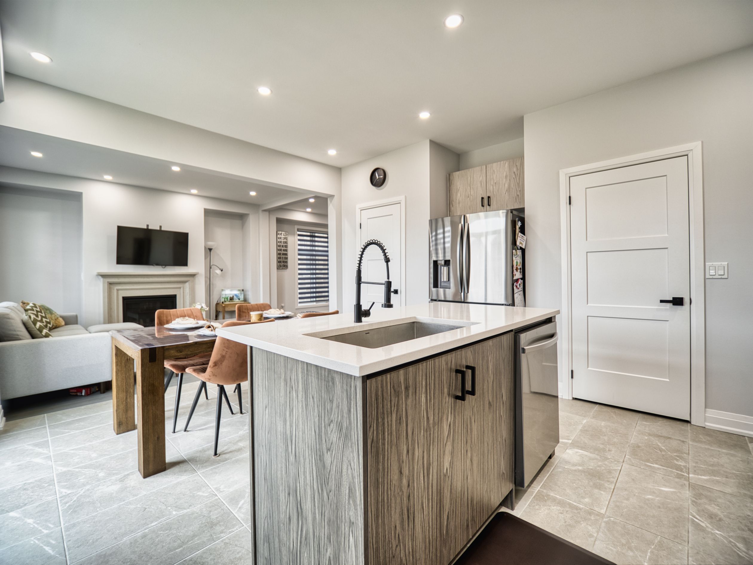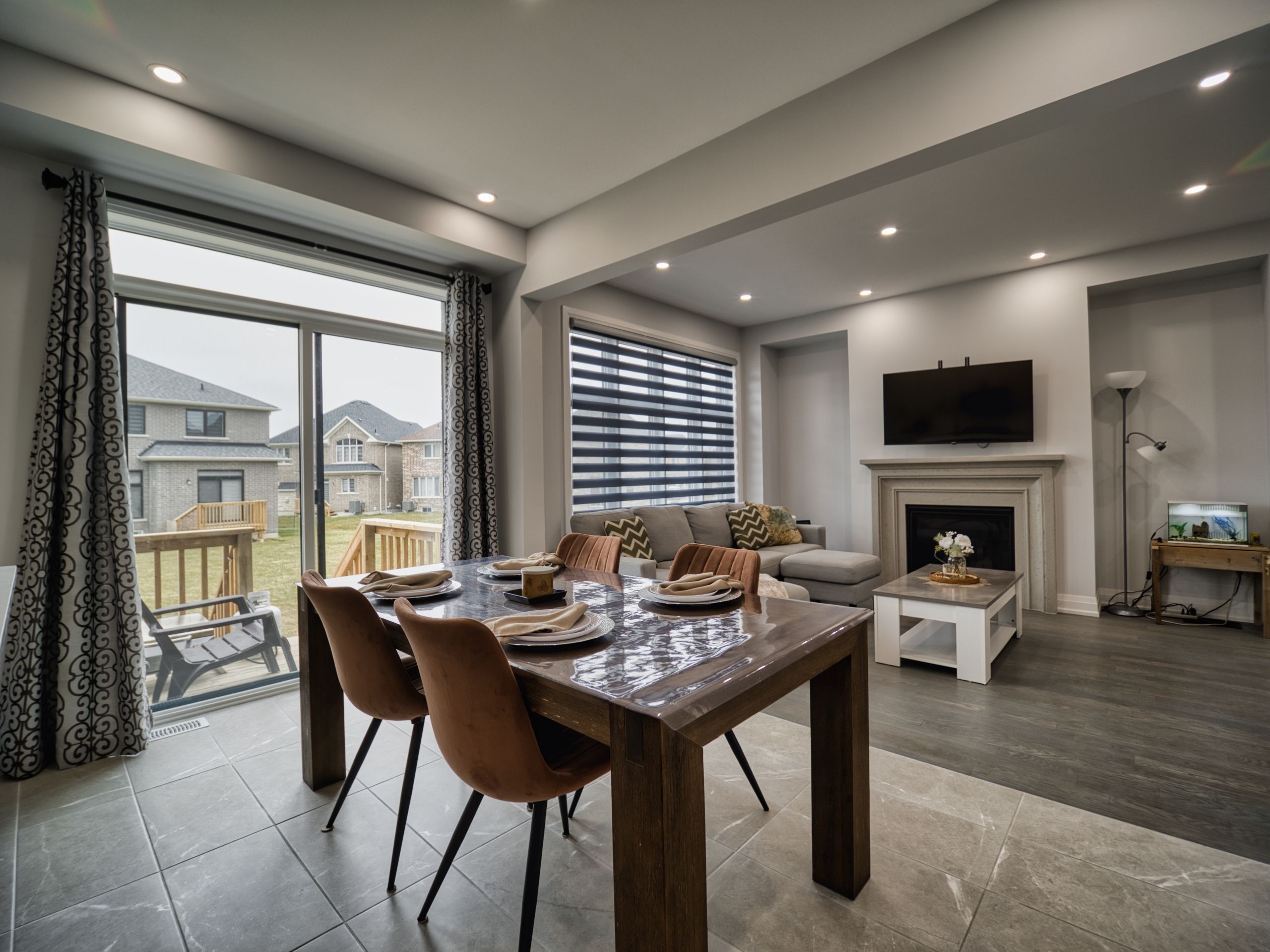 • Open living area with gas fireplace and backyard access for relaxation.