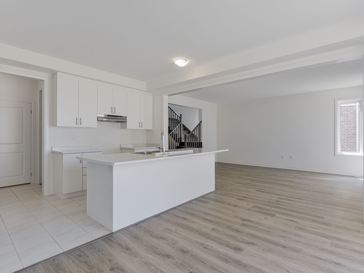 • Bright eat-in kitchen with contemporary cabinetry connects to the open living area.