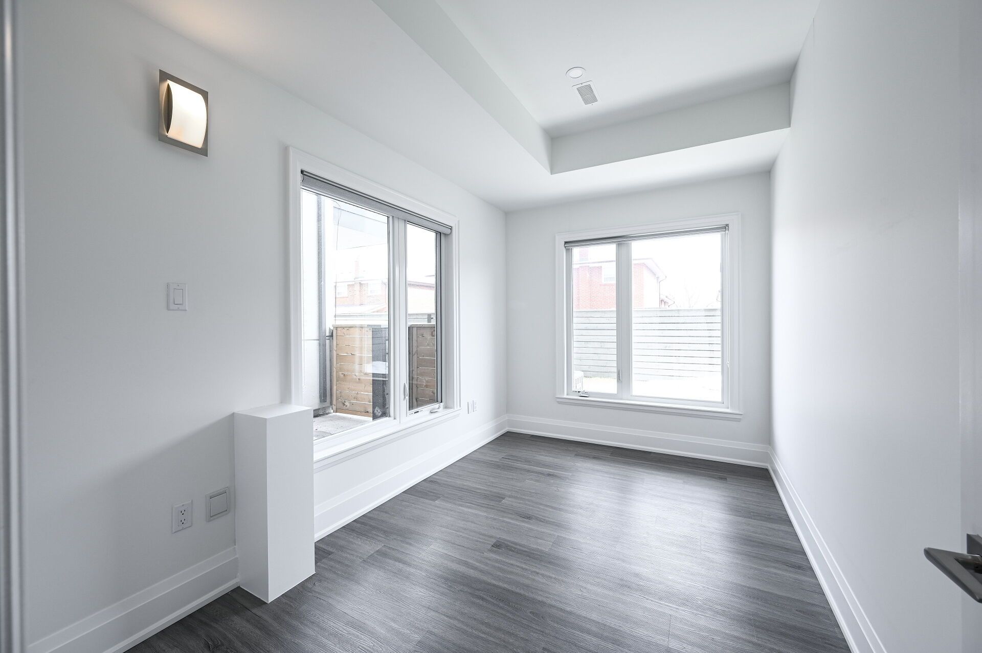 17 st. Gaspar court is a modern, newly built semi-detached home offering stylish finishes, functional layout, and excellent proximity to transit and amenities. It is well-suited for small families, professionals, or students looking for a clean, contemporary space in awell-connected north york neighbourhood. Featuring a modern main-floor unit with high ceilings, open-concept living, stainless-steel appliances, pot lights, ensuite laundry, and a walk-out basement with a separate entrance. The backsplash matches the quartz counters and island which is ideal for entertaining with an oversized deluxe sink. Kitchen has a convenient walkout to the deck and main level has expansive windows throughout. The second level epitomizes comfort and pure tranquility with its 9-foot ceilings and thoughtfully designed layout. Principle suite offers a custom built armoire with a luxury