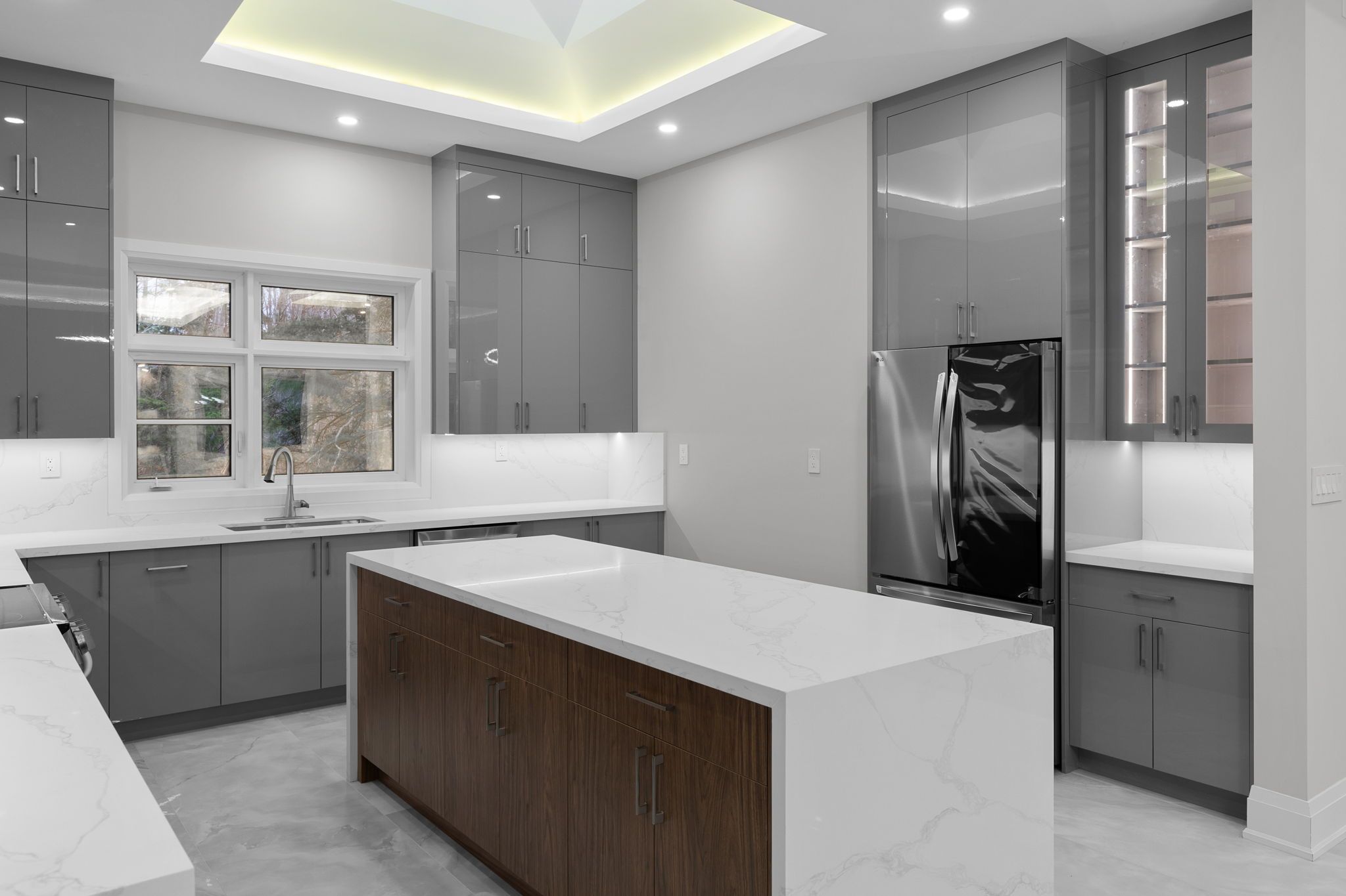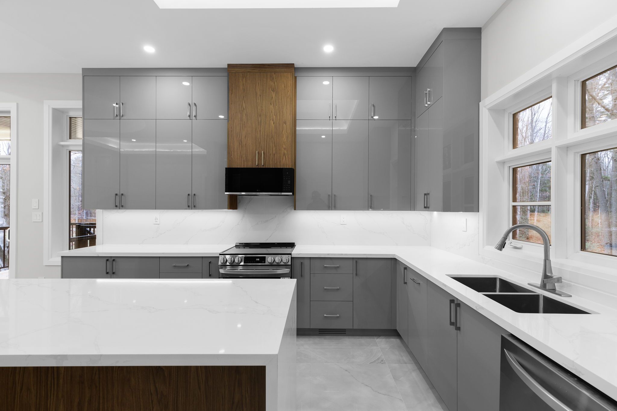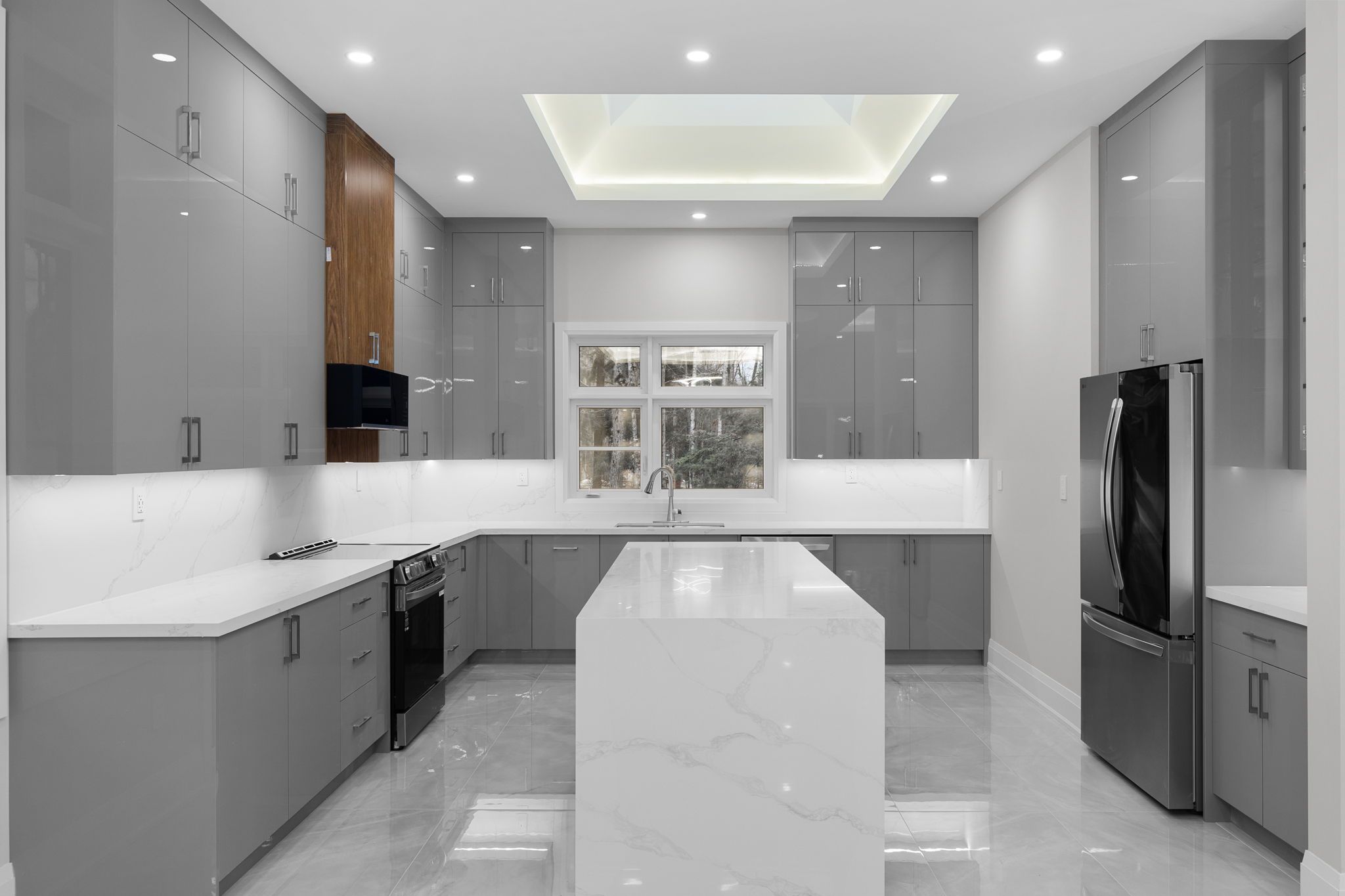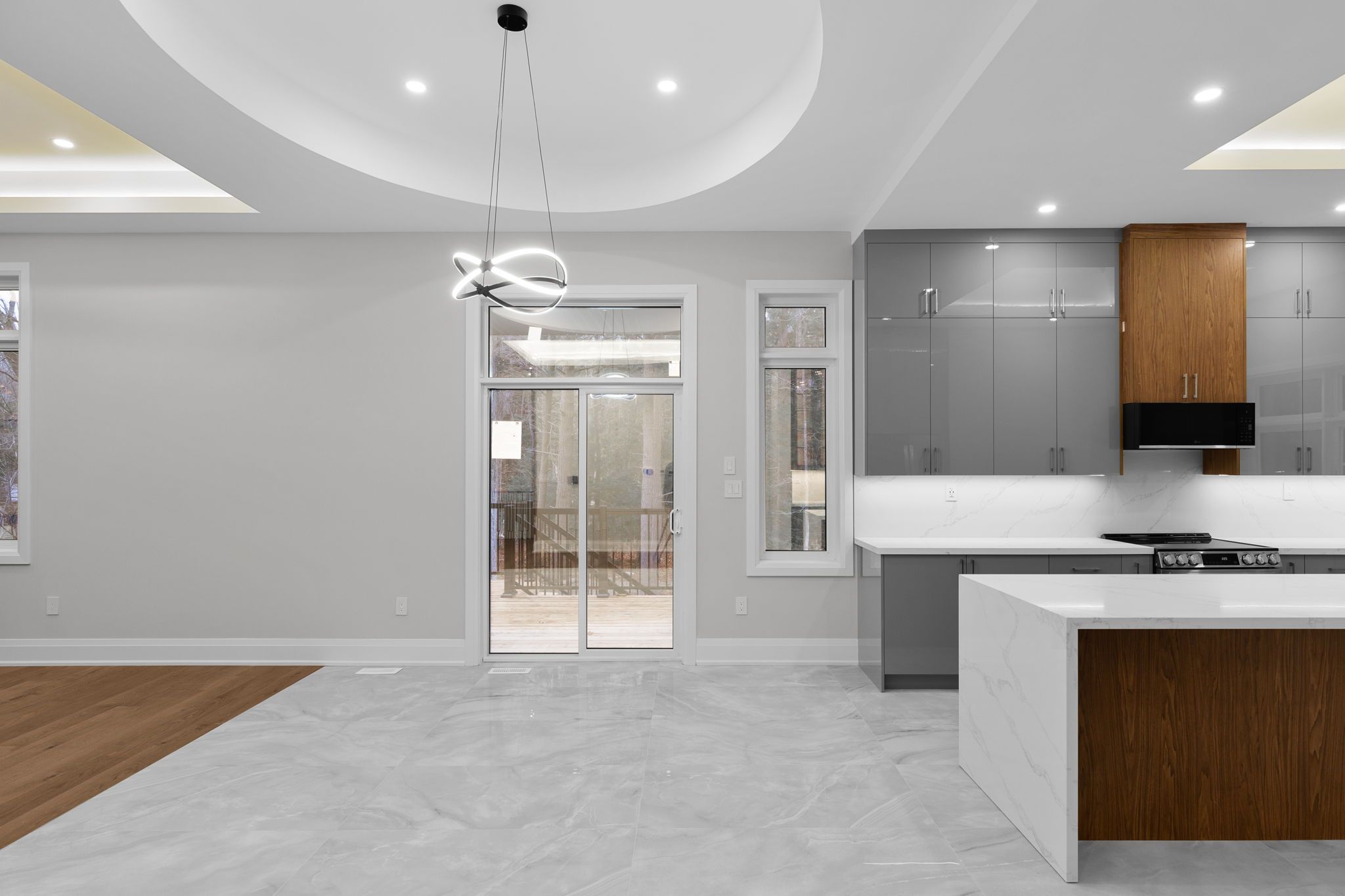 • Open-concept kitchen features a large island and premium appliances.