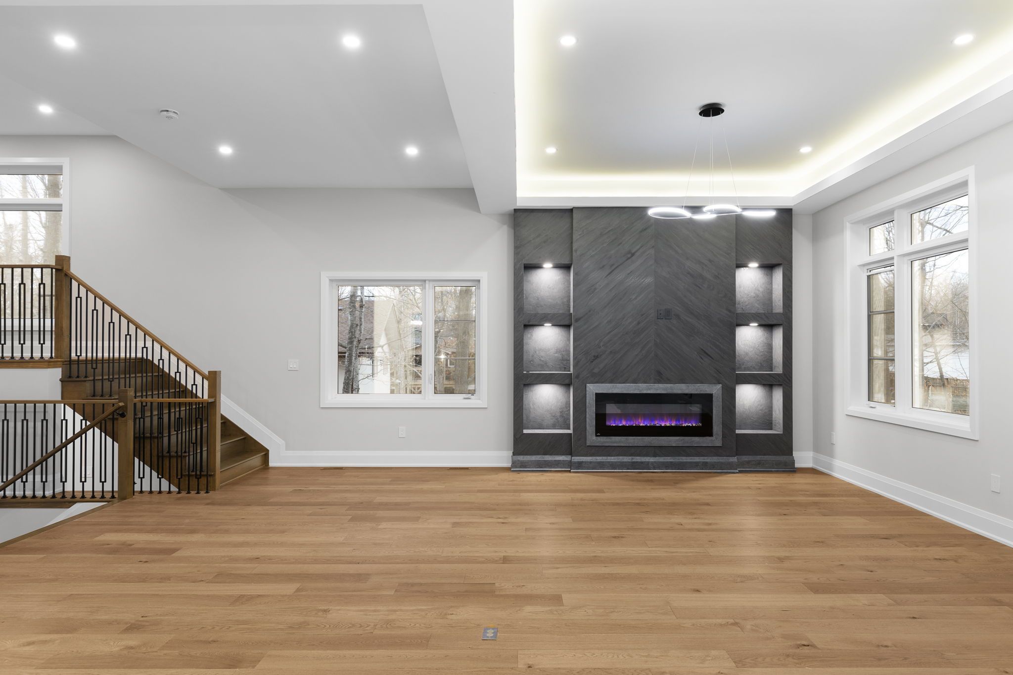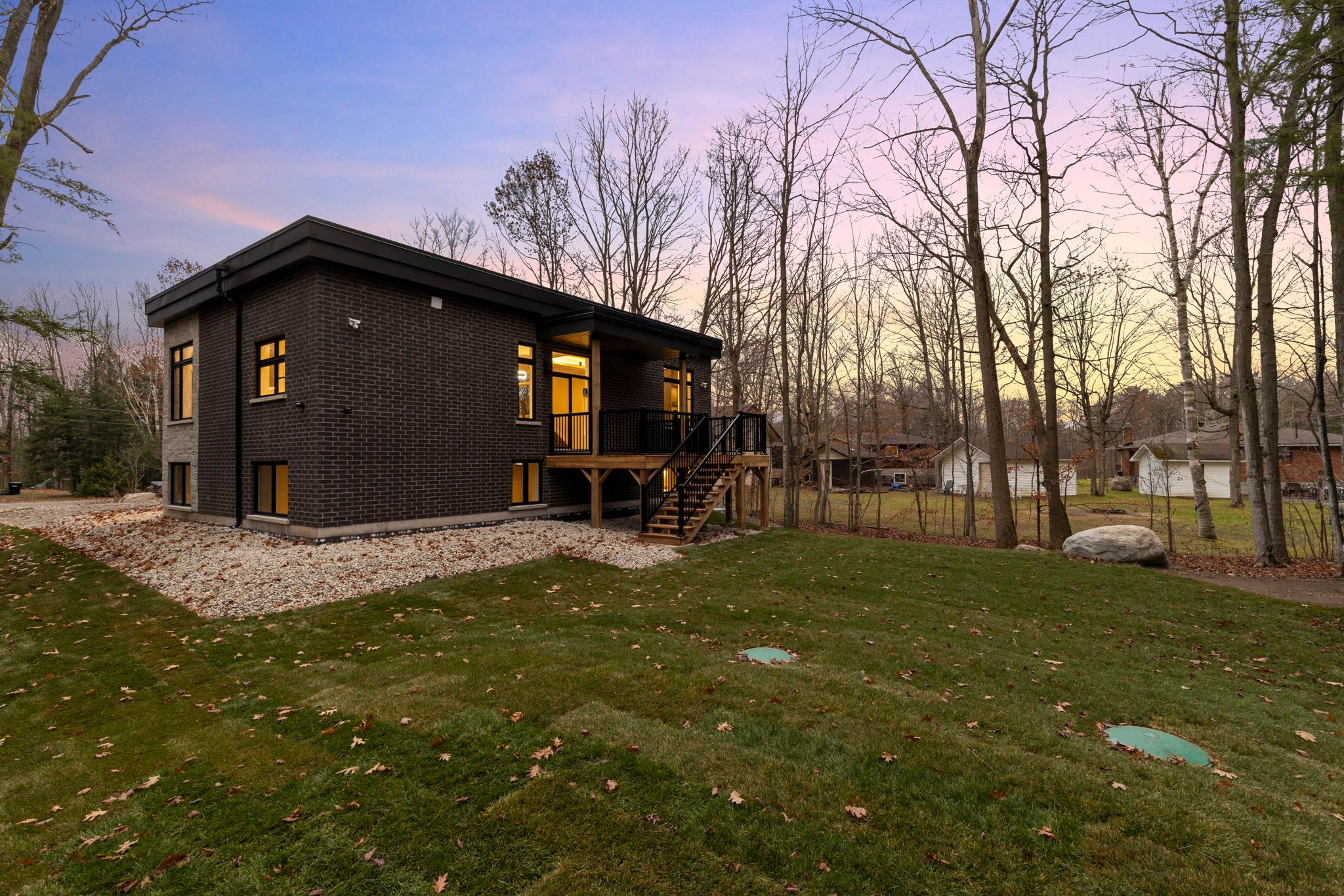 Modern custom-built home (2025) featuring over 3,500 sq. Ft. Of total luxury living space, this home includes 5 spacious bedrooms, 3 full bathrooms, hardwood & porcelain flooring throughout the home & a bright full-height finished basement. Enjoy exceptional comfort with a private main bedroom suite, multiple fireplaces, & skylights that fill the home with natural light & tranquility, all complemented by mature trees providing natural privacy. The open-concept kitchen is built for entertaining, showcasing a large island, quartz countertops, & premium appliances. A triple-car garage with inside entry connects directly to the main-floor foyer for everyday convenience. The main floor boasts 11ft high ceilings with the second floor & basement boasting 9ft ceilings. The beautifully landscaped yard offers a long driveway, a walk-out deck & a private wooded backdrop; perfect for bonfires or relaxing on the covered deck. The home is equipped with a smart thermostat, central vac, a surveillance system plus a roof ice/snow dethawing system. Just a short walk to the crystal-clear shores of georgian bay, offering an ideal blend of peaceful, nature-filled living with everyday conveniences close by. If you're looking for a lifestyle that blends nature, comfort, & modern convenience, this property is for you!
