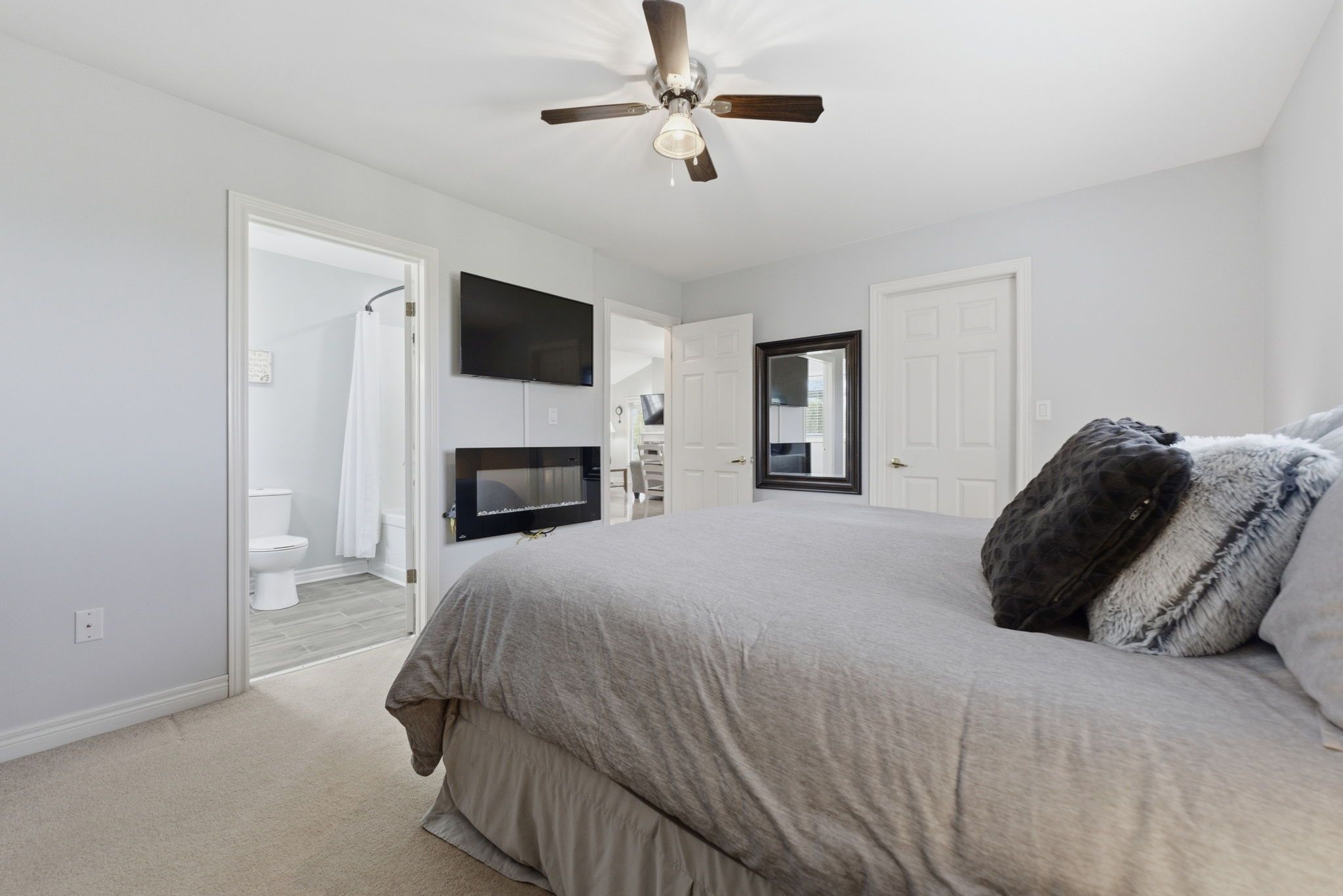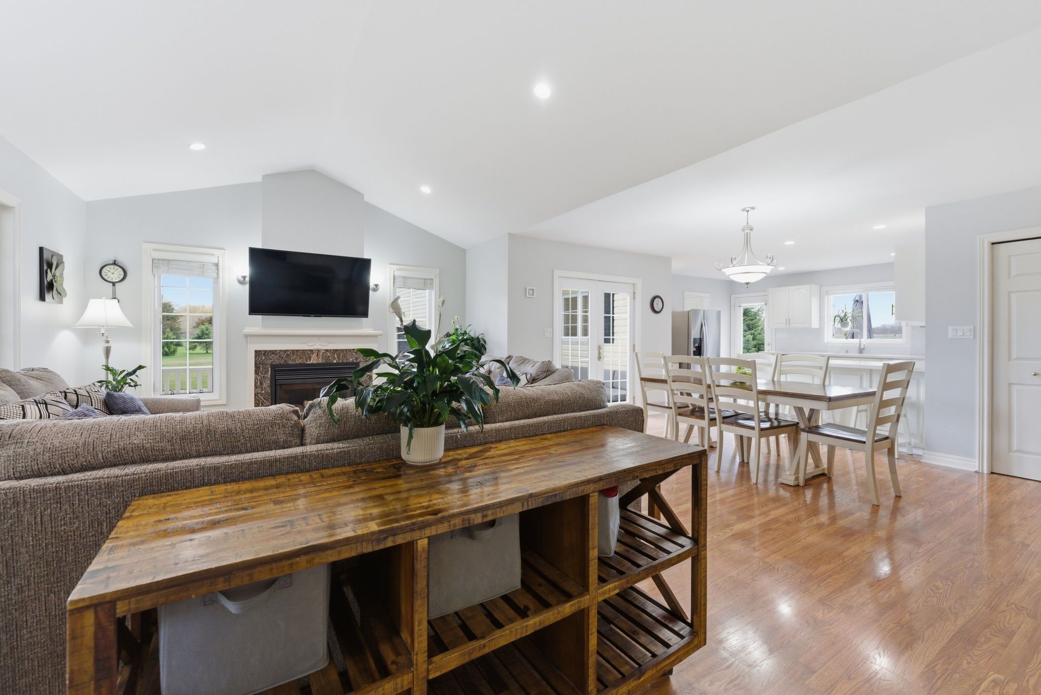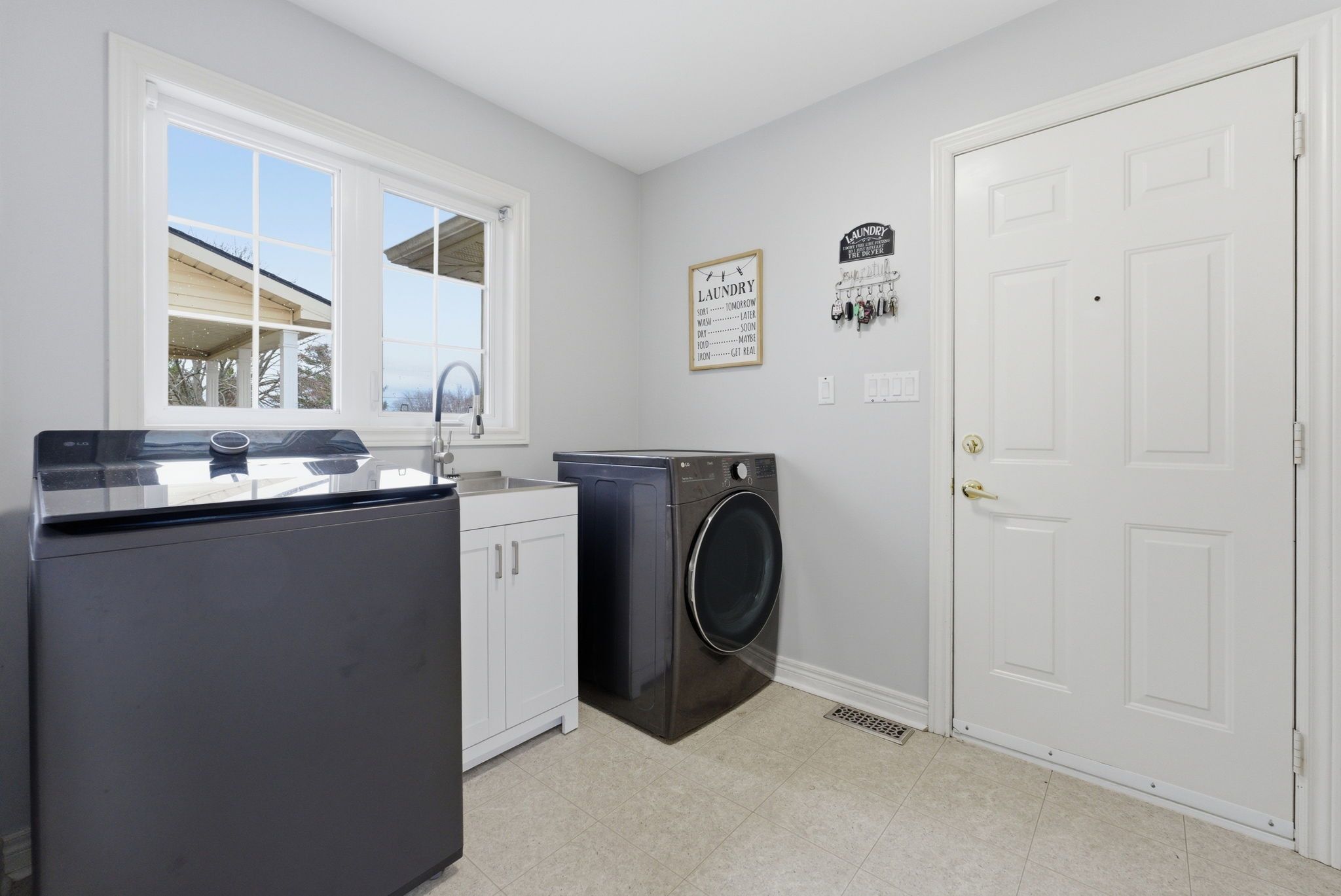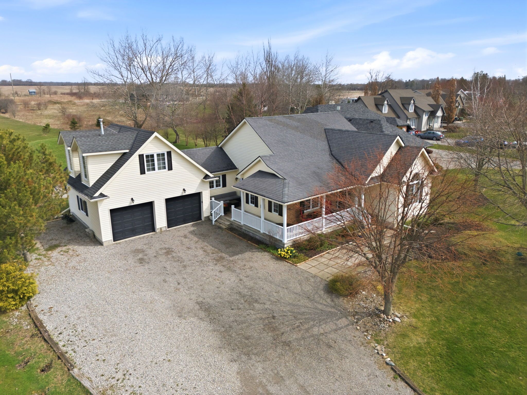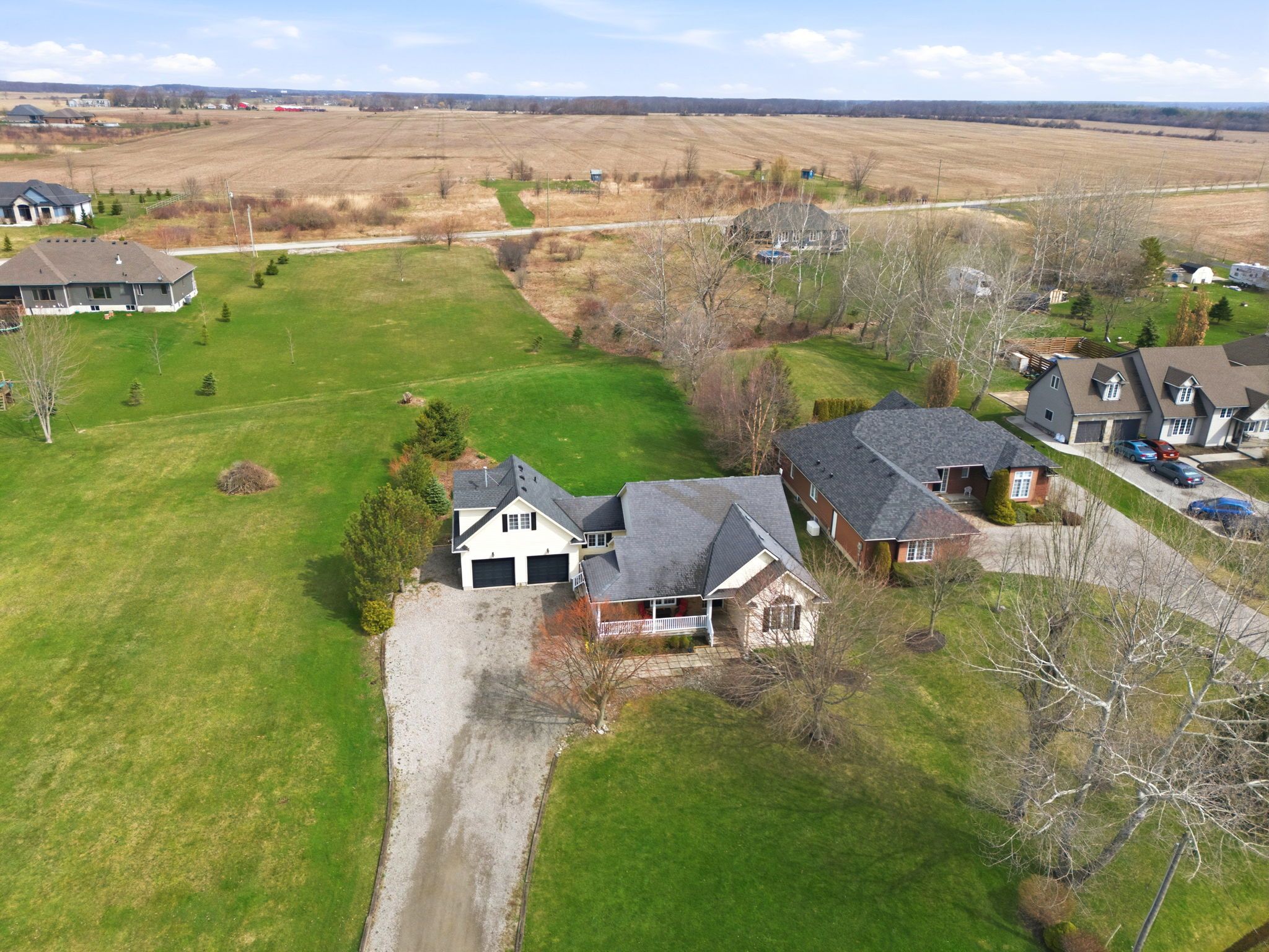 Custom bungalow in dunnville set on a beautifully landscaped 100' x 282' lot, offering true country living just steps from lake erie. Enjoy the peace and privacy of rural surroundings with the convenience of nearby shoreline access, parks, and small-town amenities. This well-built home features 1825 sq ft plus a fully finished basement, 3+2 bedrooms and 3. 5 bathrooms. The bright open-concept main floor includes a white kitchen with quartz countertops, backsplash, and generous workspace, flowing into a cathedral-ceiling living room with patio doors to both front and rear decks. Main floor laundry adds everyday convenience. The fully finished basement offers a spacious rec room, family room, additional bedroom and full bath. Above the oversized double garage is a separate loft/in-law suite with its own entrance, 3pc bath, and fireplace-ideal for guests or multigenerational living. Additional features include 3 gas fireplaces, generac system, water filtration, abundant storage, and ample parking. New composite decking (2025) bathroom renovations (2024) central air (2025) uv water filter (2022) a rare blend of country tranquility and lake erie lifestyle-perfect for those seeking space, privacy, and a relaxed rural setting close to the water.