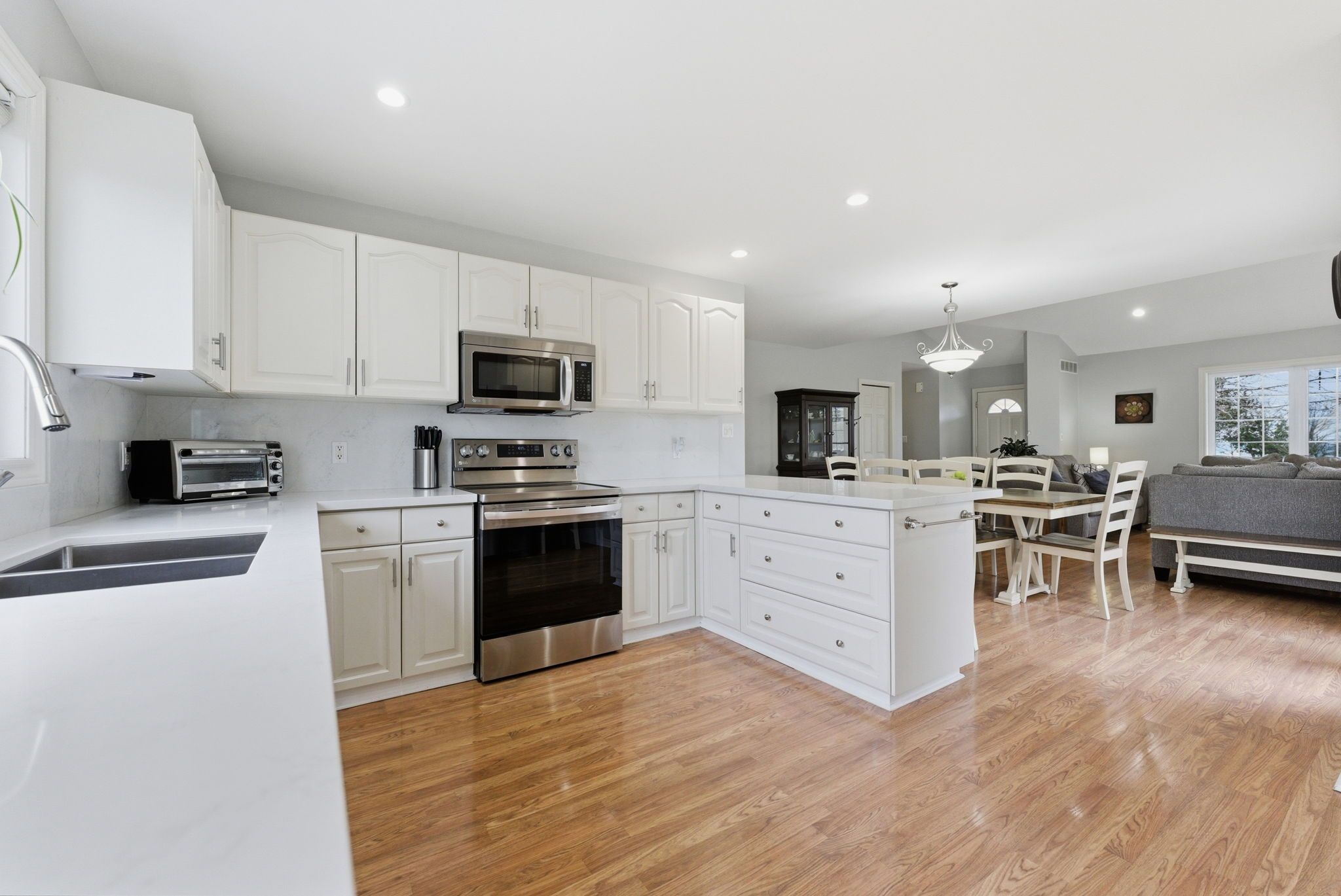 • Open-concept main floor with bright kitchen and cathedral-ceiling living room.