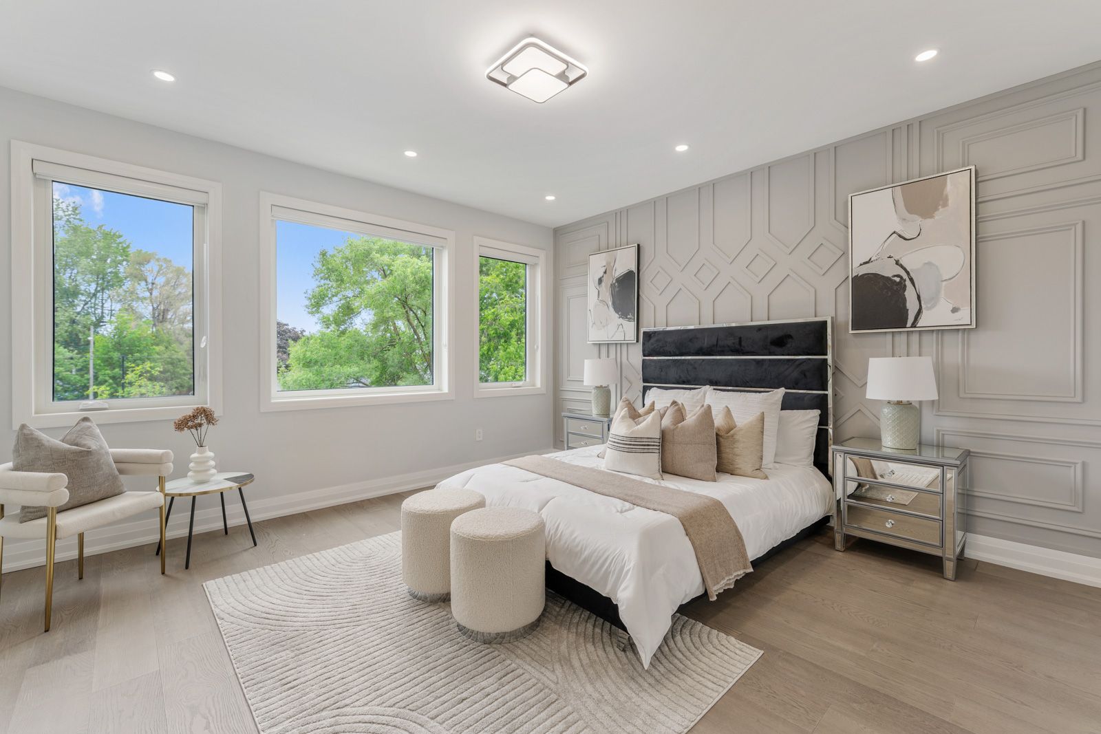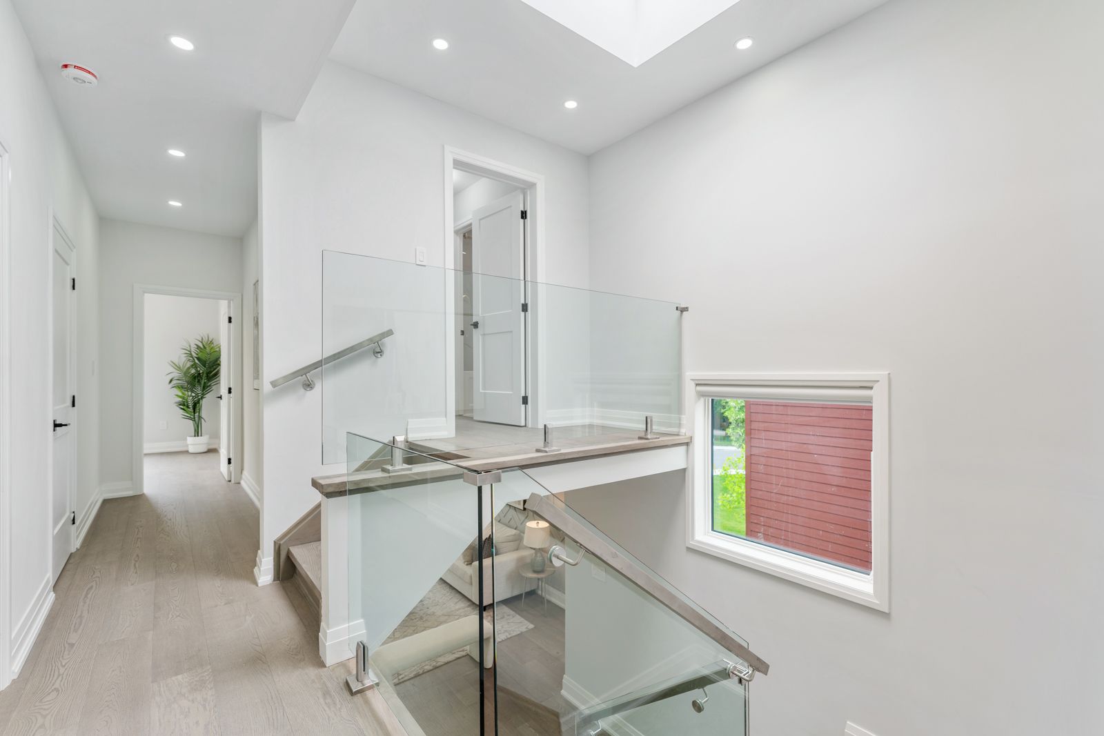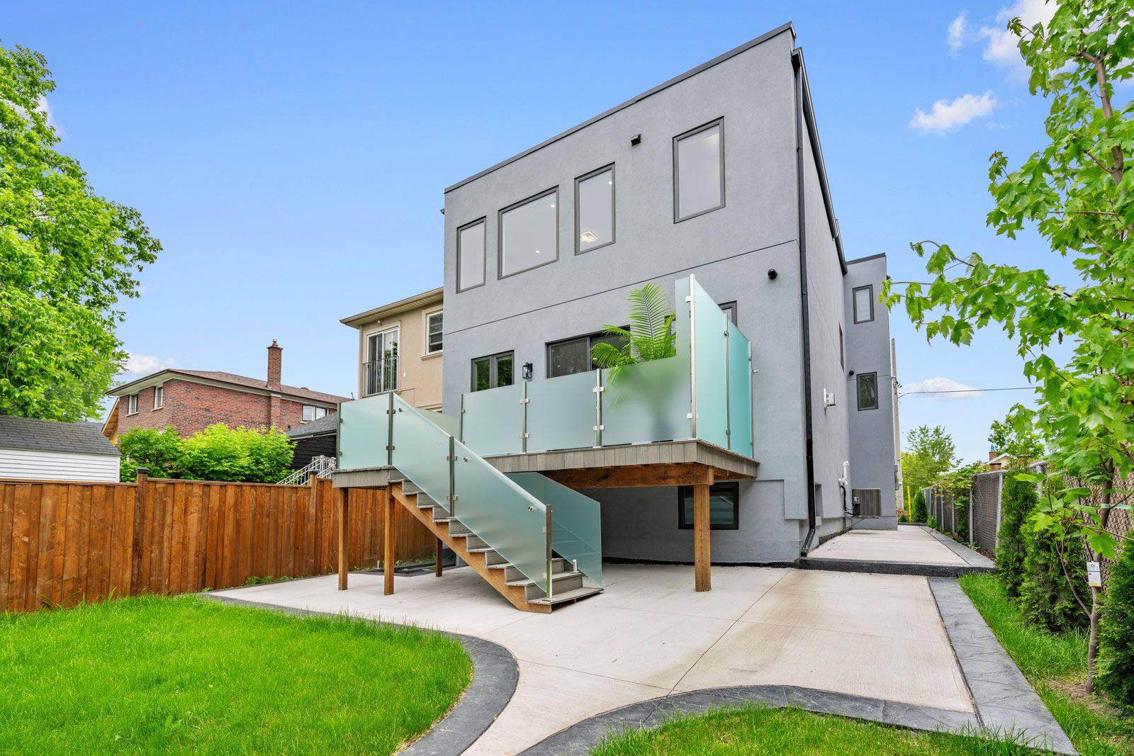 Majestic 4+1 bedroom, 5 bathroom detached home situated on a premium 112. 5 ft deep lot! This stunning property offers 2,481 sq ft above grade + 900 sq ft of finished basement space. Impressive curb appeal with stone and acm panelling exterior, elegant interlocking and a large covered front porch. Open-concept main floor highlighted by gorgeous engineered hardwood flooring and custom wainscoting. Spacious dining room ideal for entertaining, with seamless flow into the family room featuring built-in cabinetry and a gas fireplace with a sleek feature wall. Chefs kitchen boasts a sleek two-tone design, quartz countertops, matching backsplash, custom pendant lighting, a waterfall center island, high-end built-in appliances, and a full separate pantry. The living room features a gorgeous detailed accent wall and massive windows. Luxurious primary retreat offers a spa-inspired 7-pc ensuite, custom walk-in closet with organizers, and a feature wall. A secondary bedroom includes its own private 4-pc ensuite and double closet. 3rd and 4th bedrooms share a 4pc bath and both include double closets! Convenient second-floor laundry room included. The fully finished basement features led pot lights, a stylish full kitchen with quartz counters, stainless steel appliances, a 4-pc bathroom with custom tiling, separate laundry, and direct walk-out access. Includes 1 spacious bedroomsperfect for an in-law suite or income potential and a massive rec room can be split to create a 2nd bedroom! Fully fenced backyard with a large sun deck and a large shed! Steps to the ttc and the grand stan wadlow park and taylor creek trails!