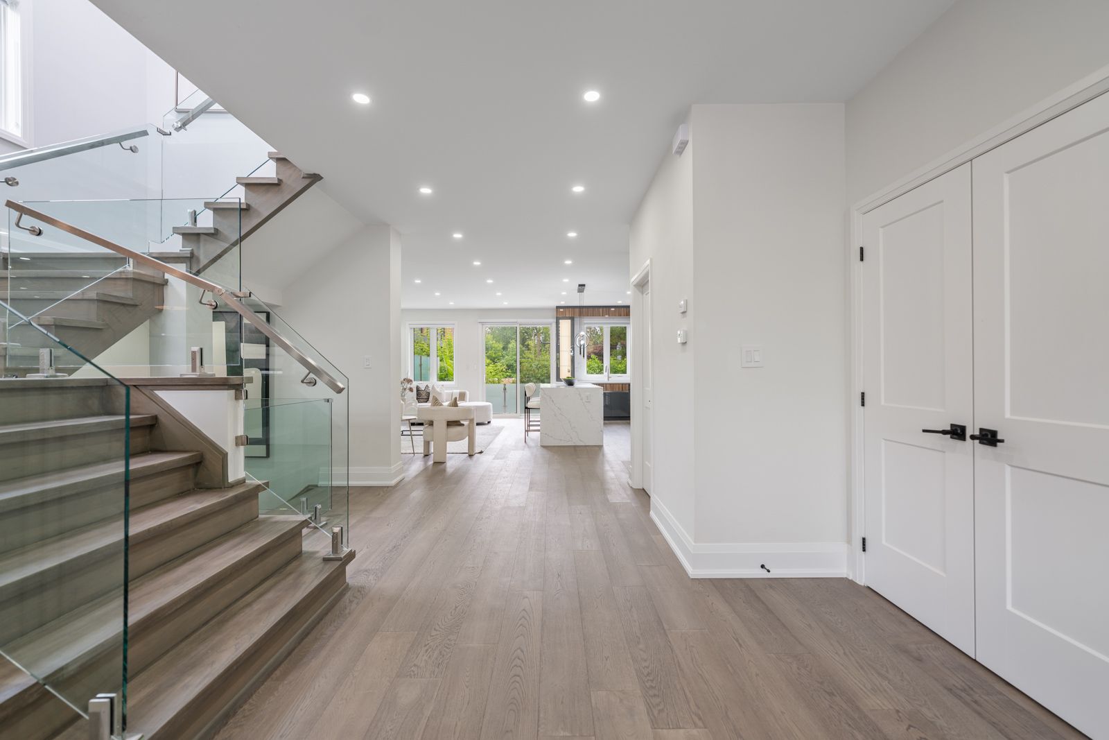 • Open-concept main floor with elegant hardwood flooring and custom features.