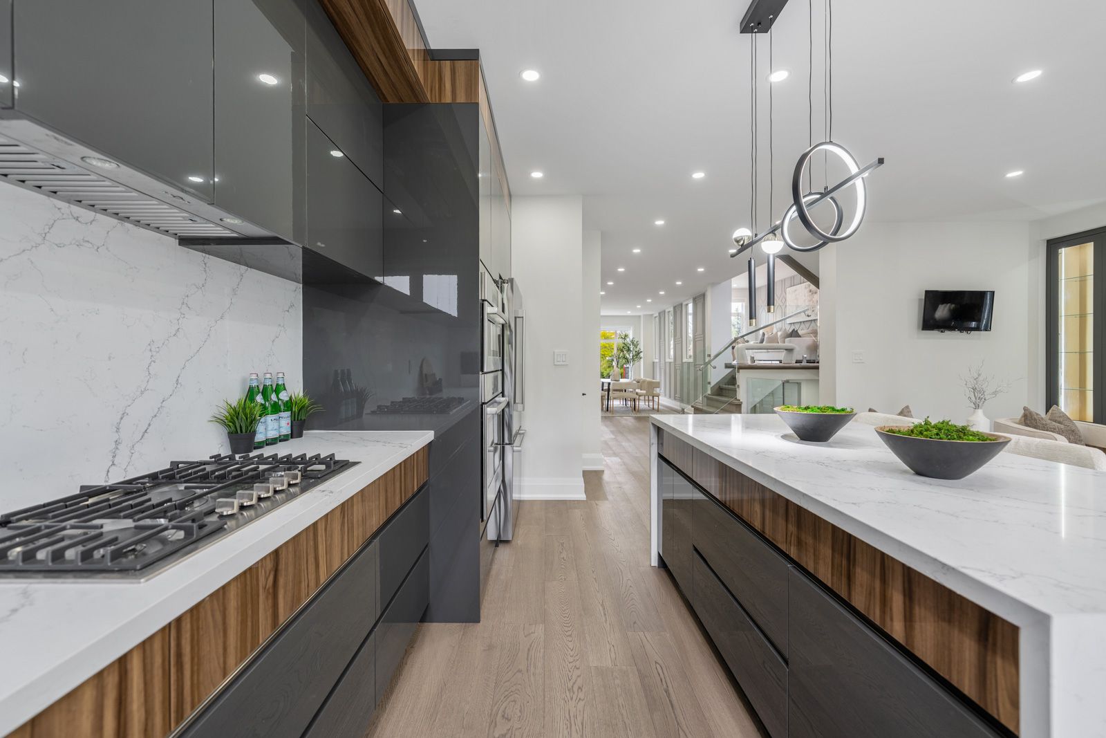 • Chef's kitchen equipped with high-end appliances and sleek quartz countertops.