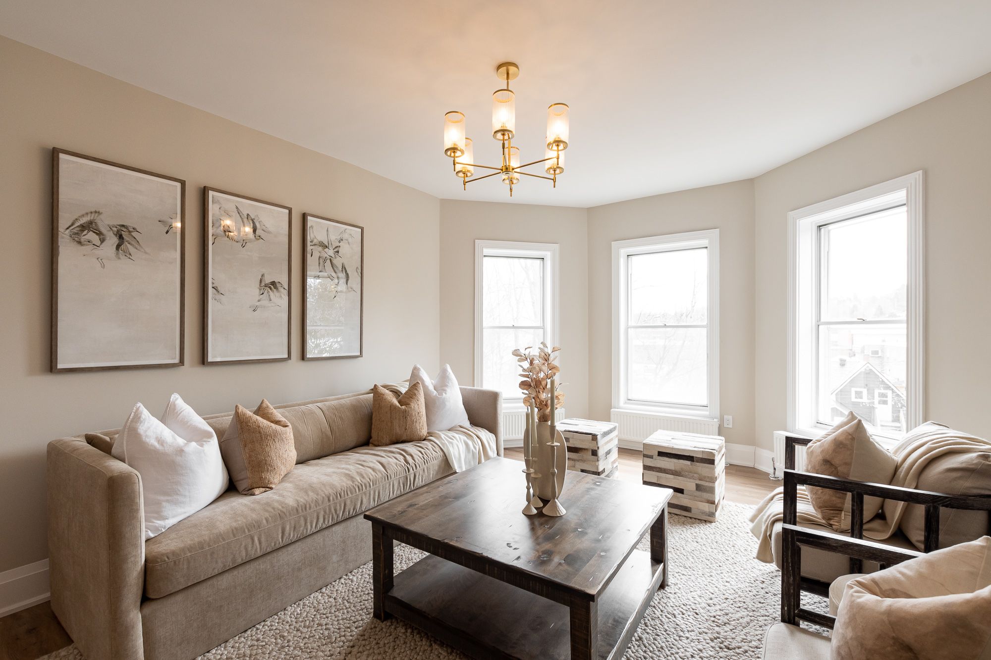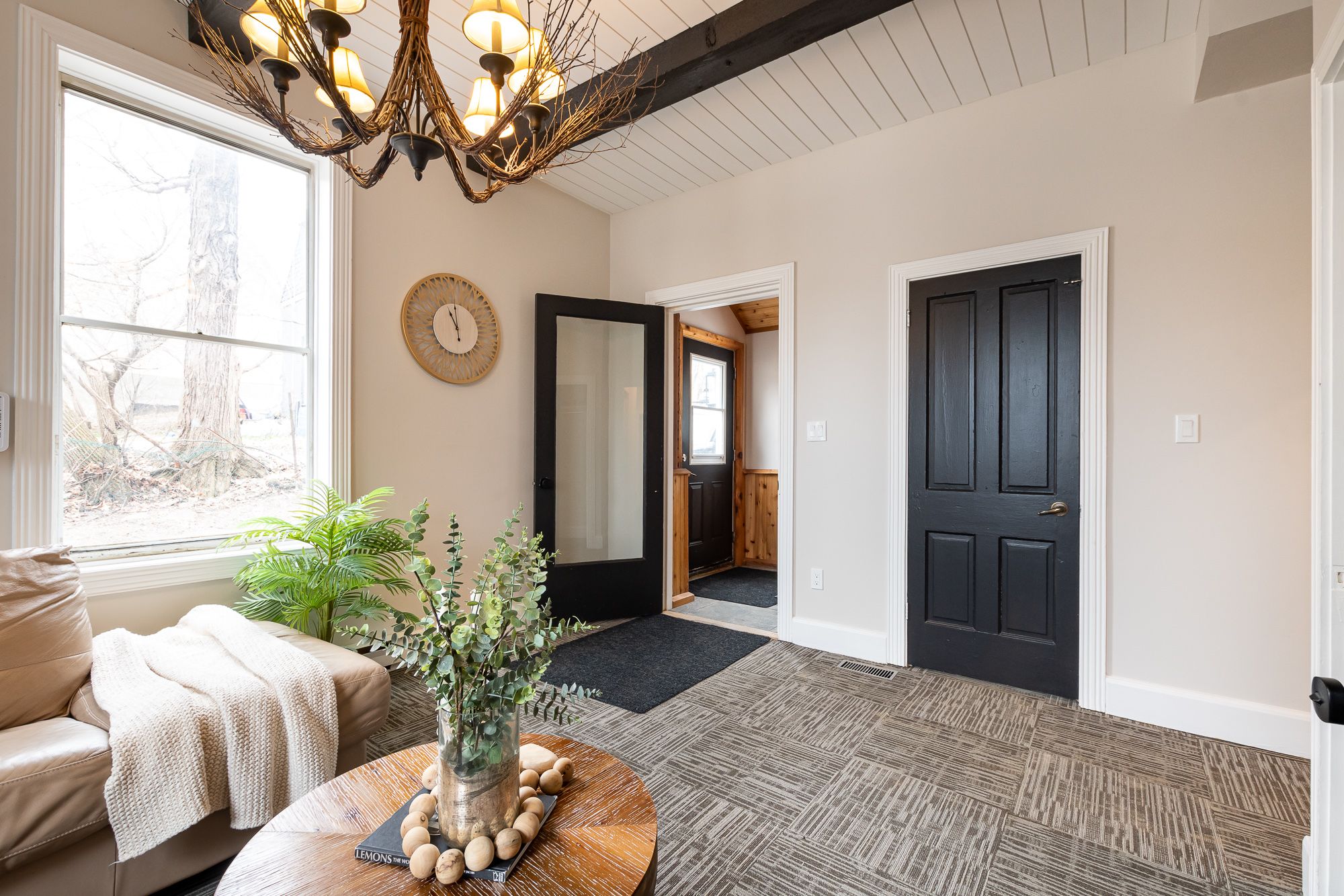 Step into a truly incredible renovation with this beautifully restored 1890 property, offering a perfect blend of historic charm & modern functionality in the heart of downtown huntsville. The main floor currently features multiple office spaces, a welcoming communal foyer, a kitchenette, a meeting room, & a stylish 2-pc powder room. Move your business here, lease the offices individually, or reimagine the space for residential use possibilities are endless. A separate entrance leads to the 2nd & 3rd floors, where the residential space truly shines. An impressive grand staircase with wainscotted walls sets the tone, leading to a stunning apartment with thoughtful design details. The 2nd floor offers a beautiful primary bedroom with its own private deck & 3-pc ensuite, an additional guest bedroom, & a luxurious 5-pc bathroom that includes laundry facilities. The spacious living room with its charming bow window overlooks the rear yard & downtown skyline, providing a cozy, light-filled retreat. The eat-in kitchen is a showstopper, featuring dual-toned cabinetry, a rustic brick backsplash, & stainless steel appliances. The 3rd floor offers a cozy, character-filled attic space, complete with a study area with convenient built-ins, a 3rd bedroom, & another 3-pc ensuite perfect for guests, tenants, or additional living space. This property also boasts 2 independent heating systems: a new radiant heating system for the 2nd & 3rd floors & a forced air natural gas furnace for the main floor. All electrical has been updated, & the roof was replaced in 2019. Outside, you'll find a circular driveway, ample parking, a rear yard with a fire pit, & an unbeatable location within walking distance to river mill park, the town docks, restaurants, shops, the algonquin theatre, & more. Whether you're looking for a live-work opportunity, an income property, or a place to create your dream downtown residence, this property is bursting with potential.