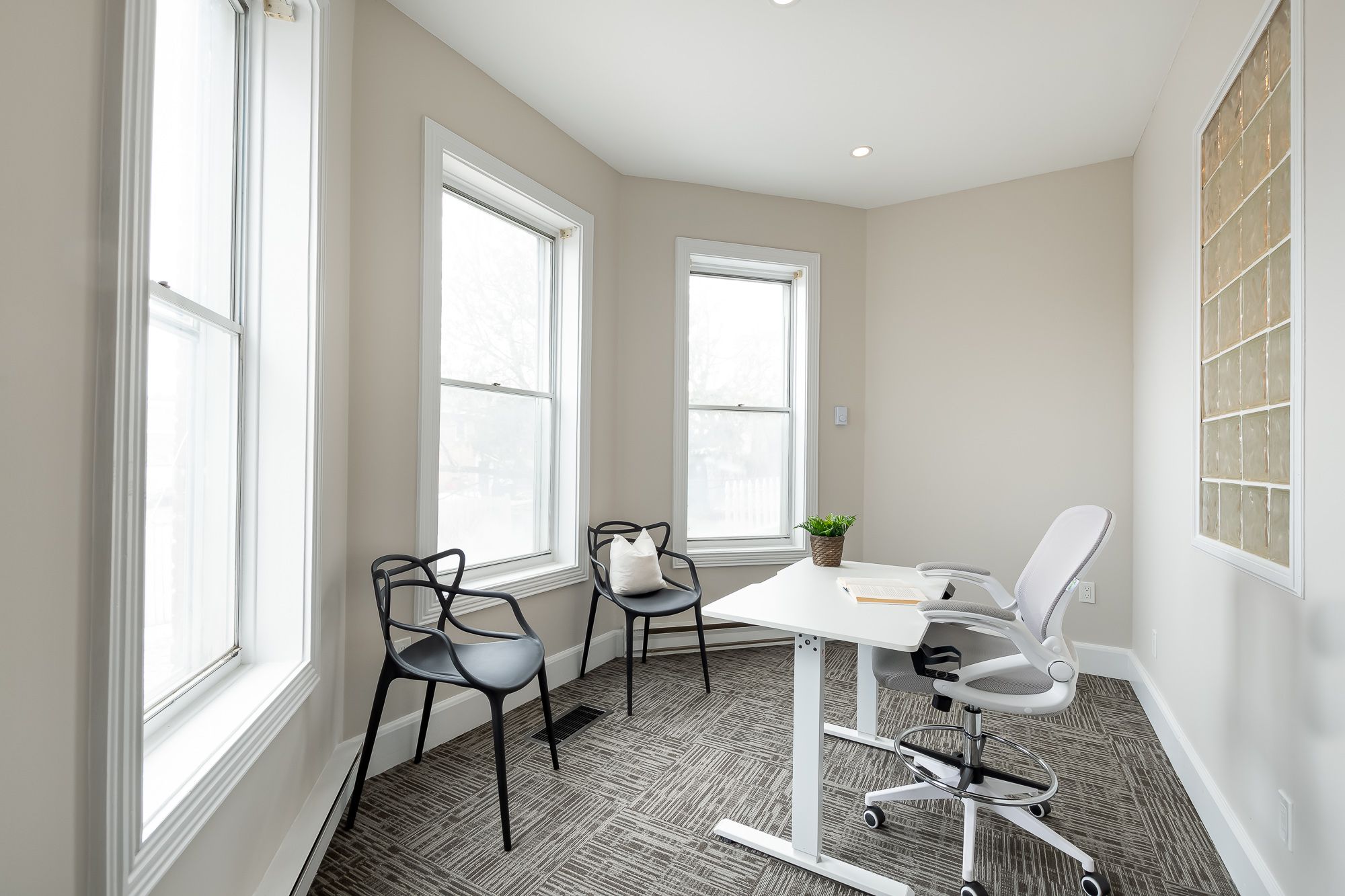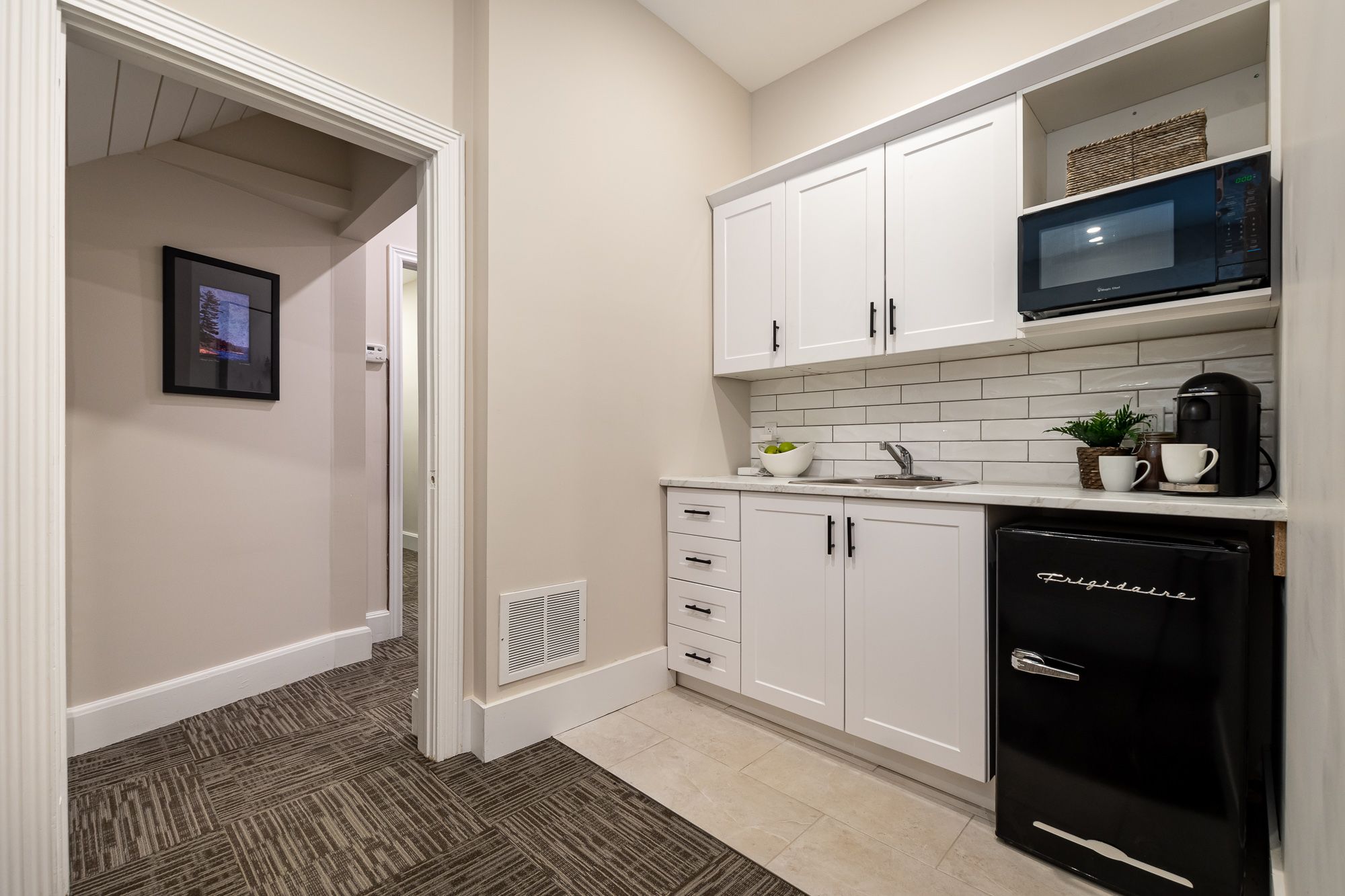 • Multiple office spaces with a welcoming communal foyer and kitchenette.