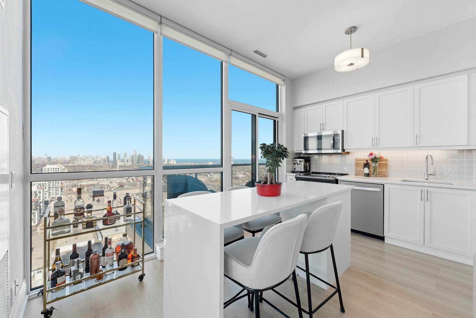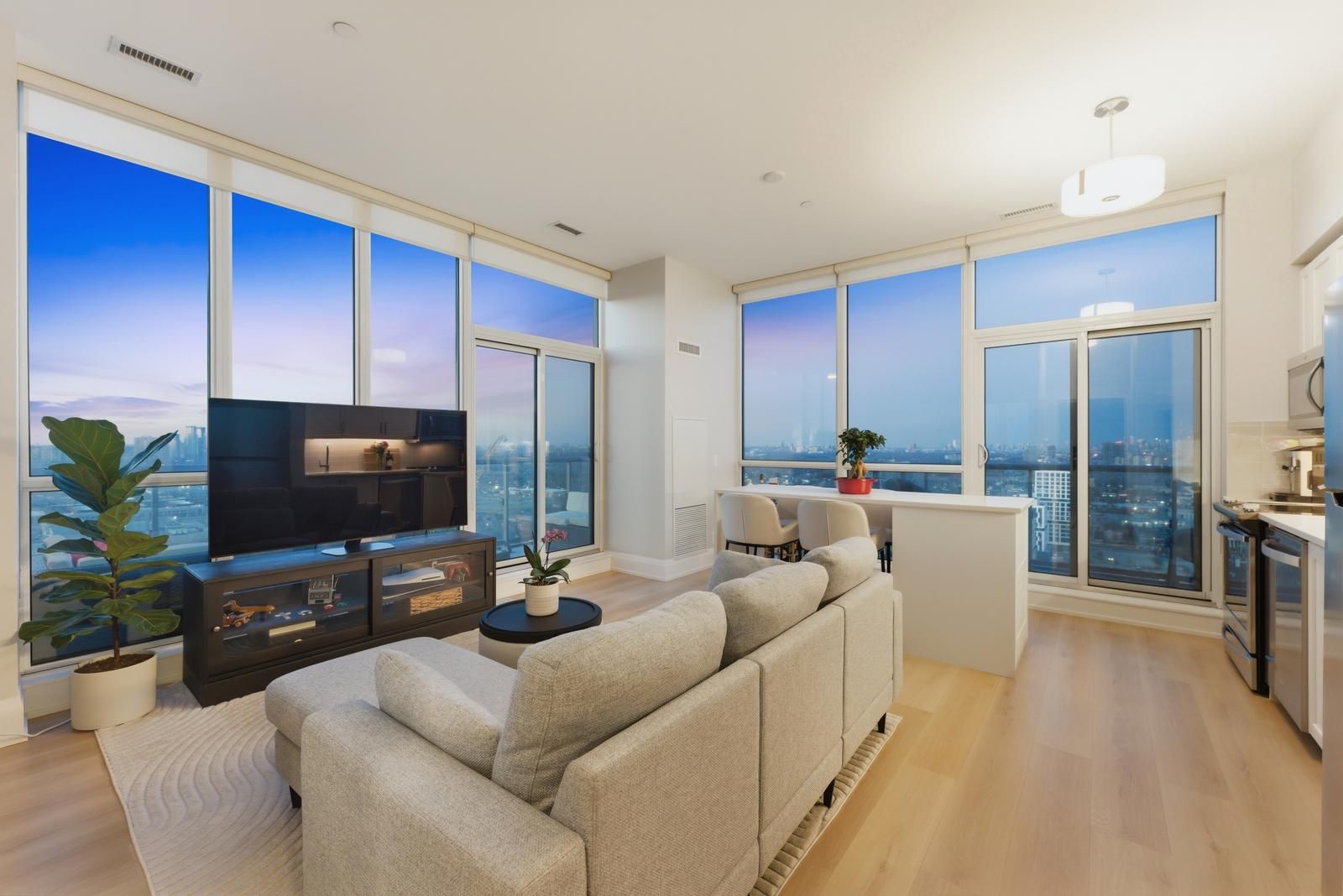 • Bright interior features tall ceilings and floor-to-ceiling windows.