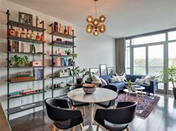 • Modern one-bedroom suite with open-concept living and high-end kitchen appliances.