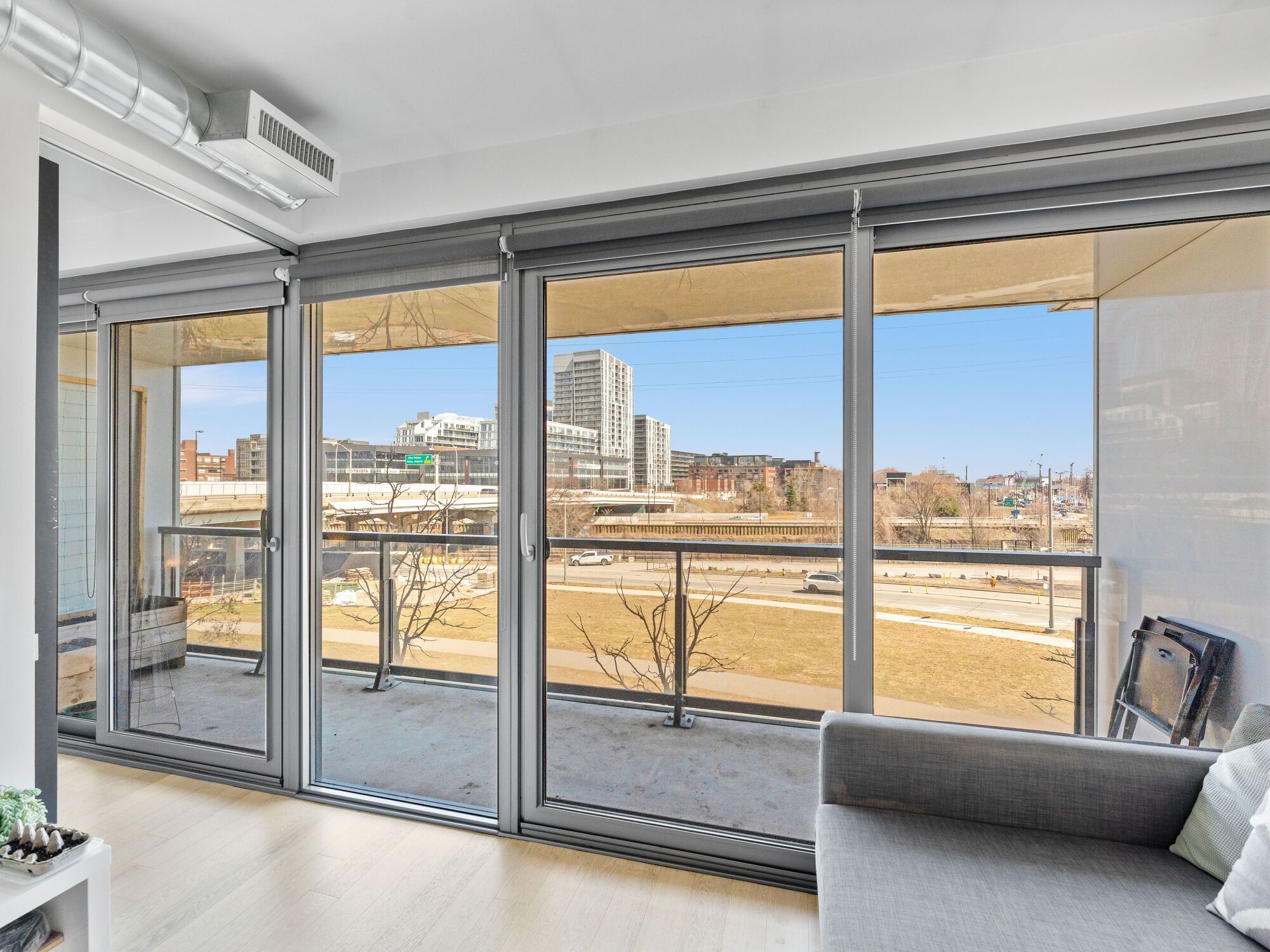 • Floor-to-ceiling windows and 9' ceilings create an open feel.