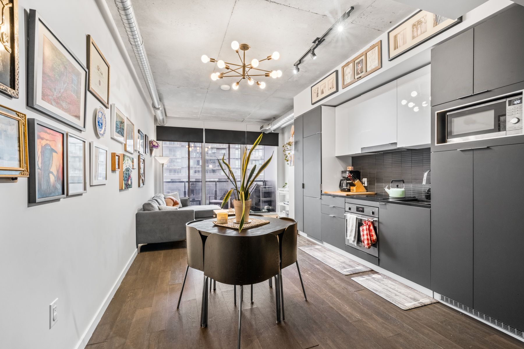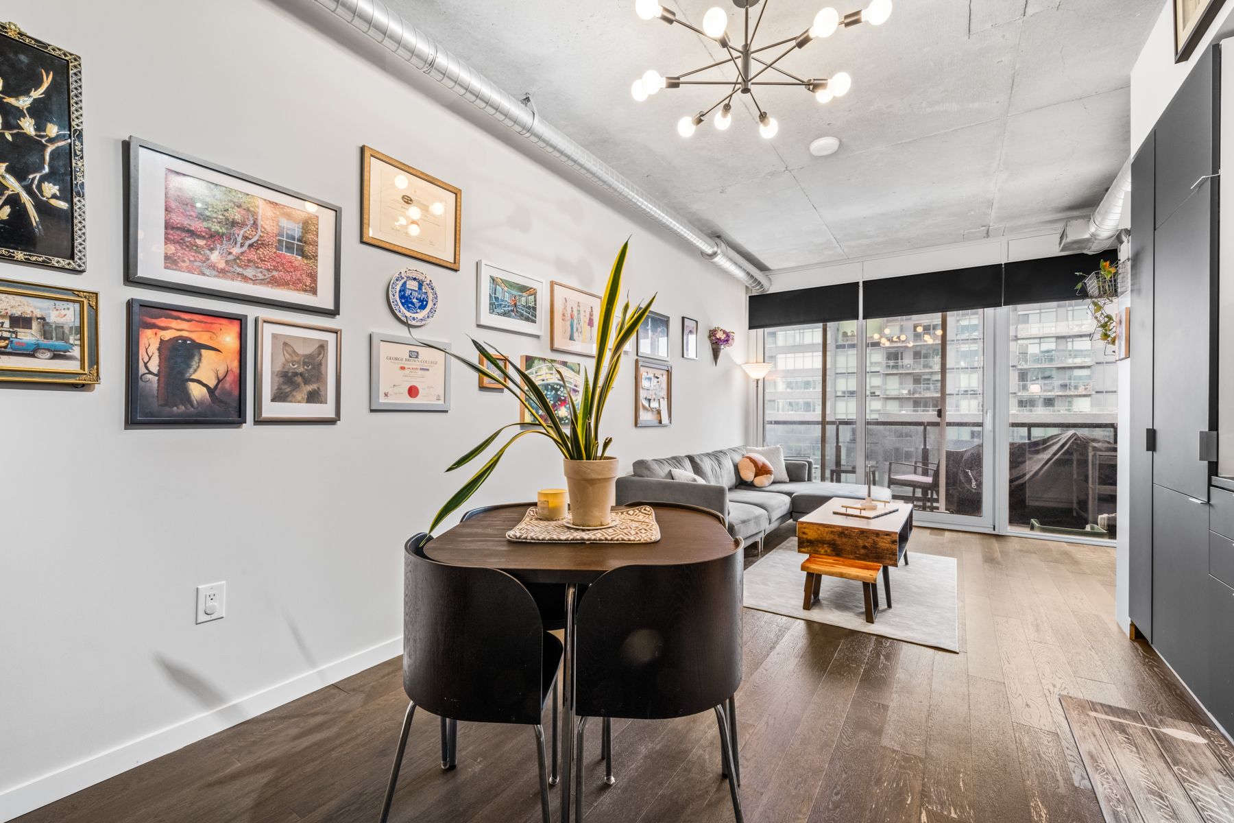 Welcome to river city 3 - a bild award-winning building and recipient of the toronto urban design award! This beautifully designed 1-bedroom suite features a bright open-concept layout with floor-to-ceiling windows, exposed concrete ceilings, engineered hardwood floors, and modern finishes throughout. The sleek kitchen offers stone countertops, european cabinetry, and integrated appliances, while the spa-inspired bathroom adds a touch of everyday luxury. Enjoy a massive private balcony and a large bedroom closet for ample storage. This unit perfectly captures the essence of downtown condo living. Plus, the landlord is truly lovely, so the future tenant will be in great hands!