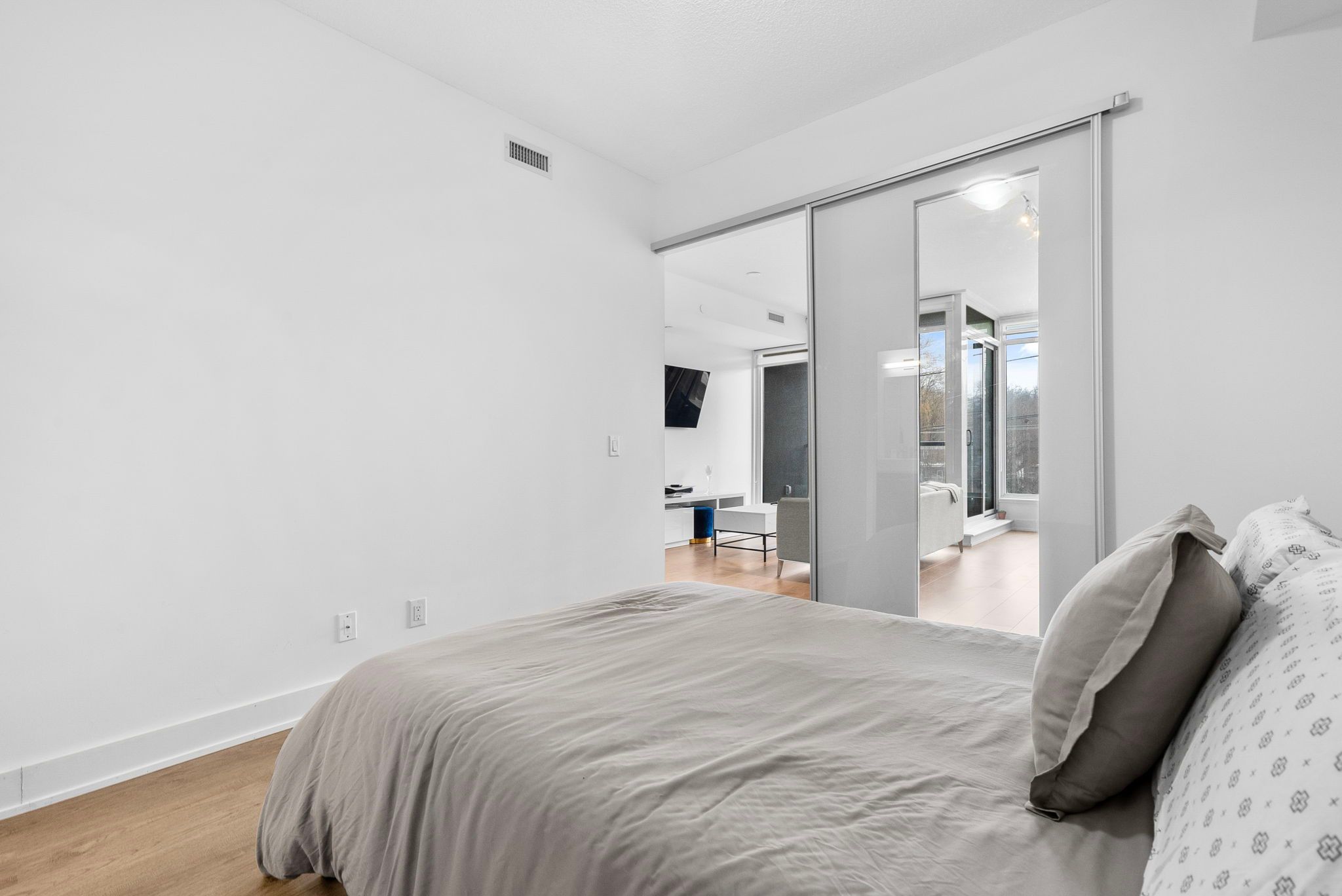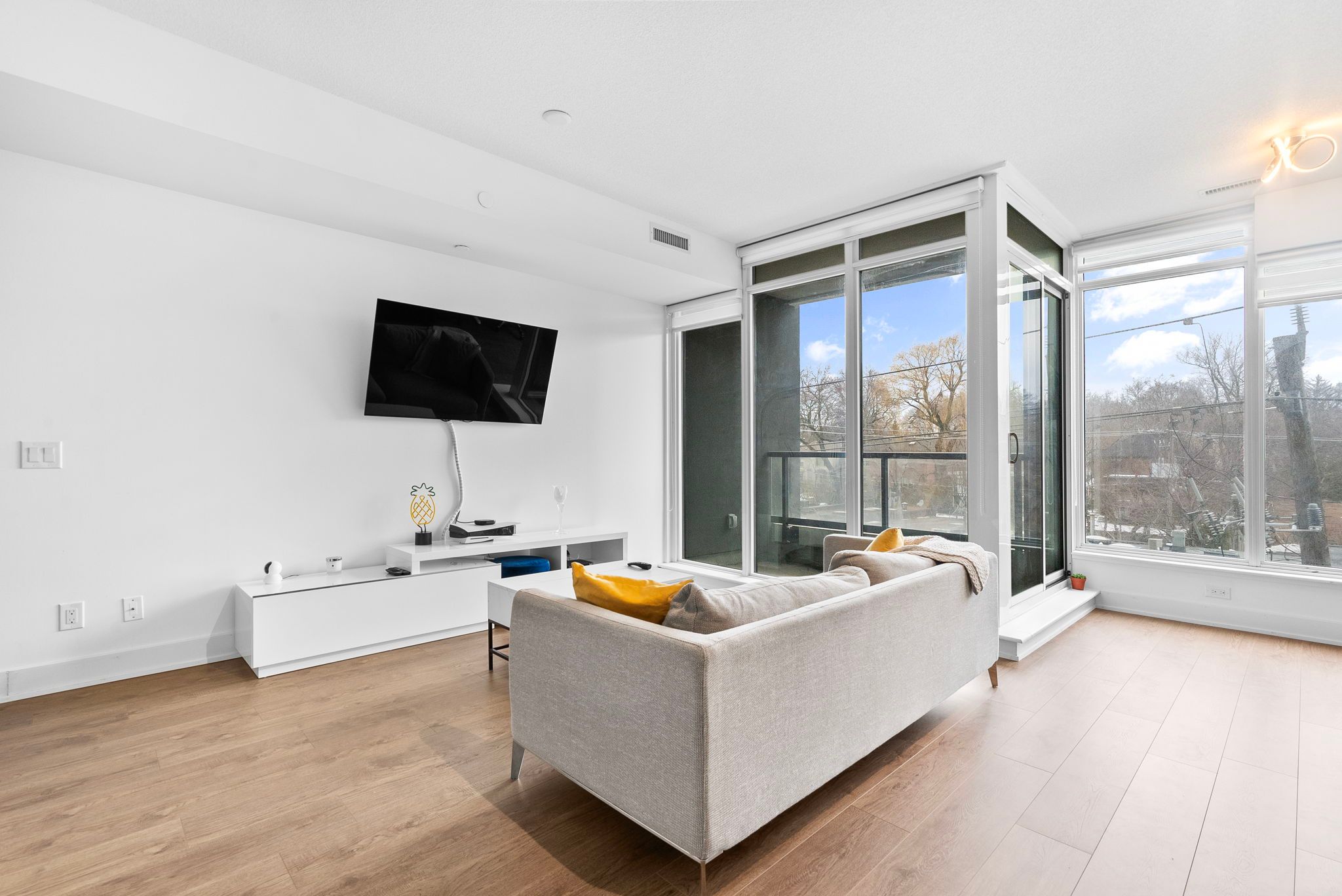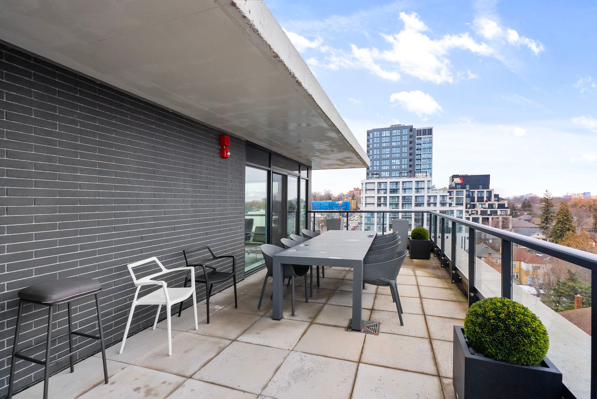 A bright and perfectly situated suite in the heart of forest hill's upper village! This 1-bedroom plus den unit offers a sophisticated open-concept design with floor-to-ceiling windows overlooking a serene backdrop of mature trees. The kitchen features granite countertops, a glass backsplash, and stainless steel appliances, flowing seamlessly into the living area with a private balcony. The primary bedroom is a true highlight, offering a rare walk-in closet and a convenient semi-ensuite. A versatile den serves as the perfect home office or dining area, while the functional layout makes the entire space feel open and inviting. Building residents enjoy amenities, including 24/7 concierge, a gym, guest suite, party room, dining room, billiards room, and a rooftop terrace. The location is unbeatable: steps to the new eglinton crosstown lrt (cedarvale & forest hill stations) and immediate access to allen rd and the 401. Minutes to grocery stores, boutique shopping, cafes, restaurants, and cedarvale park. Modern comfort meets total connectivity, your peaceful retreat in the heart of the city.