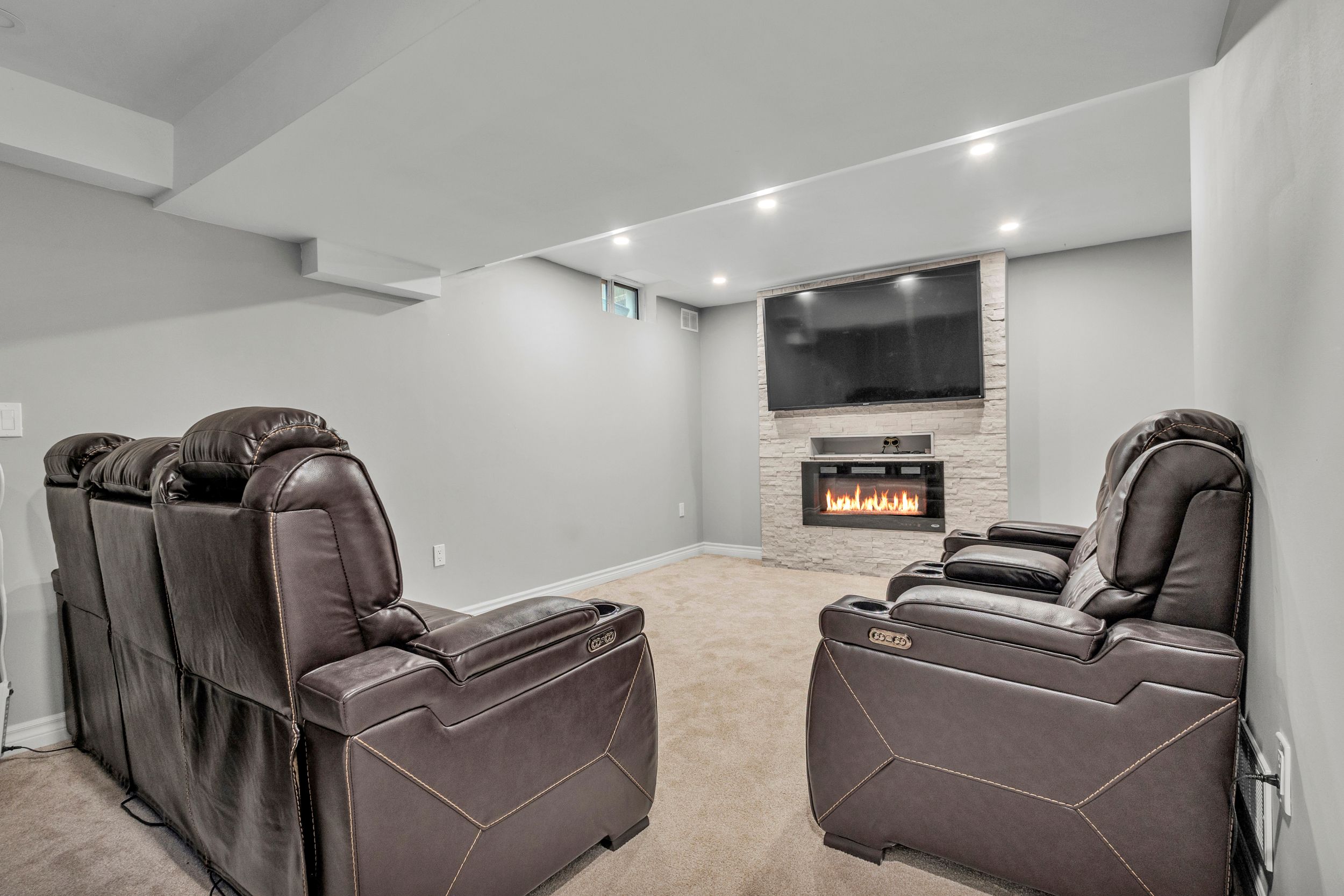 Experience smart home living in stoney creek with this stylish, low-maintenance, move-in ready 3+1 bedroom, 2. 5 bath condo townhouse offering approximately 2,000 sq. Ft. Of total living space in a quiet, family-friendly community. Enjoy peace of mind with a low $330/month condo fee covering the entire home envelope including roof, windows, doors, grass cutting, and snow removal eliminating costly exterior maintenance. This bright, open-concept home features upgraded flooring, fresh modern paint tones, california shutters, updated light fixtures, and a cozy gas fireplace in the living area. The modern kitchen includes real wood cabinetry, stainless steel appliances, stylish backsplash, and a functional island opening to the living and dining spaces perfect for entertaining. Upstairs offers a spacious primary bedroom with updated ensuite featuring a new vanity and glass shower, plus a unique 9' x 8' den ideal for an office or storage. The finished basement provides additional living space with pot lights, a stone accent wall, and electric fireplace. Smart home technology allows control of lights, heating, and cooling by voice, phone, or schedule even adjust the temperature from bed and have lights turn on automatically at sunset. Located across from circle k and tim hortons, just a 5-minute walk to valerie park (next to sherwood soccer fields), and a 6-minute drive to the qew. Unit #30 offers exceptional backyard privacy with no neighboring homes within 100 feet. A perfect blend of style, comfort, and convenience this home offers incredible value and is truly move-in ready!