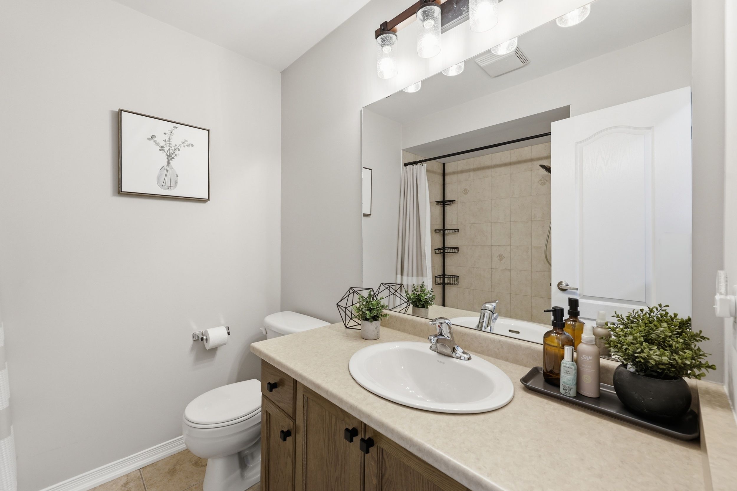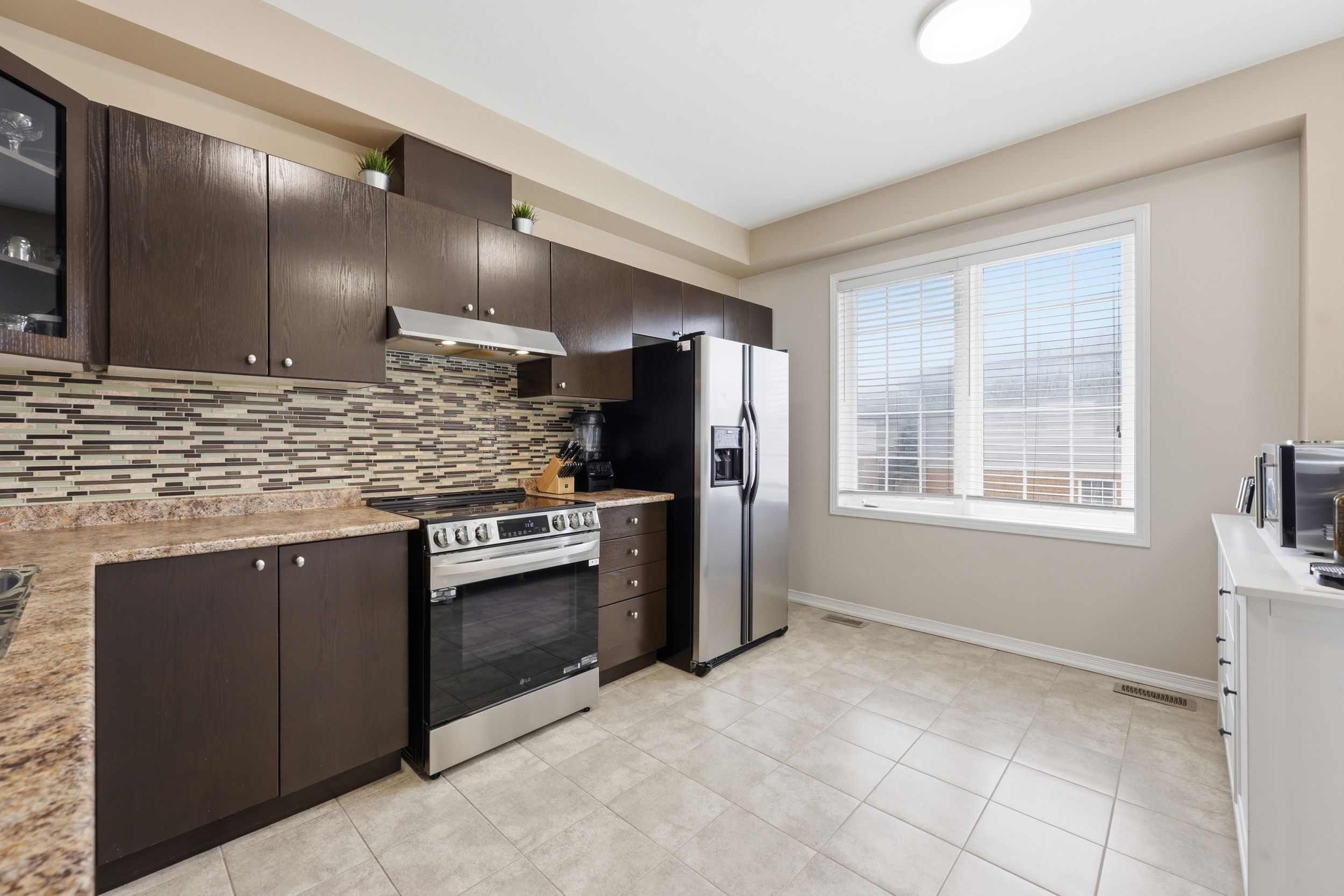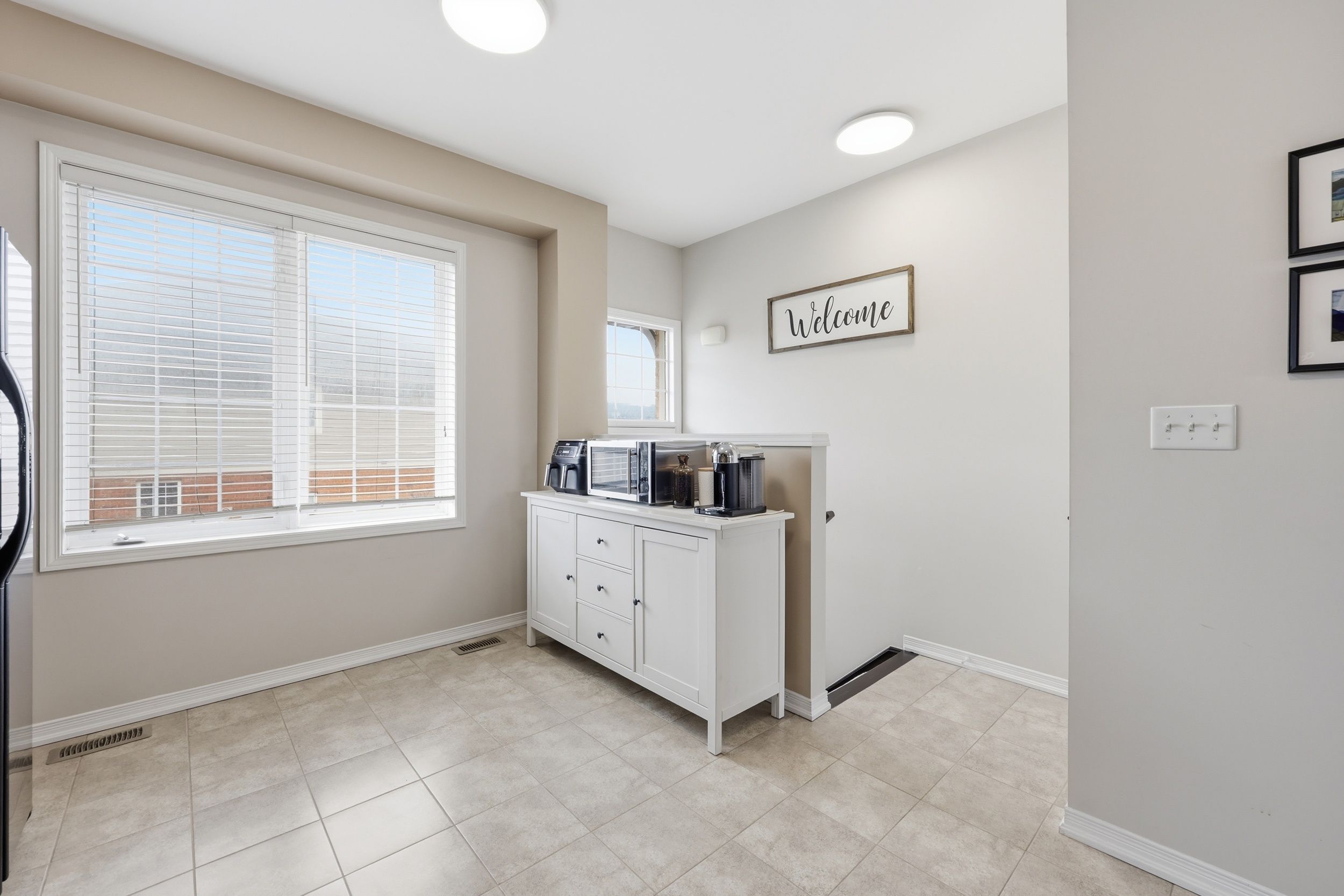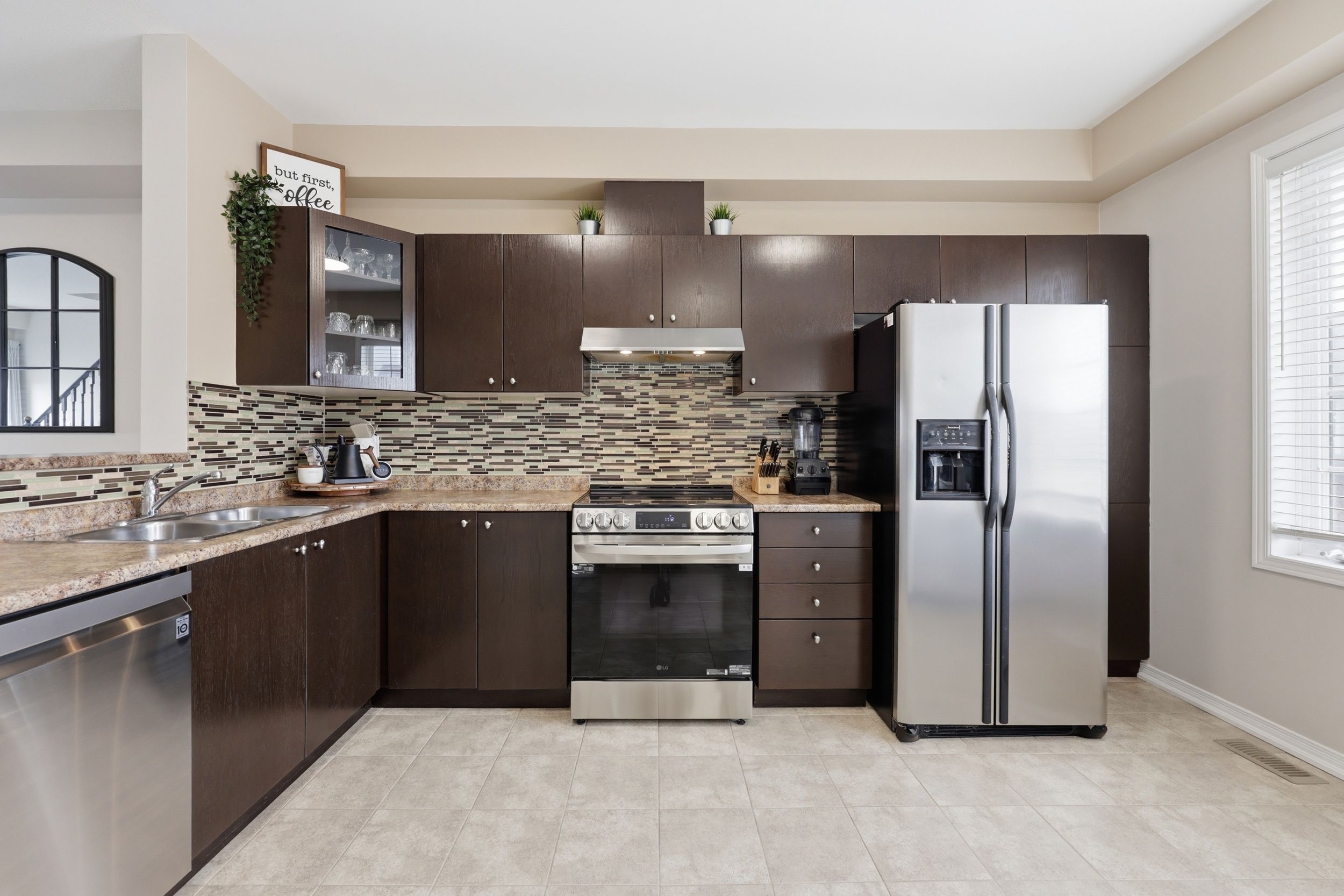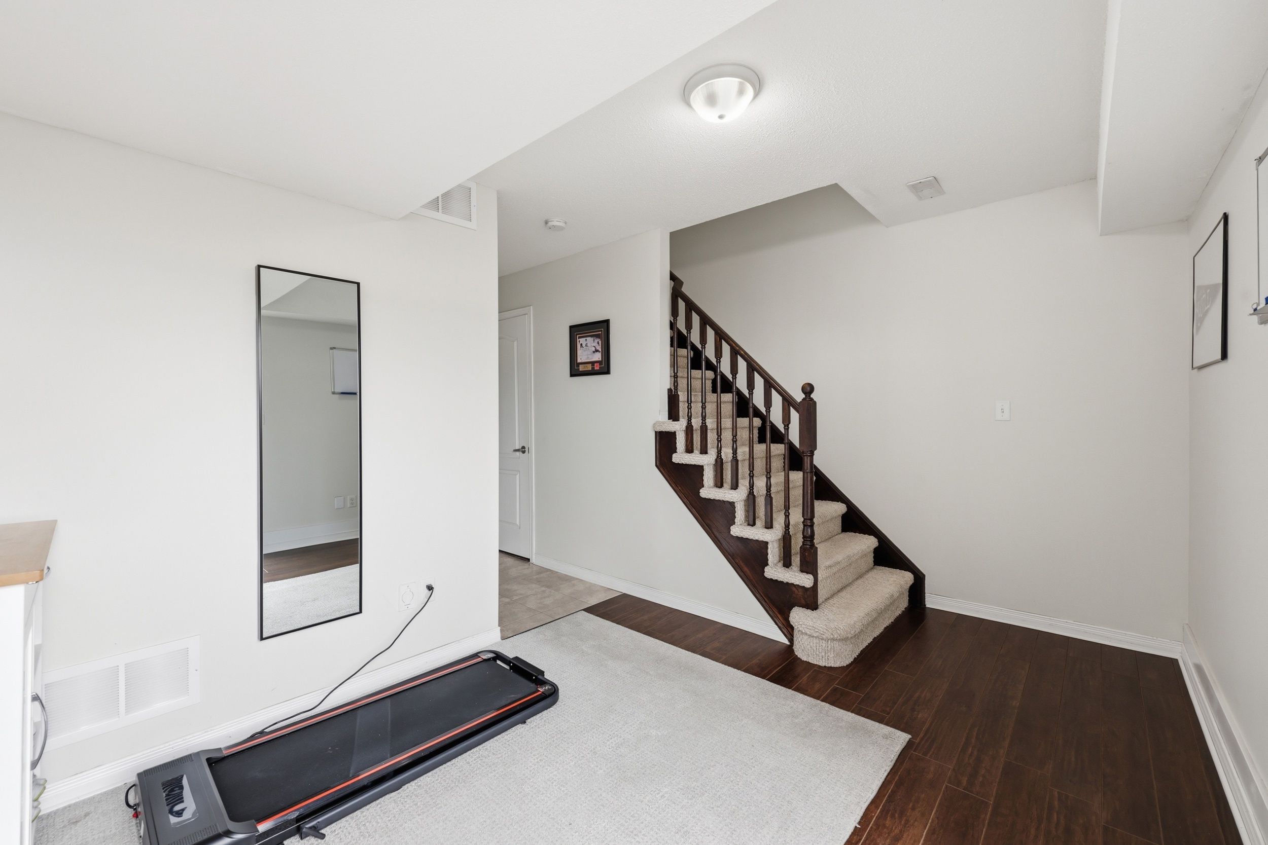 Welcome to this beautifully maintained 3-storey condo townhouse in stoney creek's sought-after east village. A home that offers comfort, function, and easy everyday living. Fully open-concept main floor. Large kitchen with stainless steel appliances & breakfast bar. Living & dining areas featuring laminate flooring in a way that feels both practical and inviting. Large windows bring in plenty of natural light, creating a warm and welcoming space with private balcony access. A recently updated main floor powder room with granite countertops. Upstairs, you'll find generous bedrooms, along with the convenience of a second-floor laundry. The finished lower level provides additional living space with a walk-out to a fully fenced backyard, offering an opportunity for outdoor privacy in condo living. The oversized garage adds valuable space for parking, storage, or both. Ideally located close to shopping, schools, amenities & easy highway access to the qew as well as a 10 minute drive from the new confederation go station (perfect for the commuter). Not to mention close to the lake, nearby conservation areas and trails (for those nature lovers), this is a home that offers both convenience and connection. Move-in ready and easy to enjoy living your life.