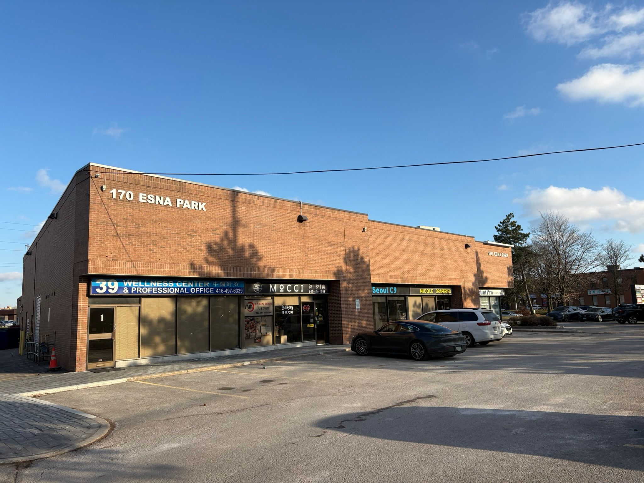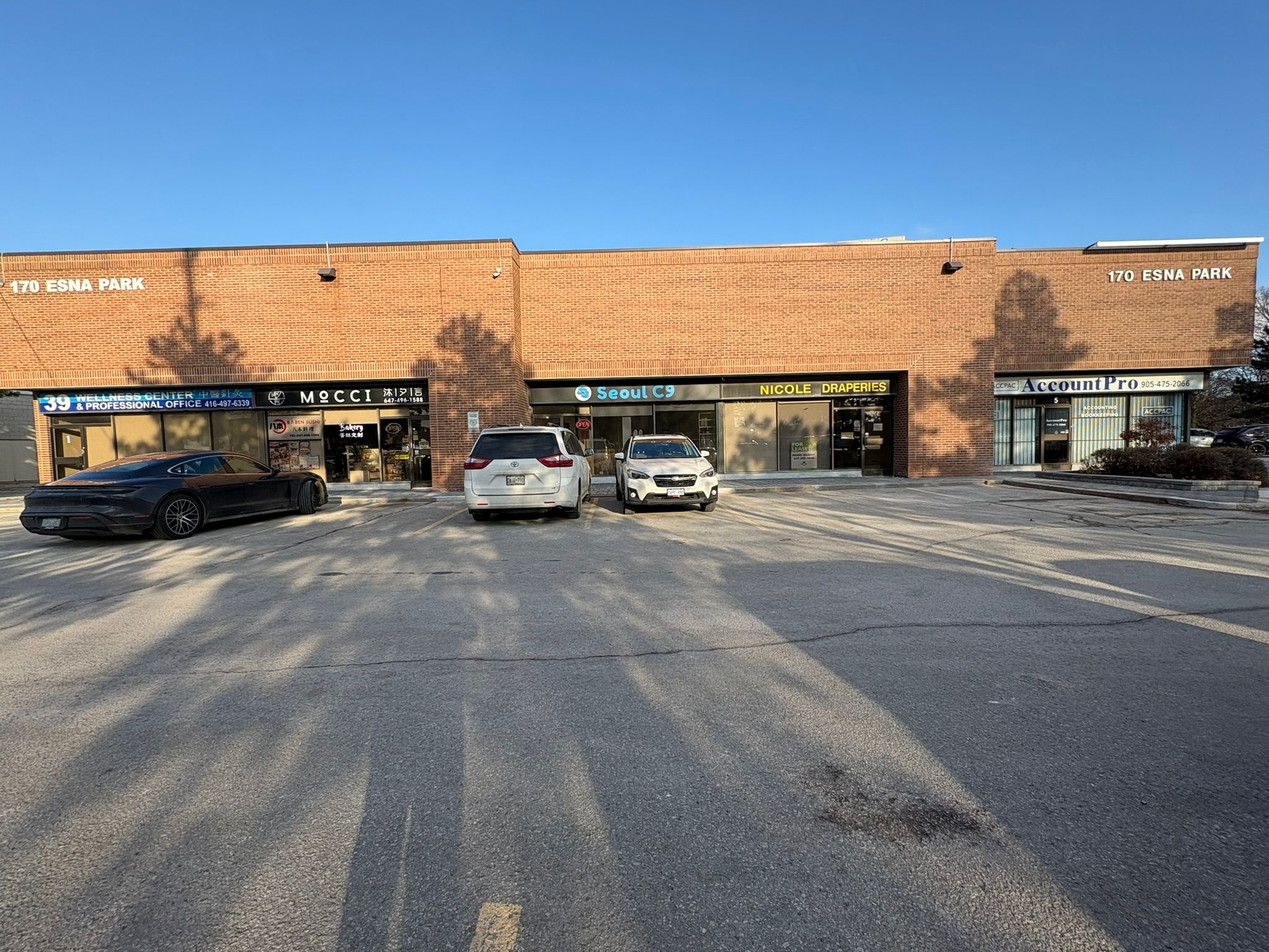 Outstanding corner exposure right at esna park & dennison-high-visibility location. Outstanding industrial/commercial condo unit with excellent exposure on esna park drive, ideally situated beside mayfair fitness. The property offers dual access from both roads and exceptional visibility in a high-traffic area. Conveniently located near highways 404, 401, and major arterial routes, with easy access to public transit. The complex, built in the 1980s, is well maintained and fully occupied, primarily by long-term owner-users. This centrally positioned unit features a rare 20-ft clear height, allowing for a professionally constructed mezzanine. The total area includes 1,534 sq. Ft. On the main floor plus an 807 sq. Ft. Mezzanine, for a combined 2,341 sq. Ft. Ideal for a wide variety of industrial, restaurants, showroom, or service-oriented uses.