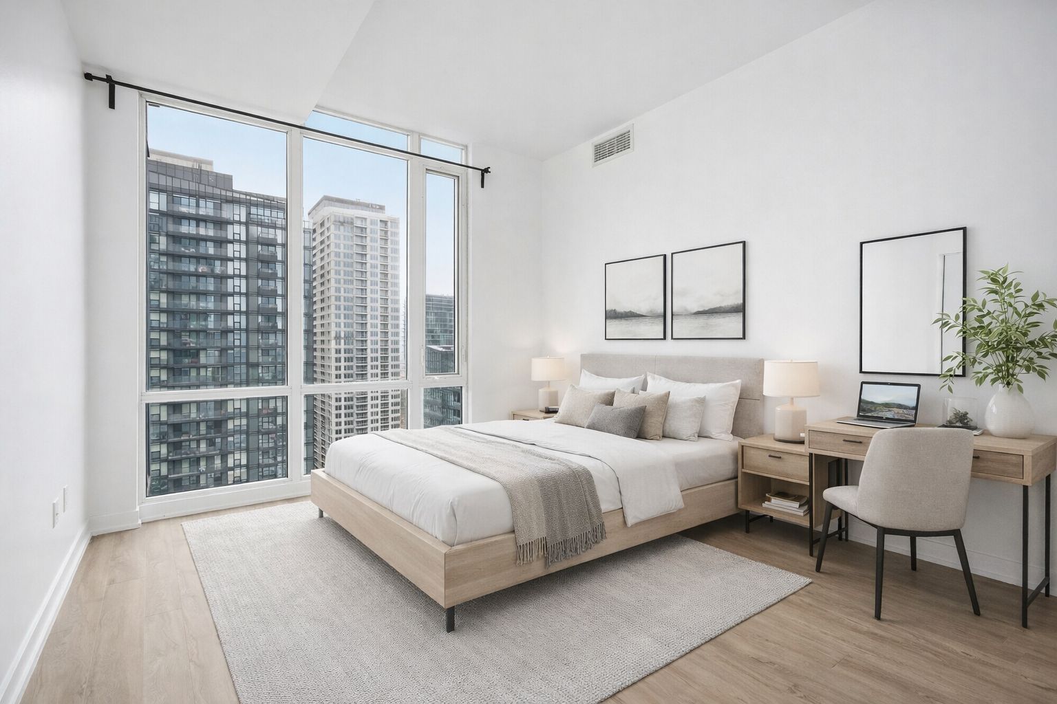 This is your chance to claim ownership of an absolutely gorgeous 2-bed condo corner unit, that boasts a spectacular south west lake view! With oversized sliding glass which captures tons of sun and natural light, this beautiful, bright, spacious, tranquil unit is the definition of luxury. Amazing building amenities allow you to maintain balance in your life, and living next to entertainment district, the downtown core, martin goodman trail and more, allows you to dive headfirst into the unique and exciting toronto lifestyle. Some photos have been virtually staged for illustrative purposes only. Furniture and decor shown are not included and may not reflect the current condition of the property.