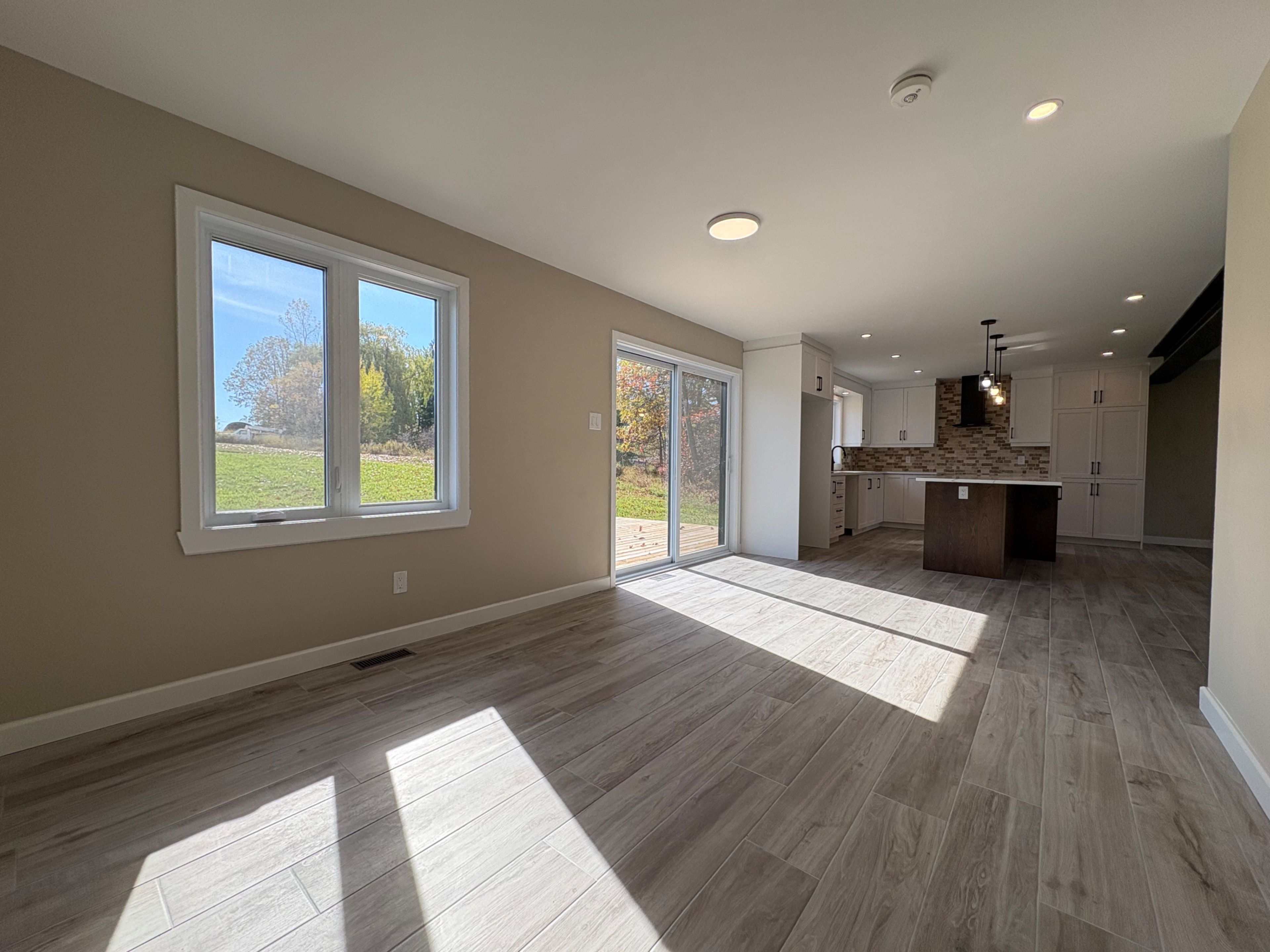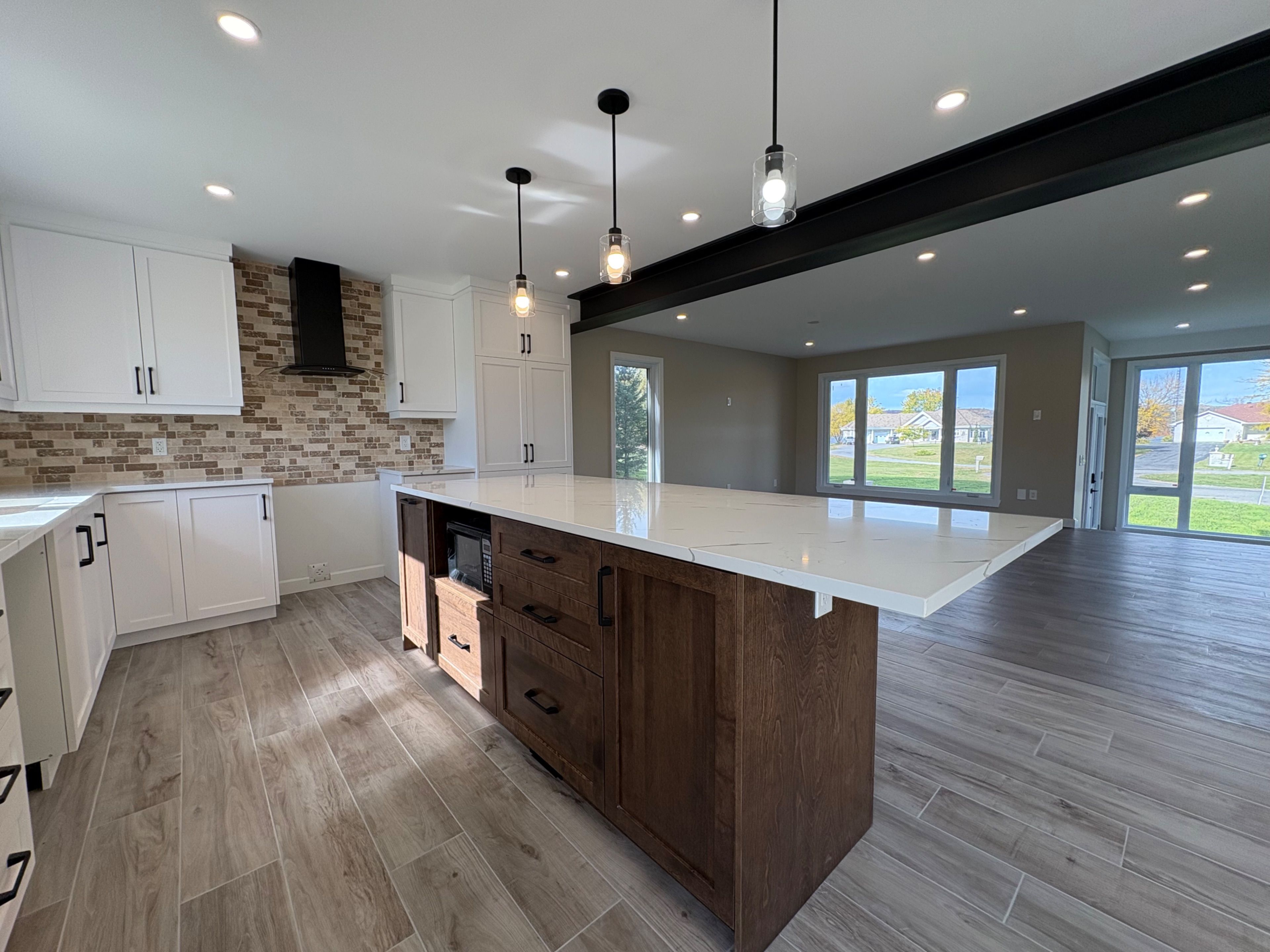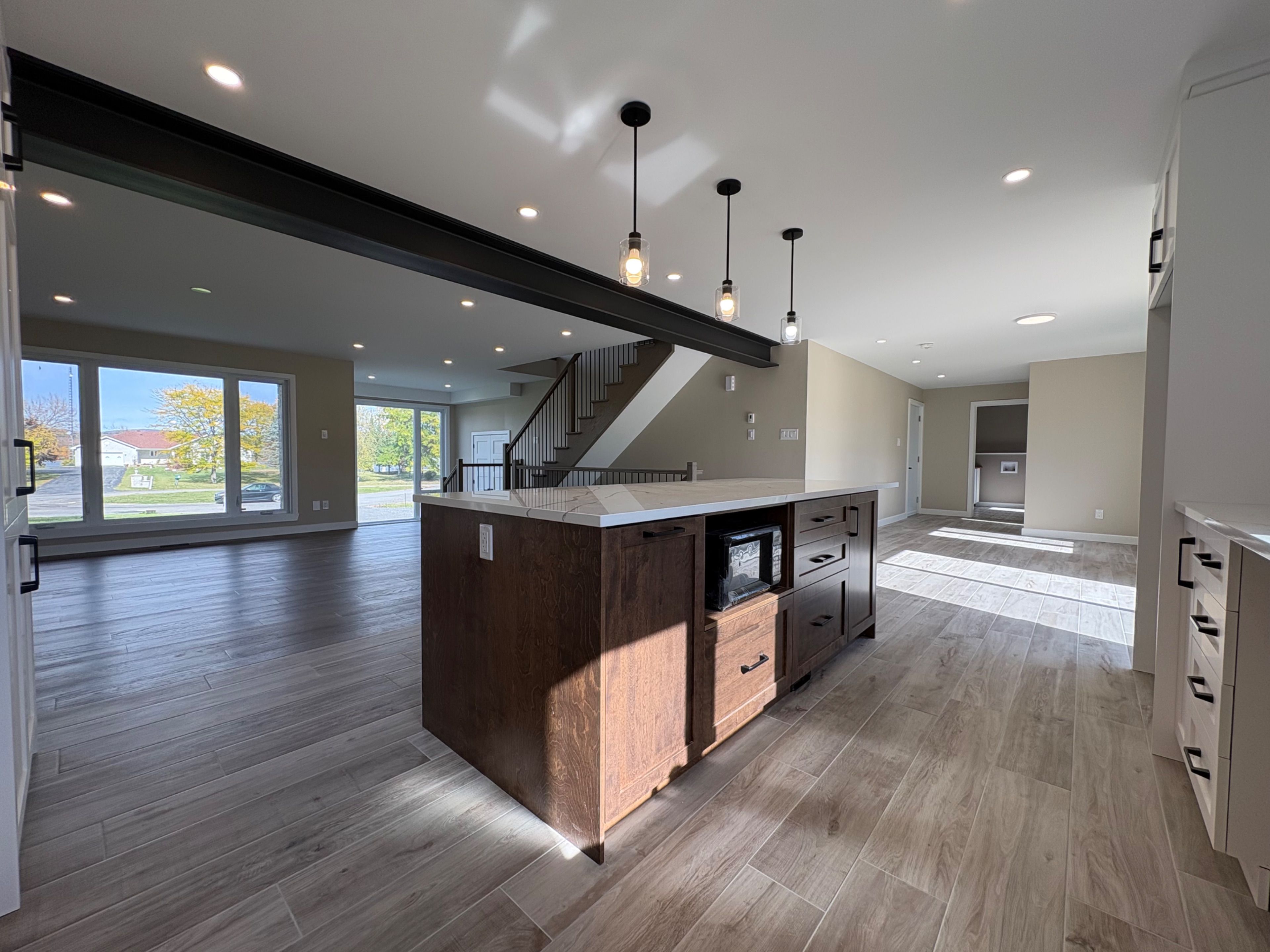 • Bright, open-concept main floor with high ceilings and modern kitchen.