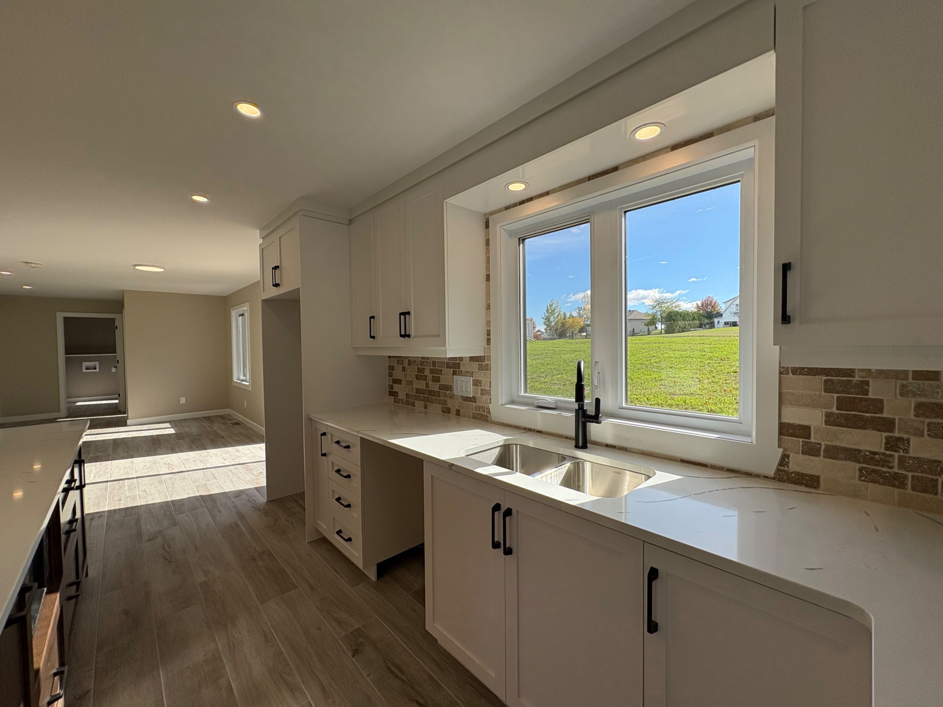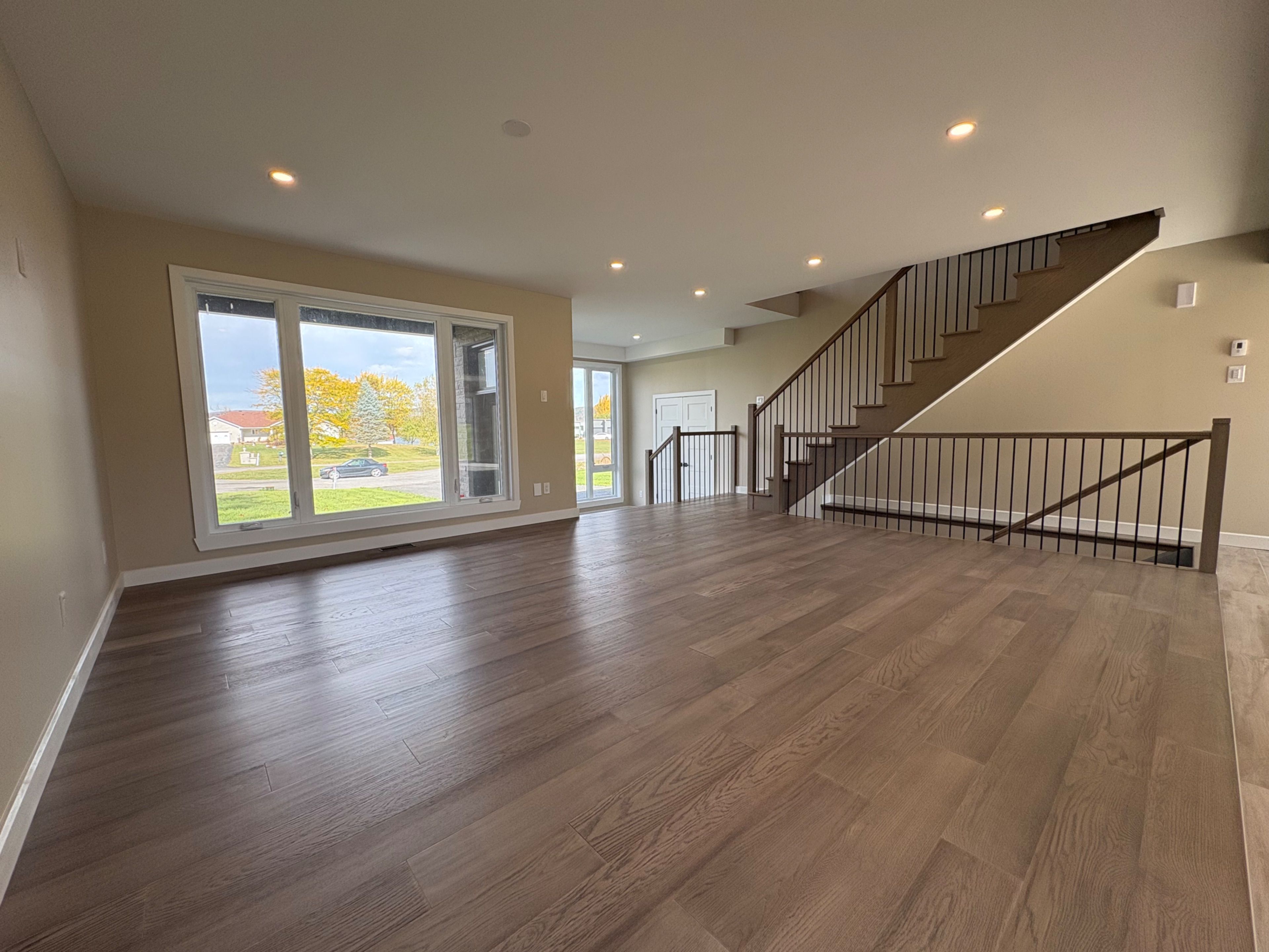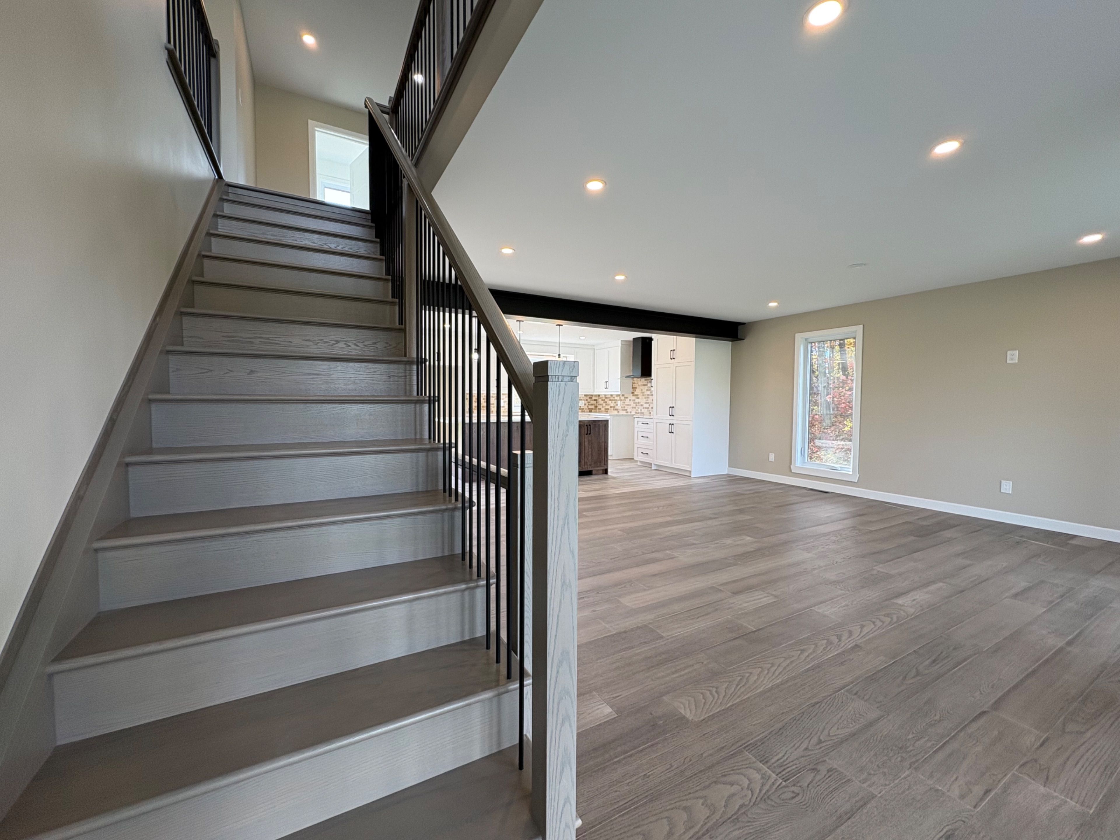 • Bright, open-concept main floor with high ceilings and modern kitchen.