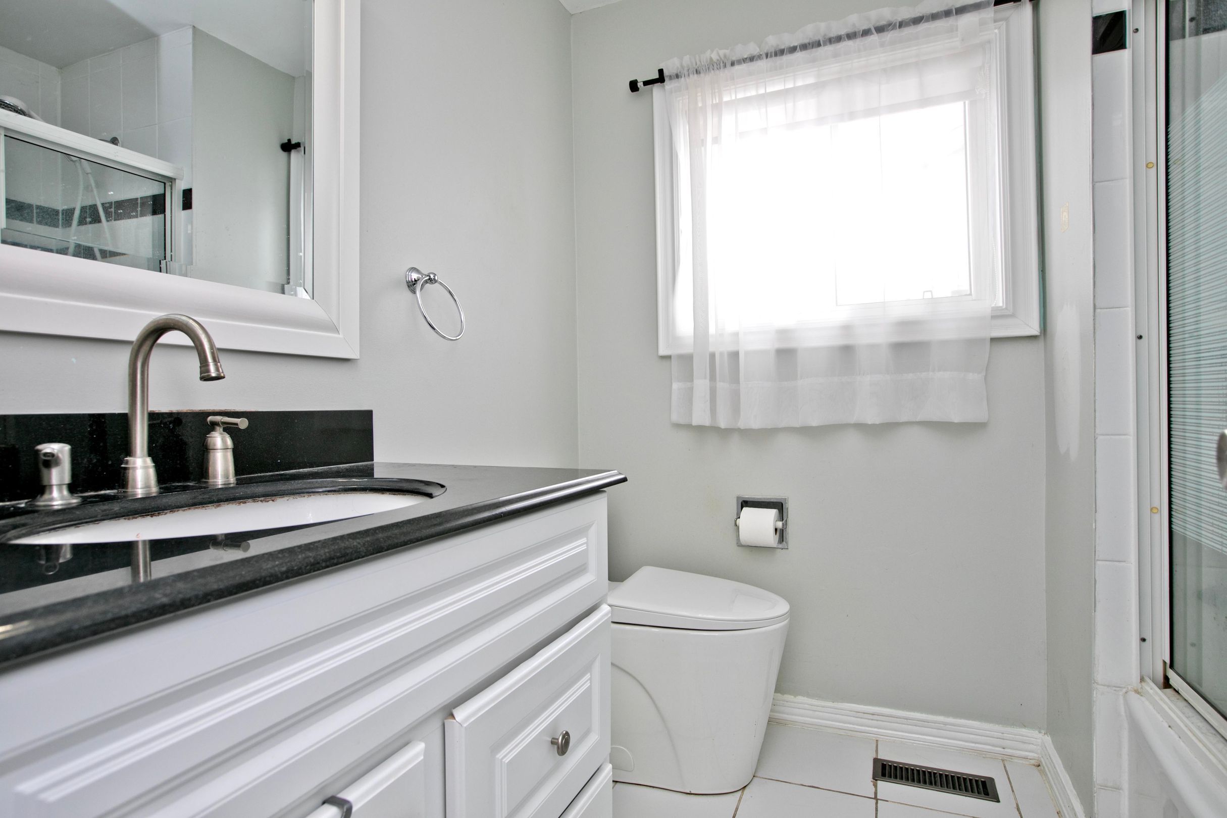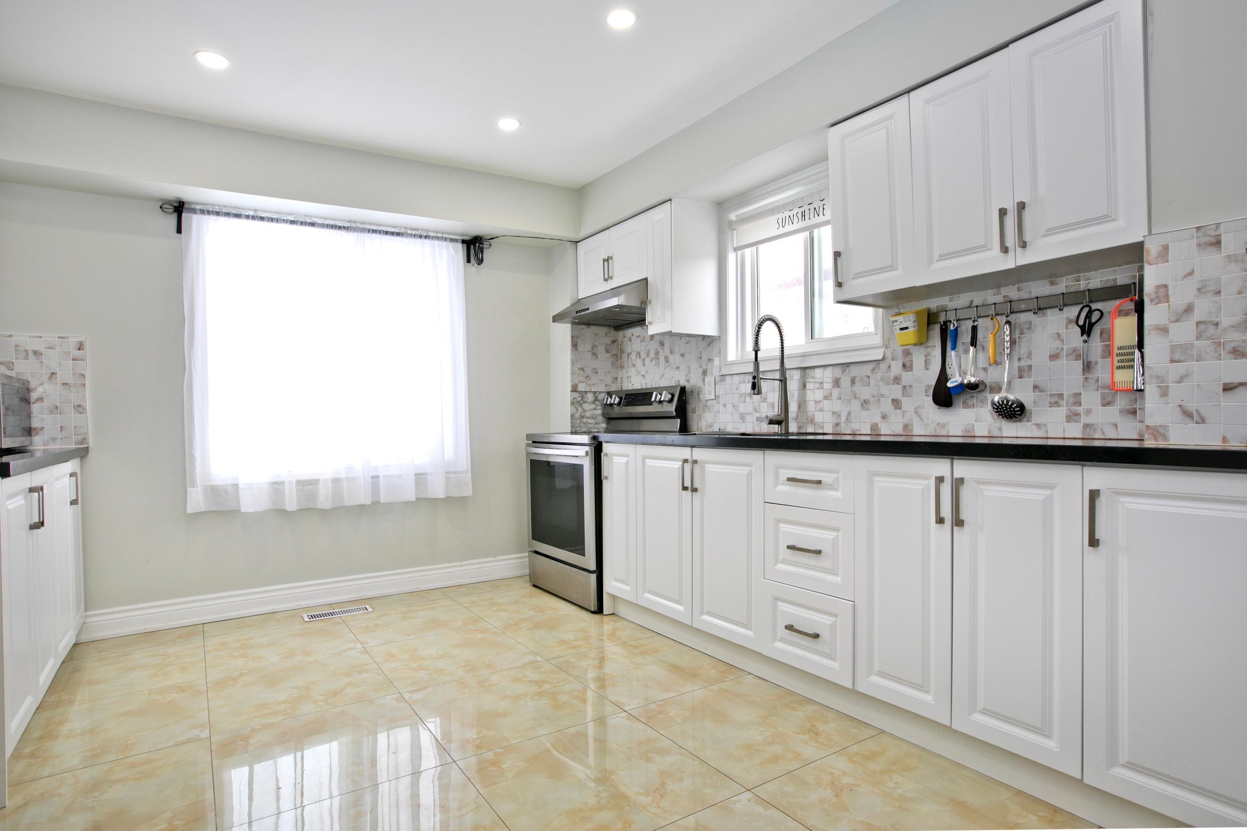 • Renovated kitchen features modern finishes for cooking and entertaining.