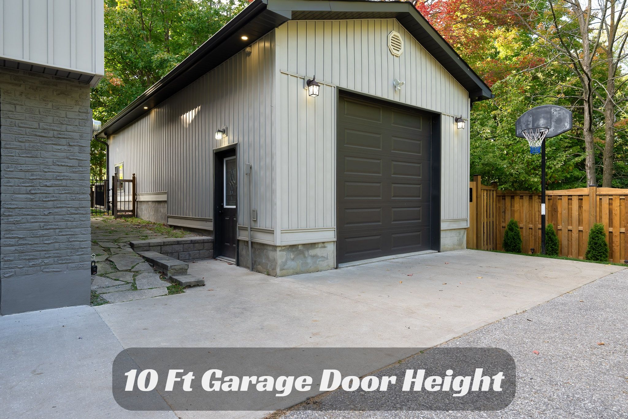 • Large heated workshop with 12 ft ceiling and 10 ft garage door.