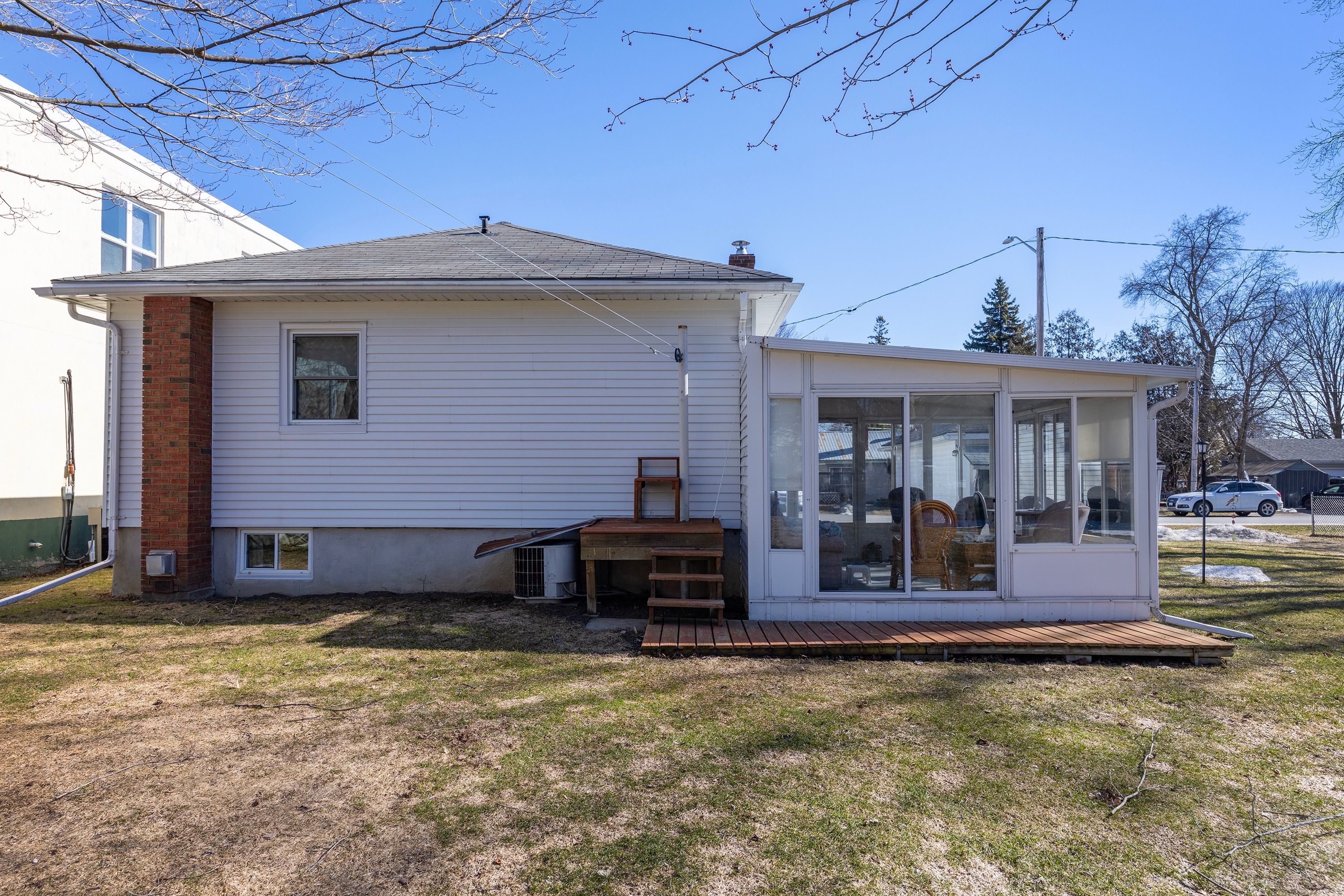 Well-maintained bungalow offering comfortable, functional living in a convenient in-town location. This home features 3 bedrooms and 1 full bathroom, along with a bright eat-in kitchen that provides plenty of space for everyday dining. Equipped with a natural gas furnace and central air conditioning, the home ensures year-round comfort. The partially finished basement includes a spacious rec room with a cozy gas stove, as well as a small workshop-ideal for hobbies or additional storage. Situated on a large town lot, the property also offers a detached garage, a partially fenced yard, and a charming 3-season sunroom perfect for relaxing. Located close to downtown, the waterfront trail, schools, and other amenities, this property combines practicality with lifestyle appeal.
