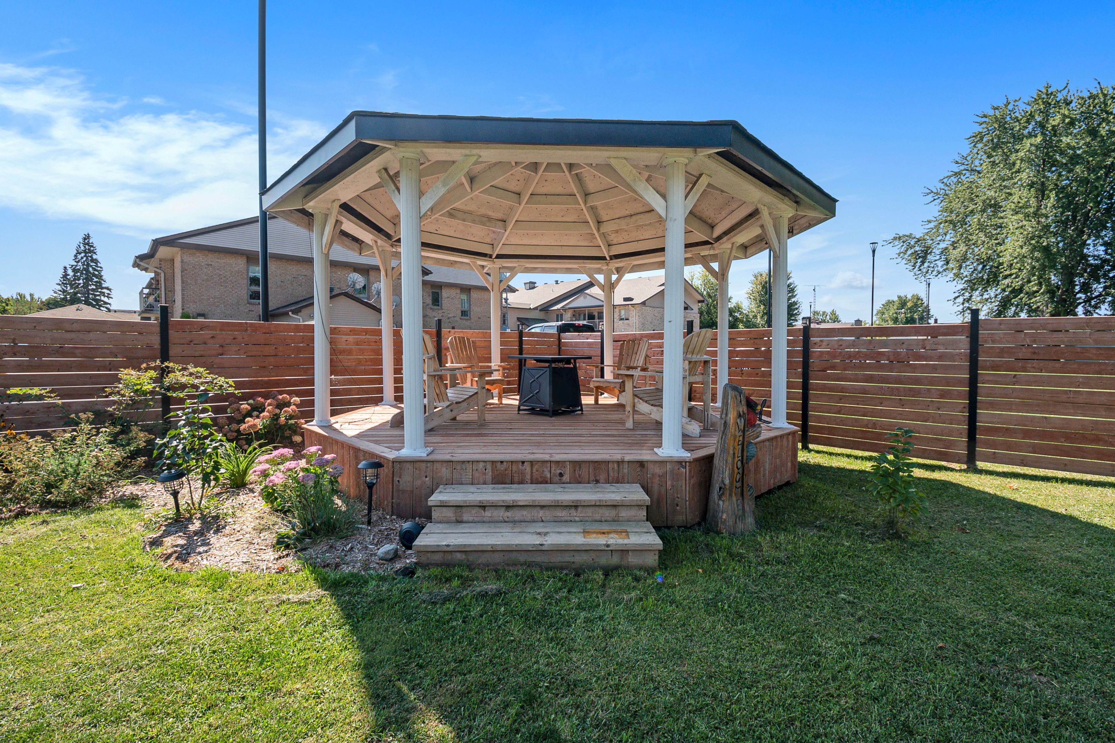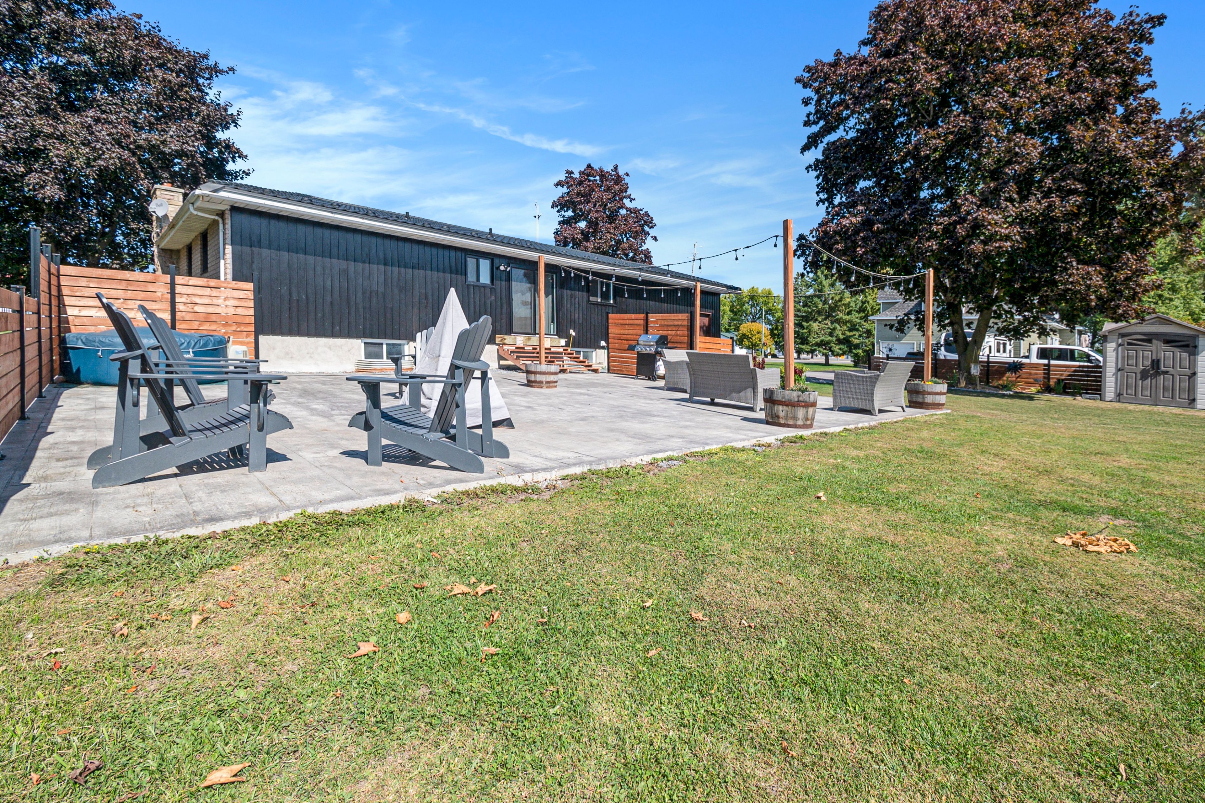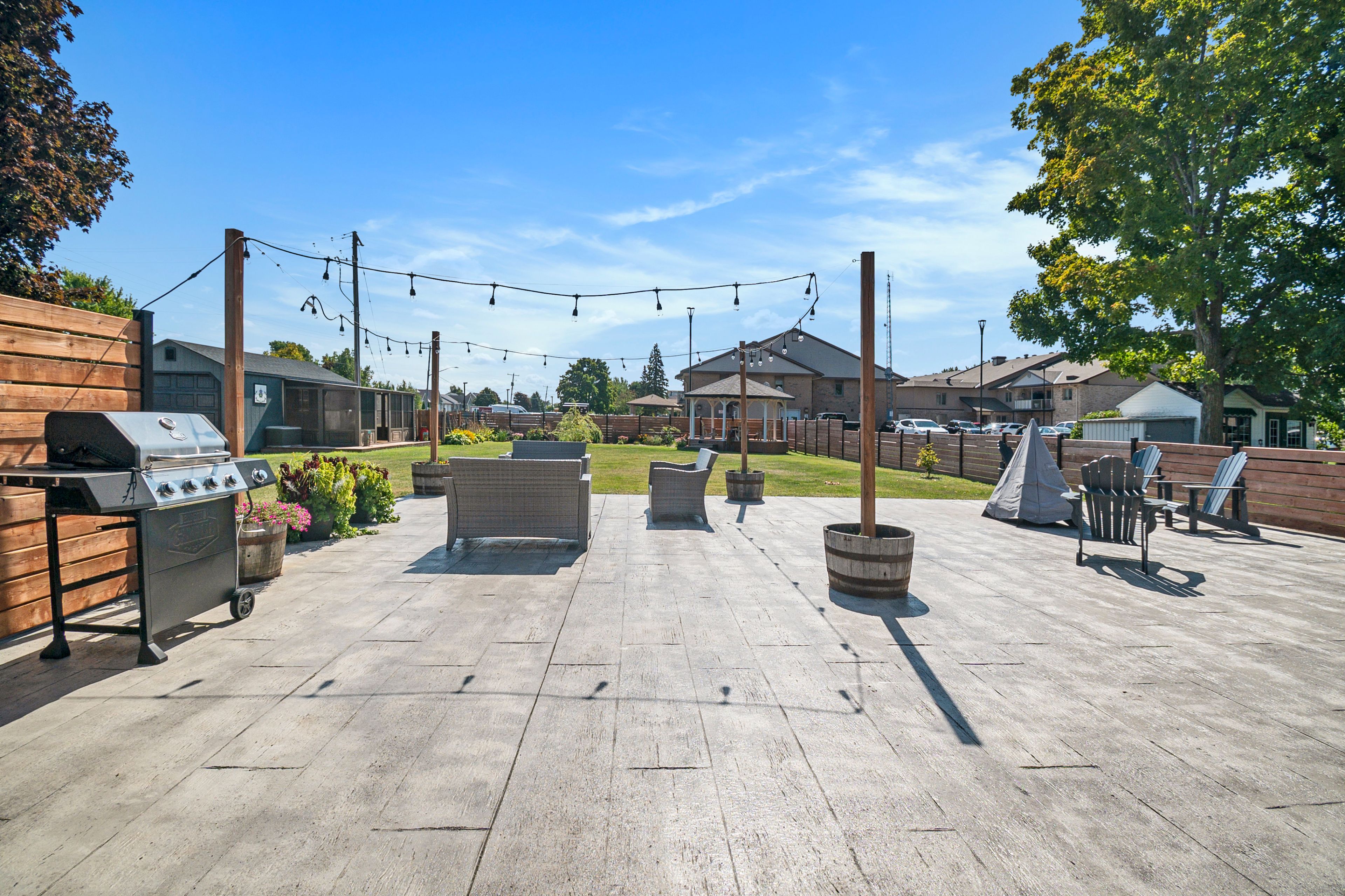 • Impressive backyard with a large patio, gazebo, and storage shed.