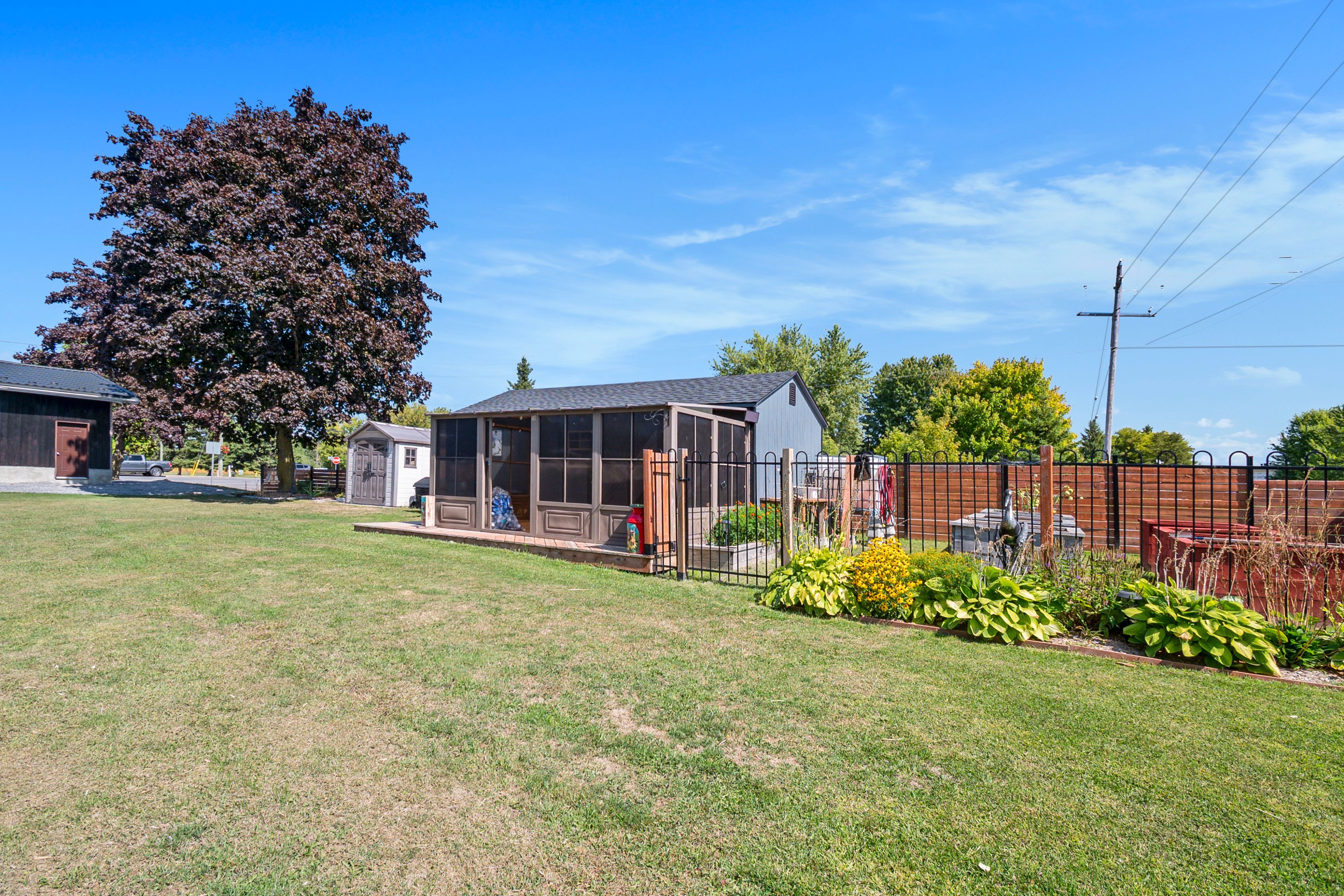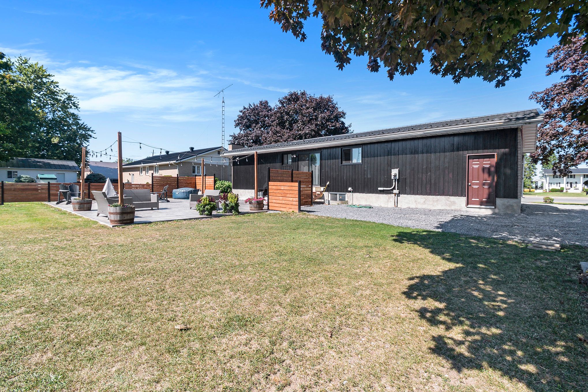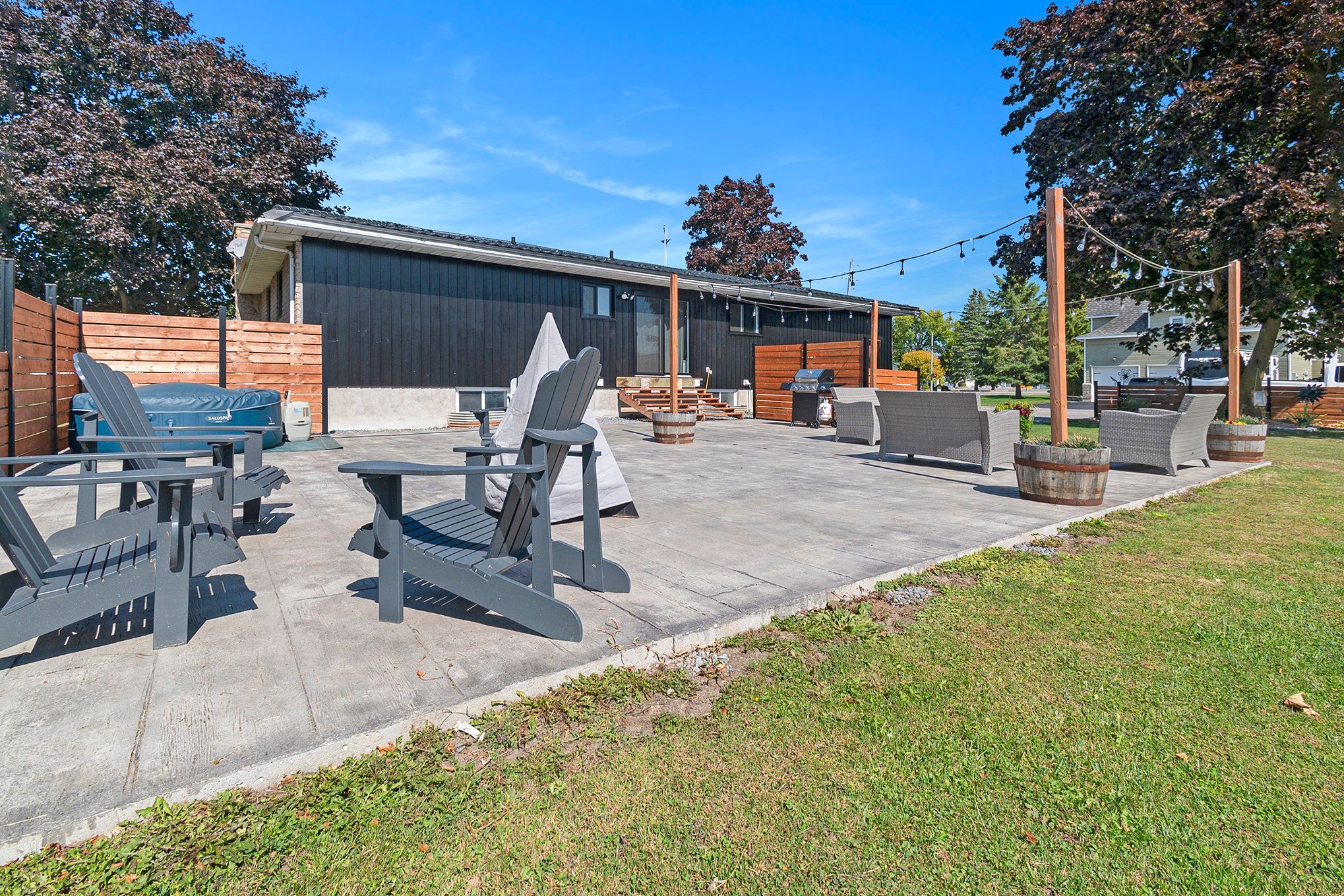 • Impressive backyard with a large patio, gazebo, and storage shed.
