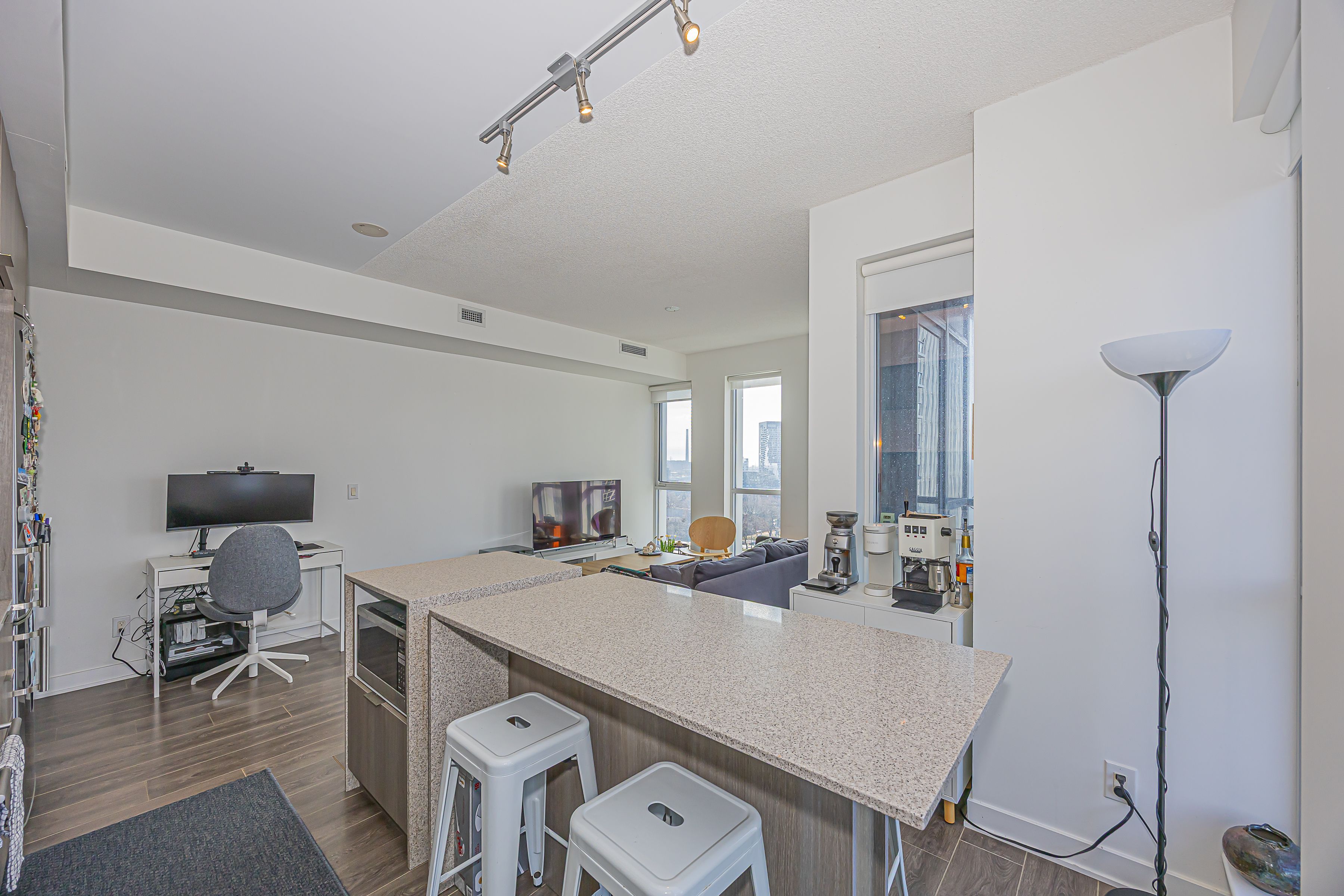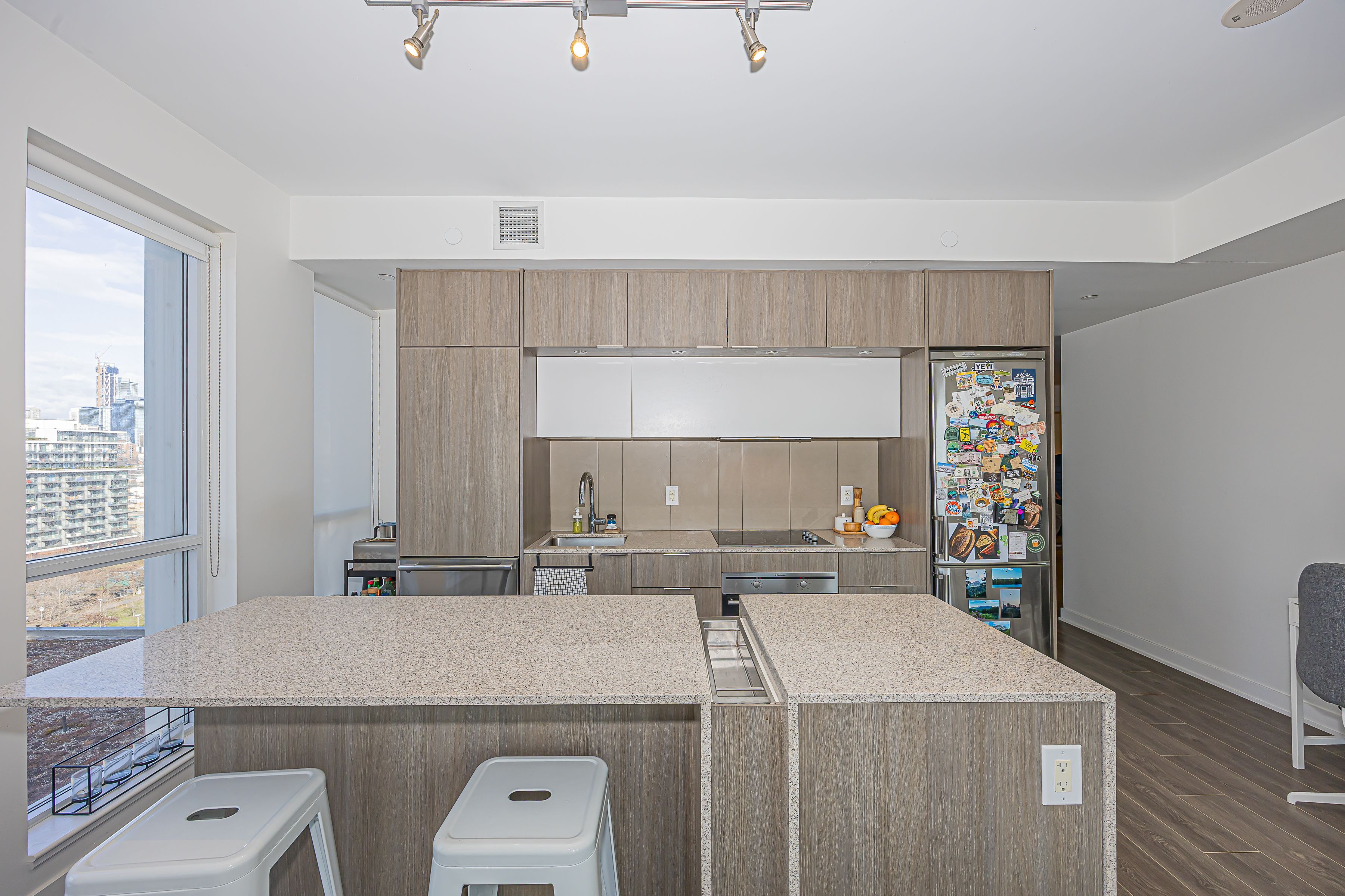 Welcome to this beautiful sun filled corner unit on the 12th floor at one park place north. The one-bedroom unit comes with 692 sqft + 59 sqft balcony = 751sqft. The south west facing spacious living and dining area and the large one bedroom with wrap around floor to ceiling windows are flooded with natural light and stunning day and night city views. Functional open concept layout featuring a modern kitchen with island, granite countertops, stainless steel appliances. The living and dining areas connect seamlessly, creating a comfortable space for everyday living and entertaining. Spacious bedroom, full bathroom, and a welcoming foyer with a large storage and coat closet add to the suite's practicality. The unit has been well maintained and move in ready with in suite stacked washer and dryer, all existing curtains and light fixtures, one underground parking space and one locker are also included. At one park place north, residents also enjoy exceptional amenities including a large fitness centre, yoga and pilates studio, squash courts, half court basketball gym, party room, billiards room, media room, rooftop terrace with bbq areas and gardening plots, guest suites, visitor parking, bike storage, 24-hour concierge, and security. Prime regent park location steps to parks, cafes, restaurants, community spaces, groceries, ttc, dvp and easy access to downtown. Ideal opportunity for families and investors, or anyone seeking a bright, efficient condo in a vibrant and connected neighbourhood.
