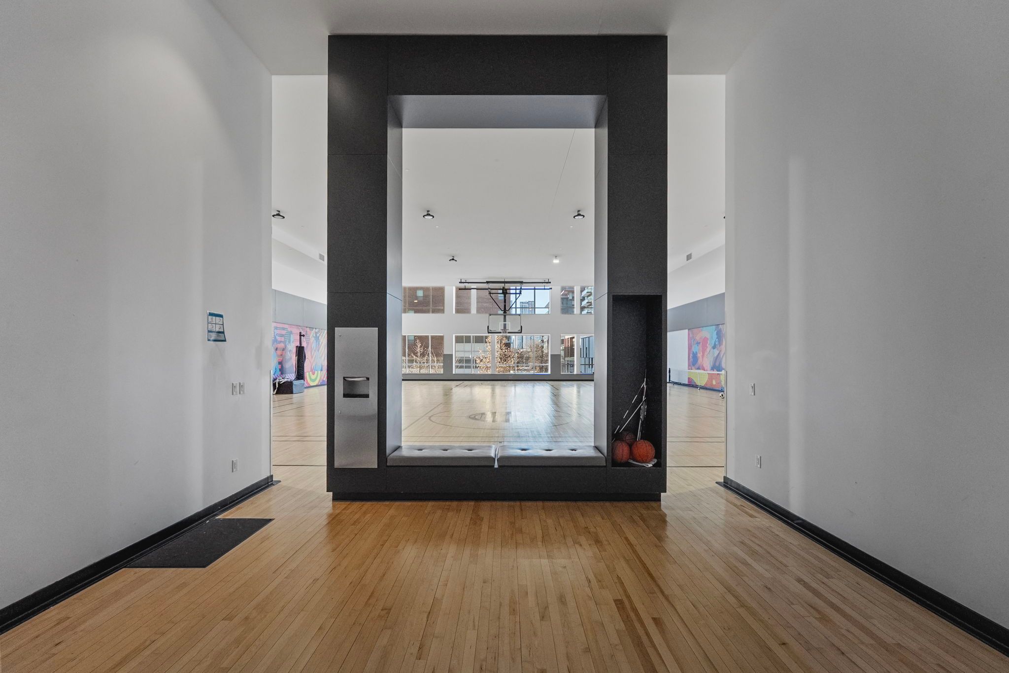 • Building amenities include gym, sports courts, yoga room, and visitor parking.