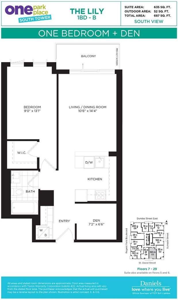 Welcome to one park place by daniels. Located in the exciting and transformed community of regent park. You're just steps to many new retailers and everyday essentials. Streetcar stop right outside the building. Minutes to dvp and bayview extension. This unit offers 635 sq ft interior space plus 52 sq ft outdoor space. Filled w/ natural light. Modern design and features. Ample kitchen storage and counter space. Enjoy an unobstructed south view that overlooks the lake and the city's skyline. Included are top tier amenities such as basketball court, squash court, full functional gym, theatre room, games room, modern party room and outdoor terrace w/ bbqs and cabanas. Professional swimming pool right across the street.