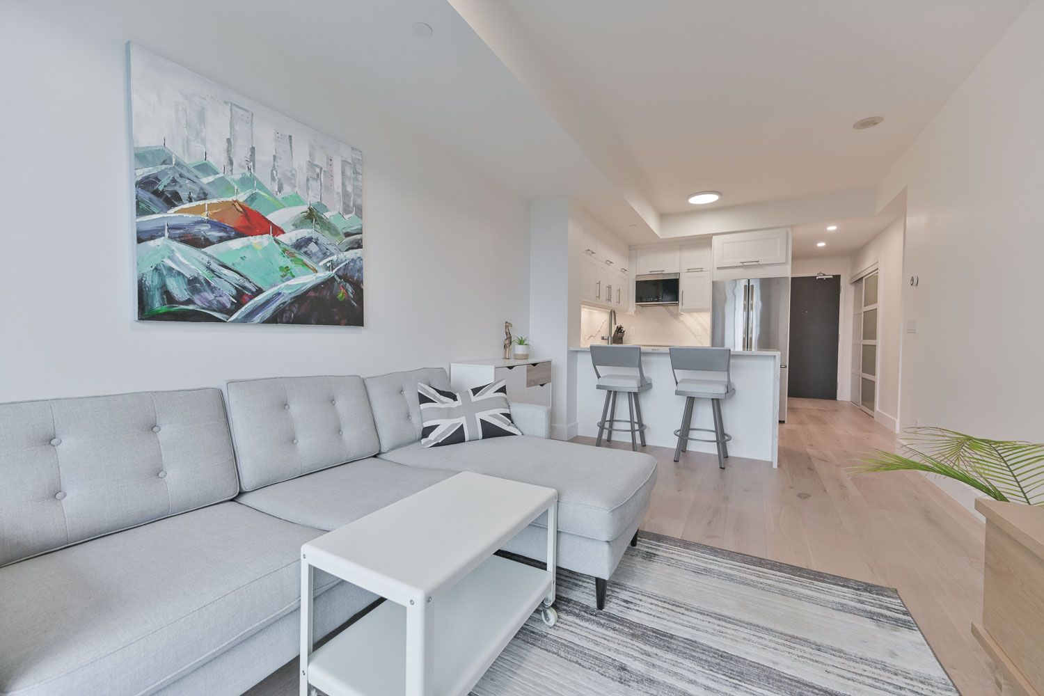 *** additional listing details - click brochure link *** welcome to unit 2303 at 170 sumach st - a stunning 1+1 bedroom + den suite offering sun-drenched, south-facing views of the lake and city skyline. Thoughtfully designed, this suite features a fully renovated kitchen with quartz countertops and full-size stainless steel appliances, a modern upgraded bathroom, and a custom walk-in closet - all complemented by elegant white oak engineered hardwood floors. Residents enjoy premium amenities including a full gym, basketball and squash courts, guest suites, theater room, party lounge, outdoor terrace with bbqs, secure bike storage, and 24-hour concierge service. The suite also includes a dedicated parking space and locker. Ideally located near corktown common, the distillery district, and transit, this home offers the best of urban living with comfort and style.
