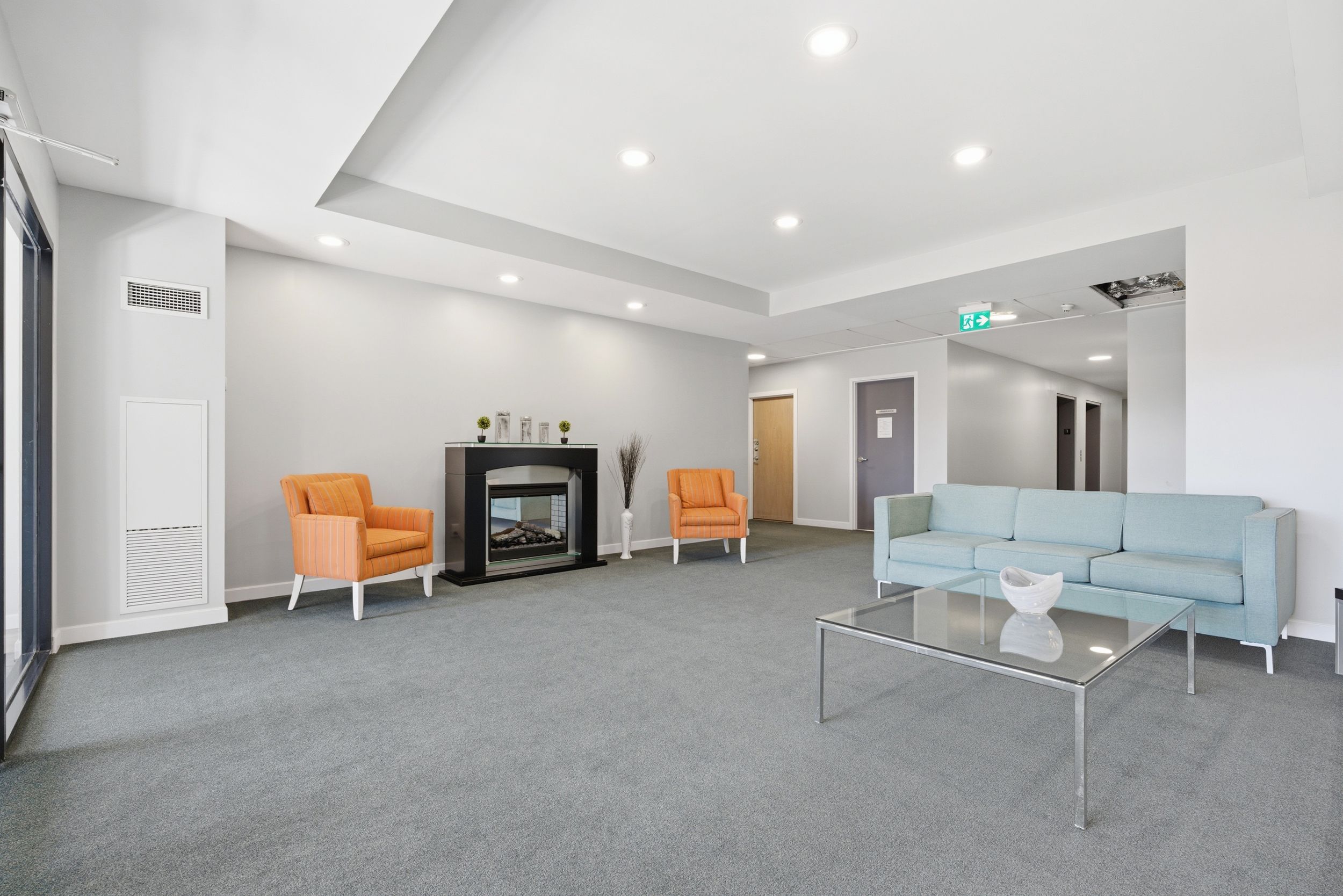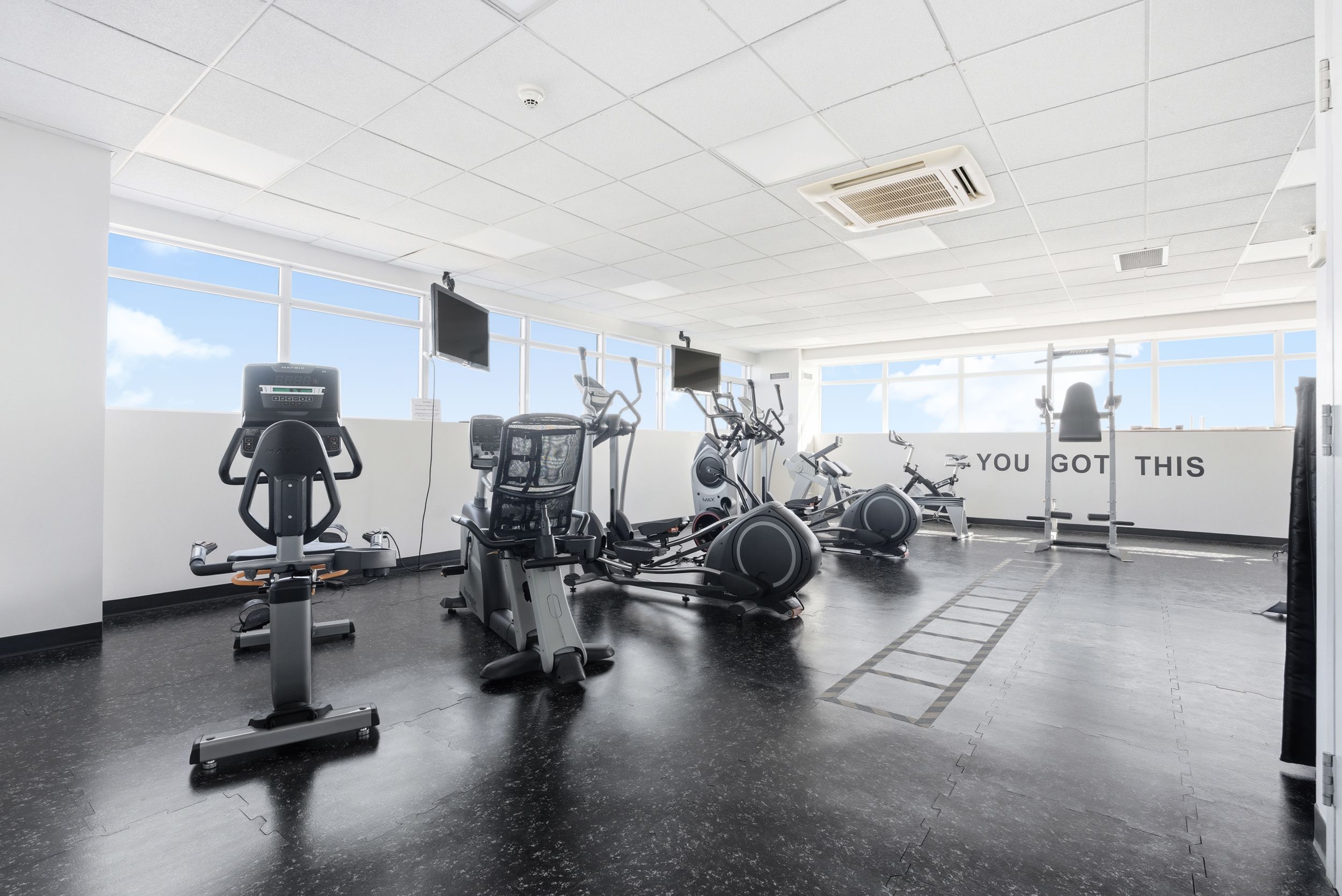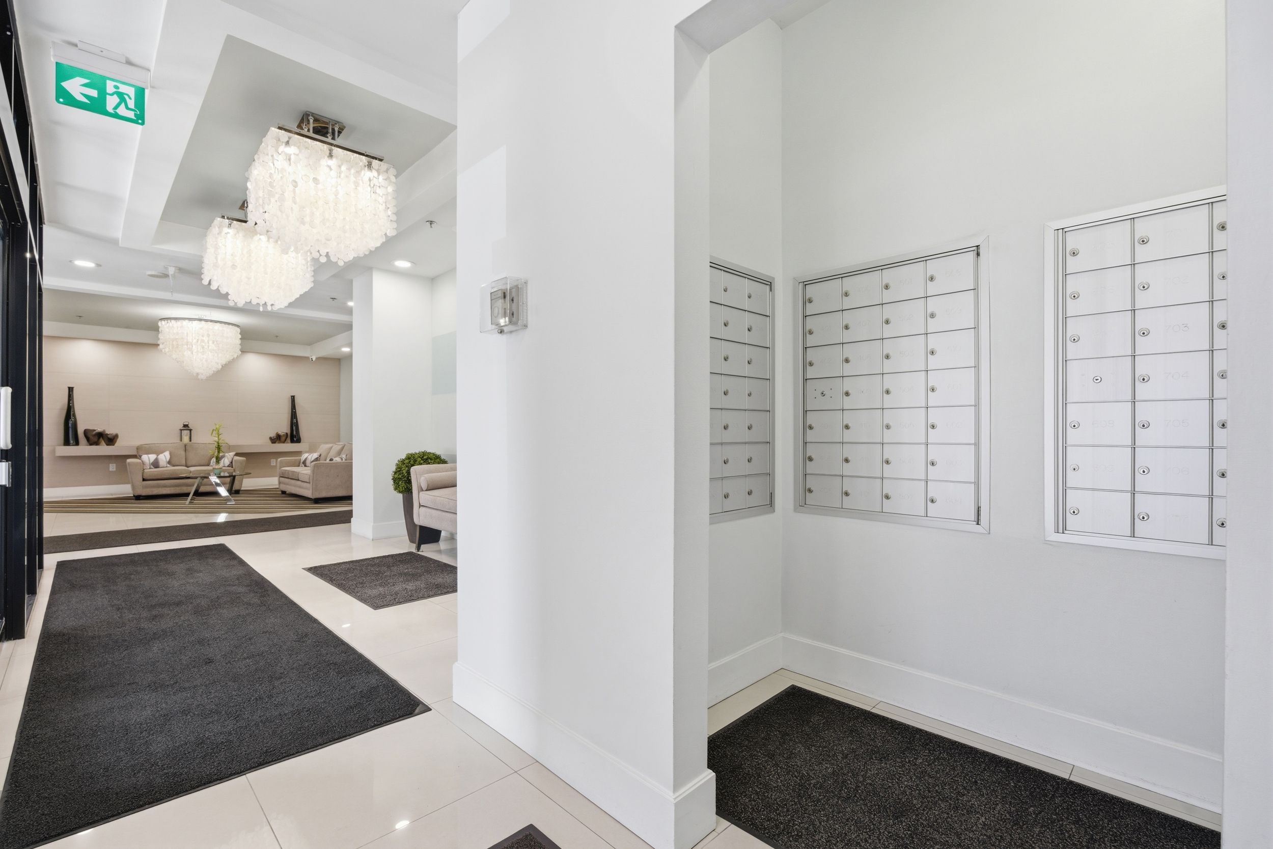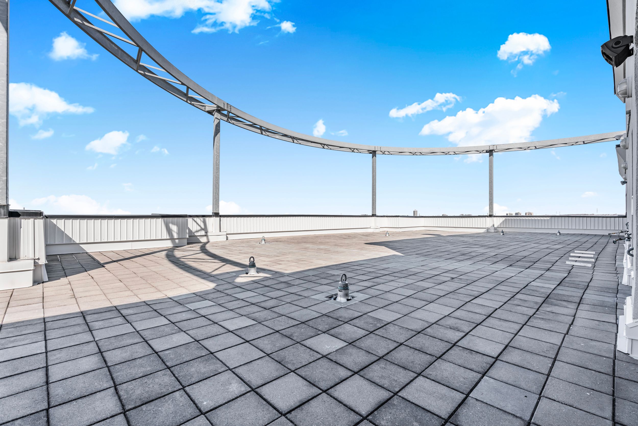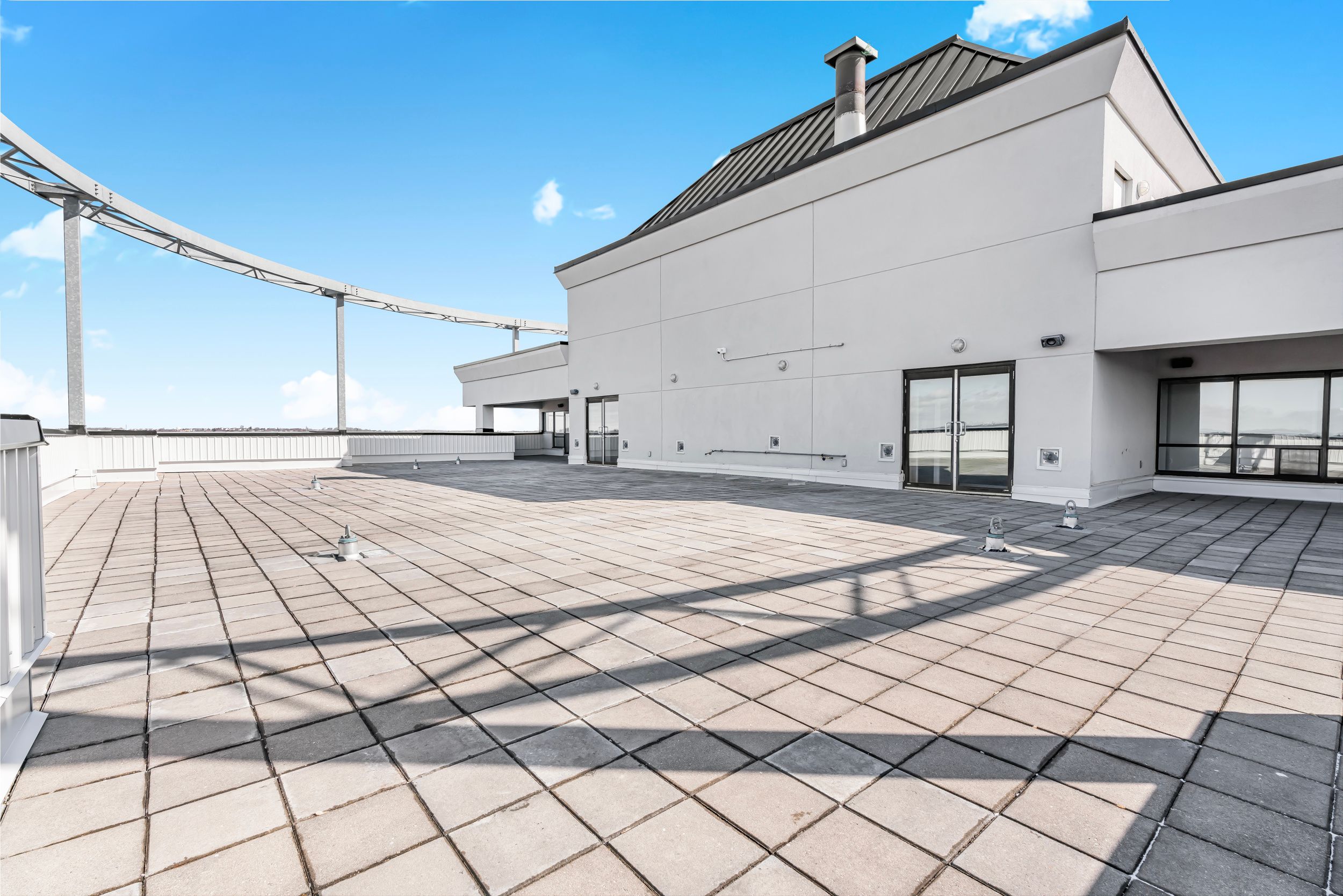 • Amenities include a fitness room, rooftop terrace, and secure entry.