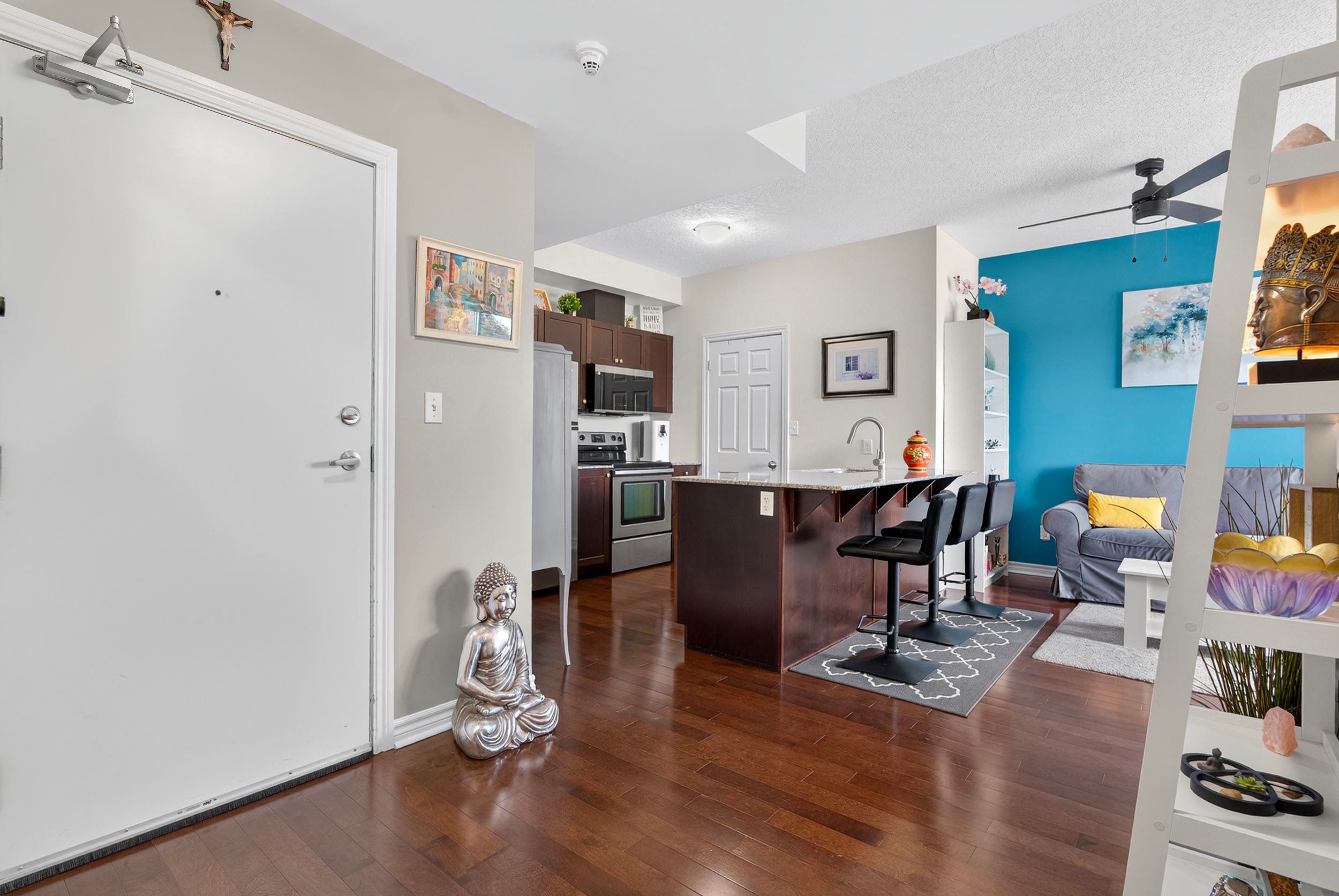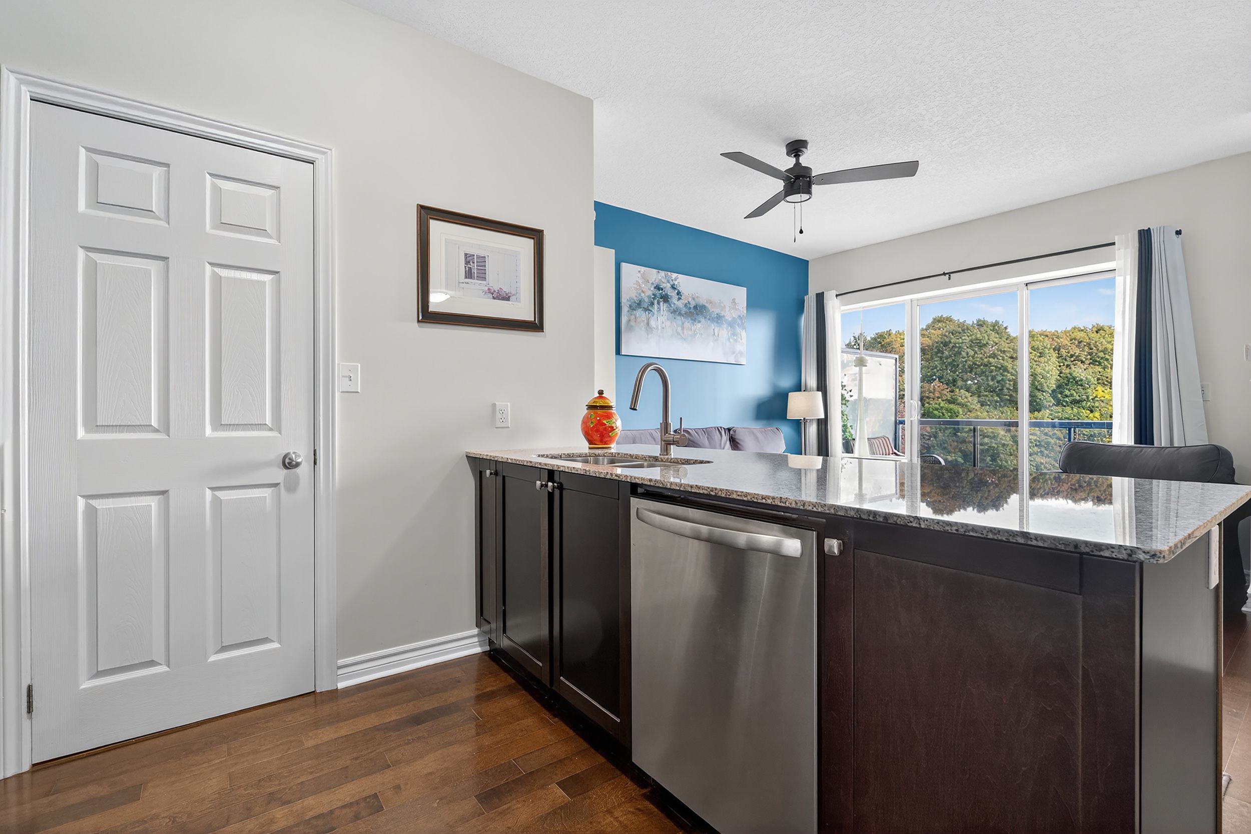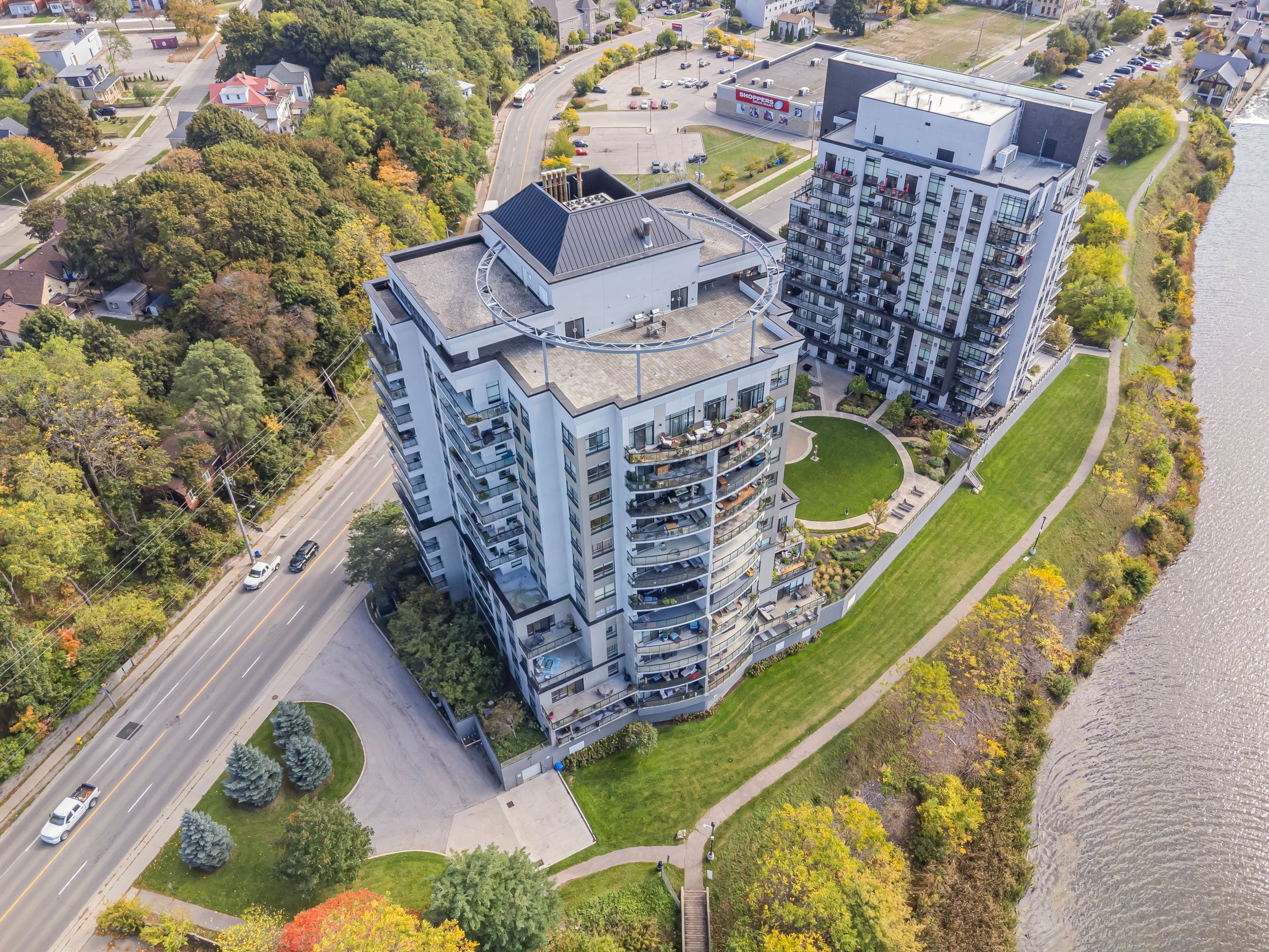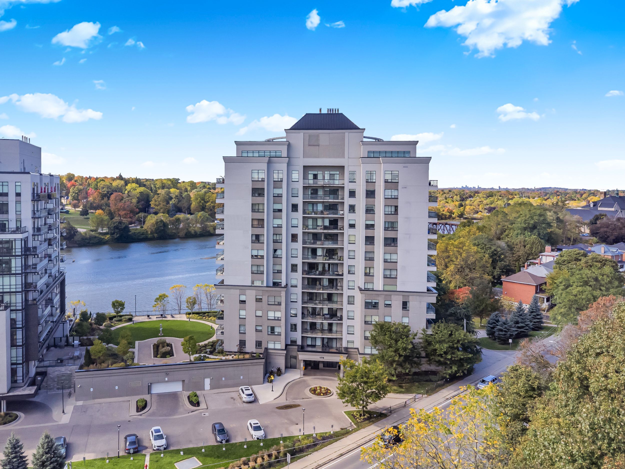 Stunning condo at waterscape on the grand river! This charming 2-bedroom unit is perfectly positioned along the grand river and just moments from historic downtown galt. Park your car in the secure underground garage and step into a lifestyle where everything is within walking distance. Scenic riverfront trails, boutique shops, fine dining, outdoor patios, and more. Designed for modern living, the open-concept layout is ideal for living your best life. Large sliding doors lead to a private, covered balcony, offering peaceful views and an extended outdoor living space. The bright kitchen features ample cabinetry, stainless steel appliances, and granite countertops, while the convenience of in-suite laundry makes daily living effortless. This well-maintained building offers secure entry, an owned parking space, and a dedicated storage locker. Residents also enjoy a fitness room and a stunning rooftop patio complete with gas bbqs, loungers, tables and breathtaking views of the riverfront. It's a perfect spot to unwind or host guests in a luxurious atmosphere. Live the urban riverside lifestyle just steps from everything downtown galt has to offer along the water. Book your private tour today and experience the best of cambridge condo living!