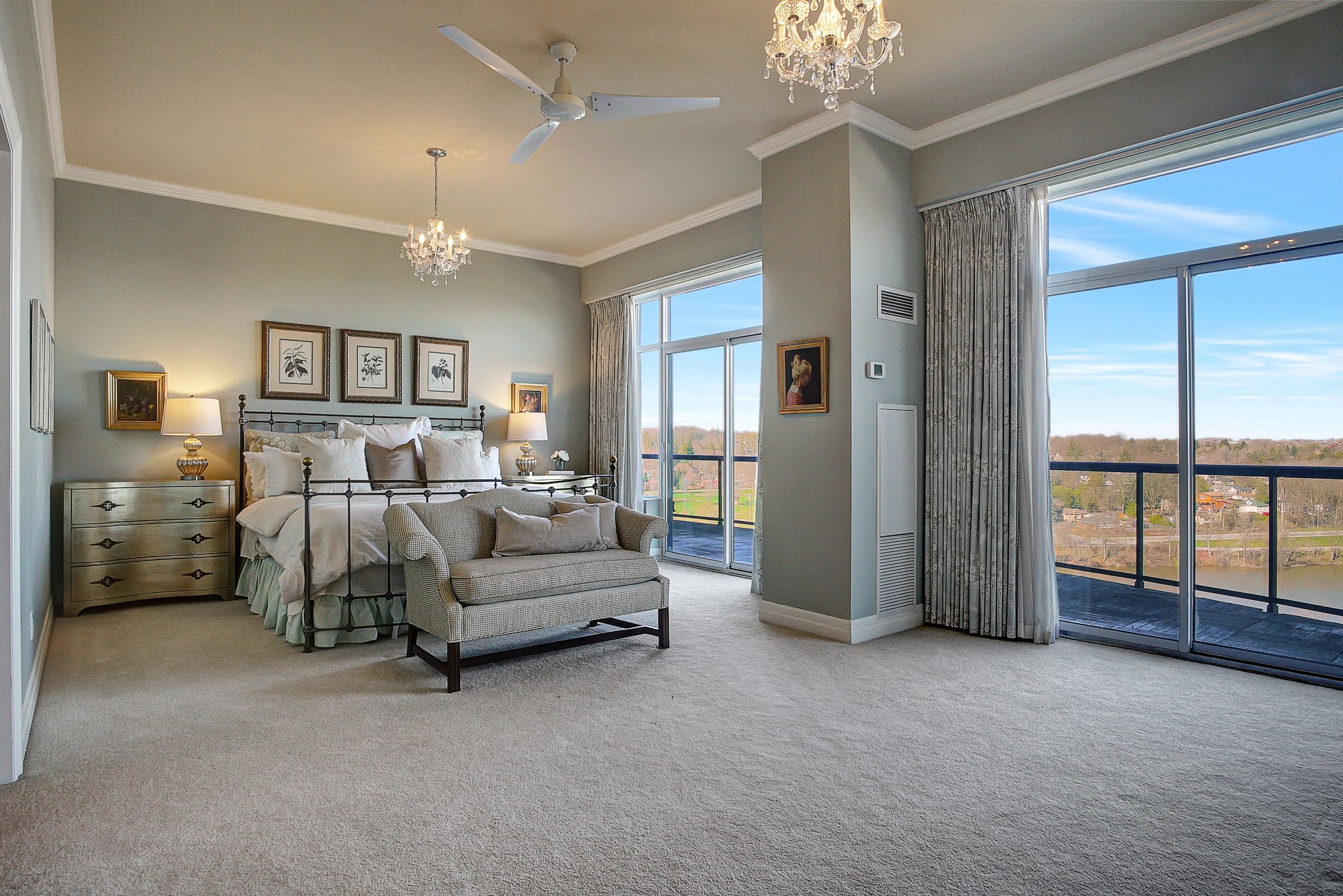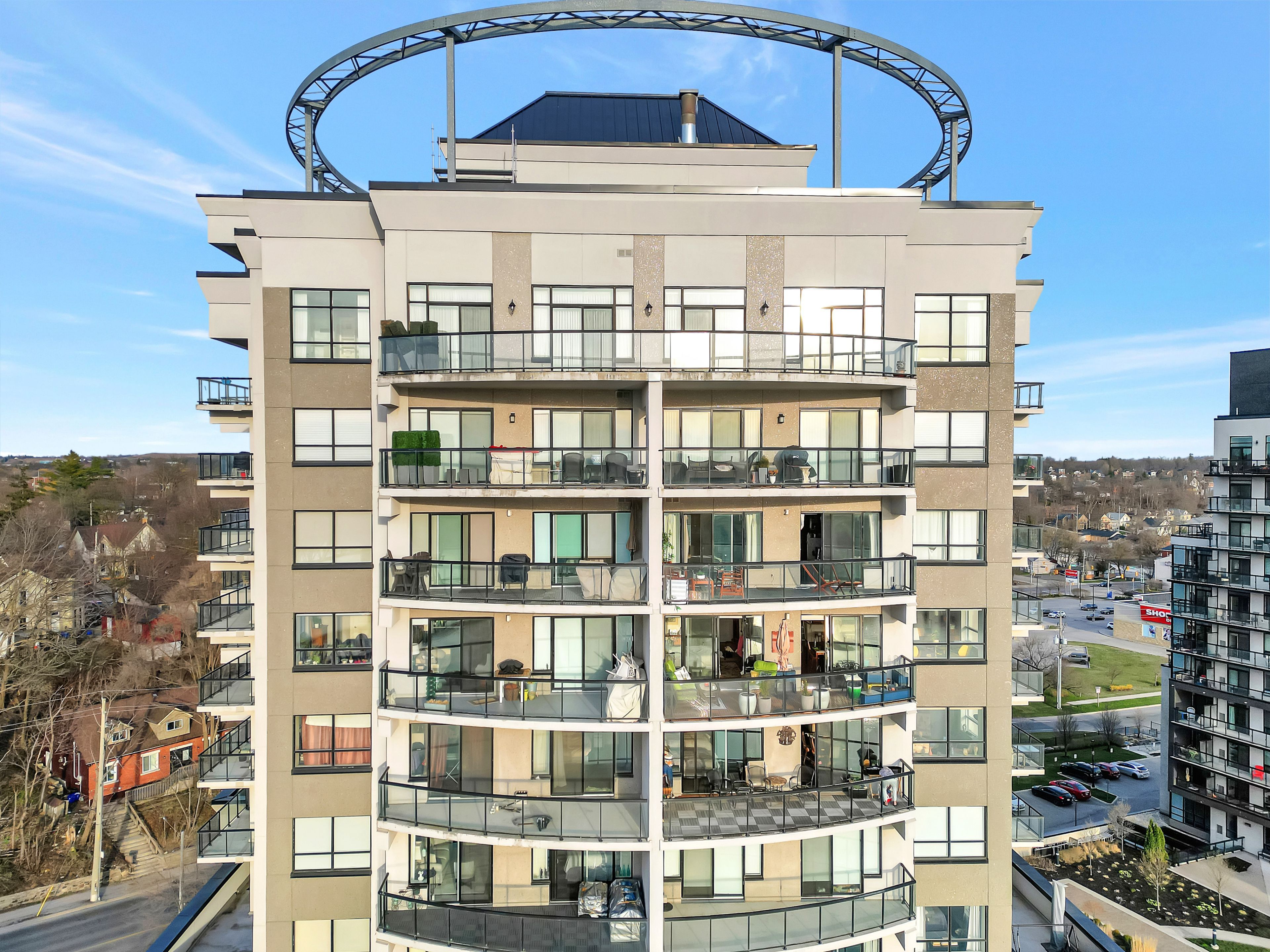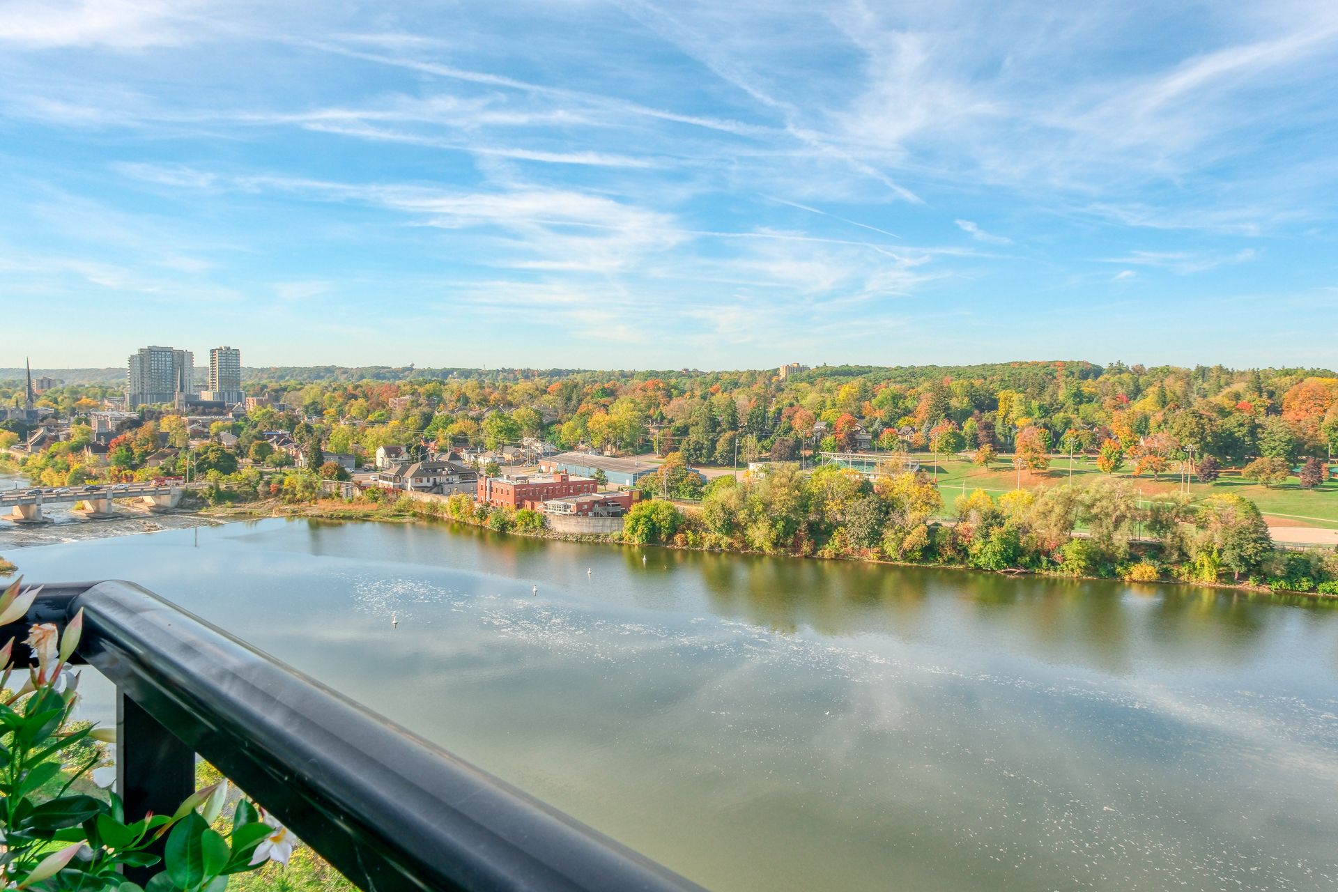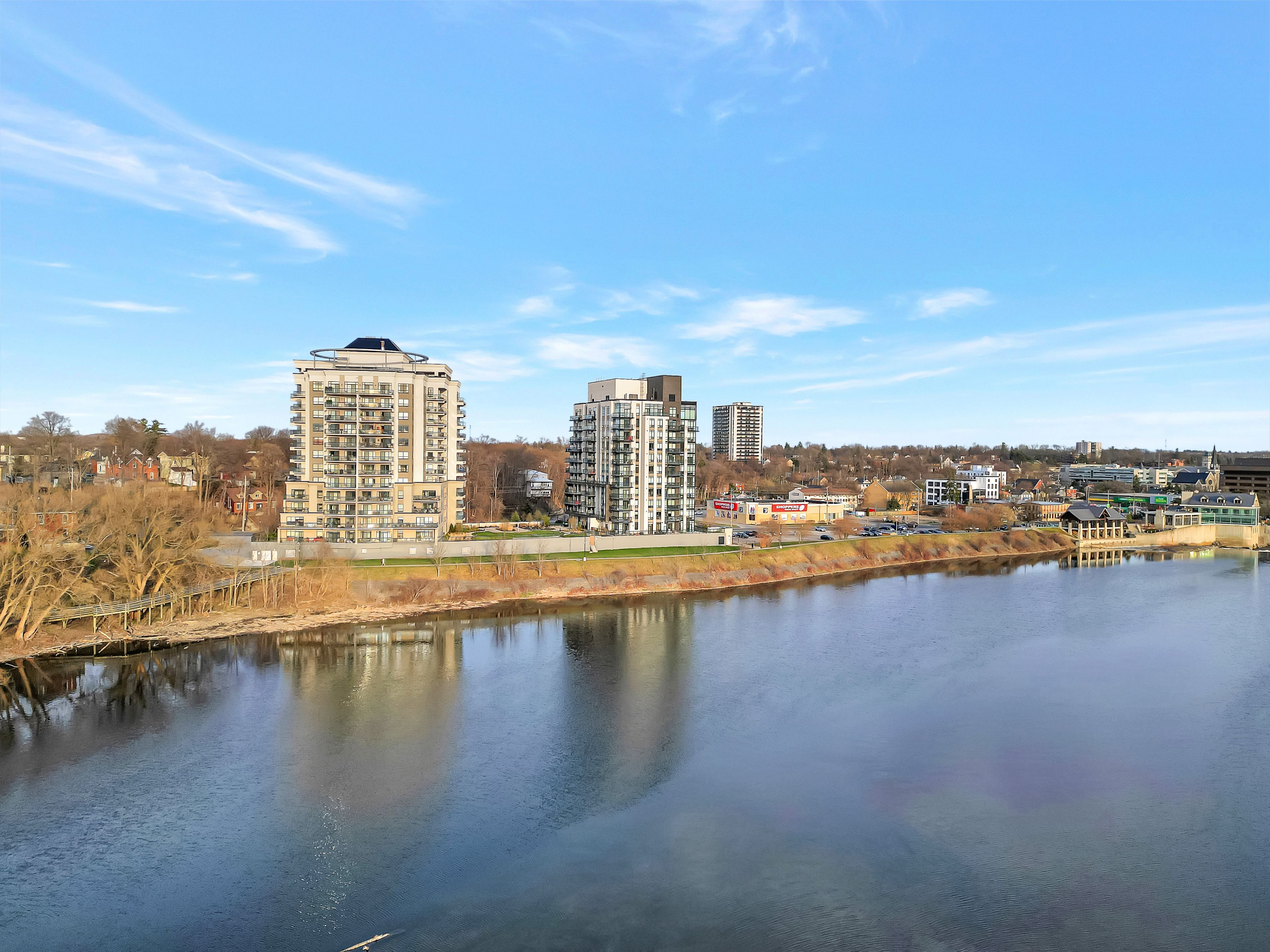 This one-of-a-kind luxury penthouse was custom designed to create nearly 3,000 sq. Ft. Of refined living space, offering the perfect blend of elegance, comfort, and panoramic river views. Every window frames a breathtaking view of the river, and a full-length terrace with multiple walkouts provides a front-row seat to spectacular sunsets. The expansive and light-filled living room features a gas fireplace, seamlessly flowing into a grand dining area perfect for hosting a dinner party or large family gathering. The chefs kitchen is beautifully renovated and thoughtfully designed, with seating for five and overlooks the family room. A separate den offers the ideal space for a home office, home theatre, or additional third bedroom. Perfect for entertainers, the butlers pantry includes its own entrance, doubling as a service or catering kitchen for seamless hosting. The primary suite is tucked away in its own private wing, showcasing luxurious penthouse glamour with floor-to-ceiling windows and a walkout to the terrace. A spacious walk-in closet functions as a full dressing room complete with a center island. The show-stopping ensuite features a soaking tub positioned to take in the sweeping river views. The second bedroom is generously sized and includes its own ensuite bath, offering comfort and privacy for guests or family. With two underground parking spaces and two private locker rooms, this is elevated condo living without compromise. Set in the heart of historic galt, you're just steps away from riverfront trails, fine dining at cambridge mill or langdon hall, the local farmer's market, and the vibrant gaslight district. A rare opportunity to live large in one of the regions most desirable settings.
