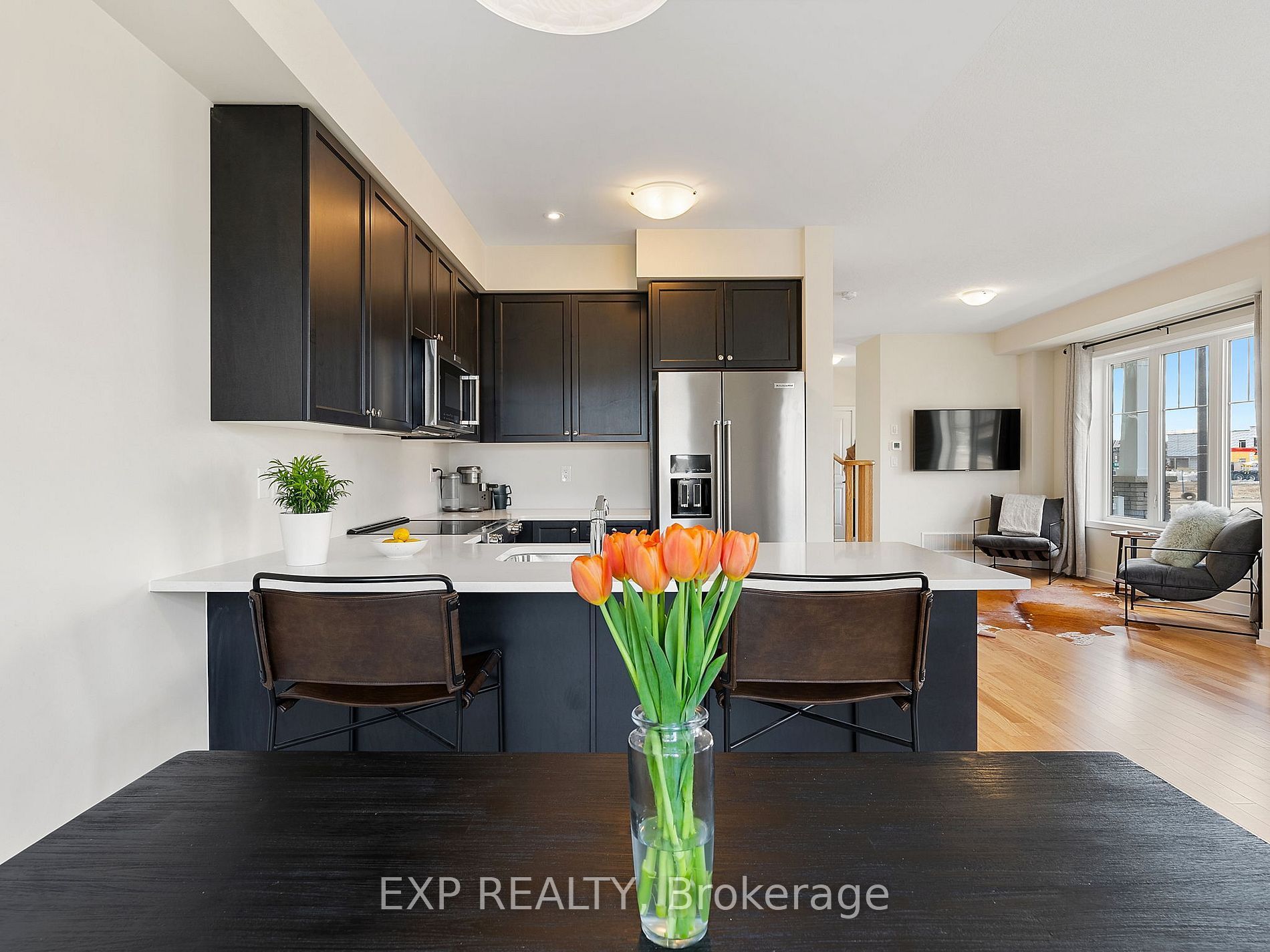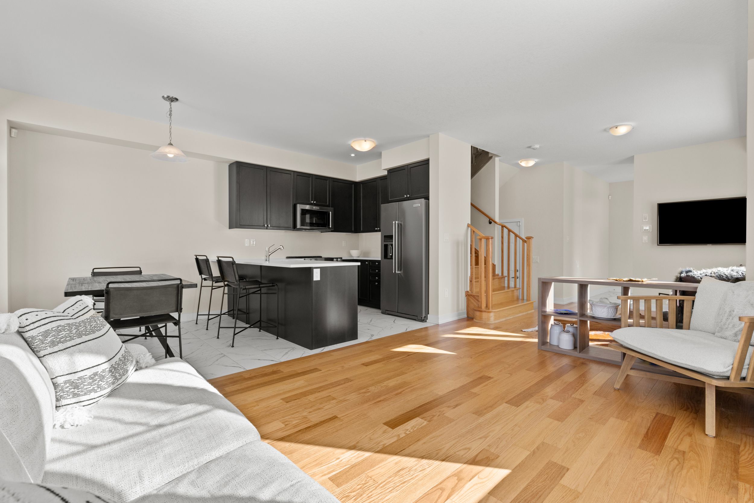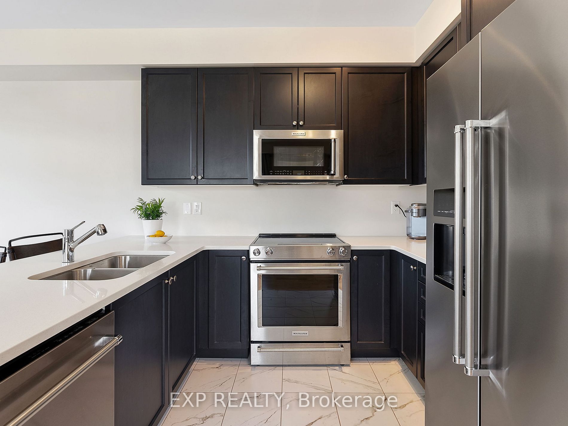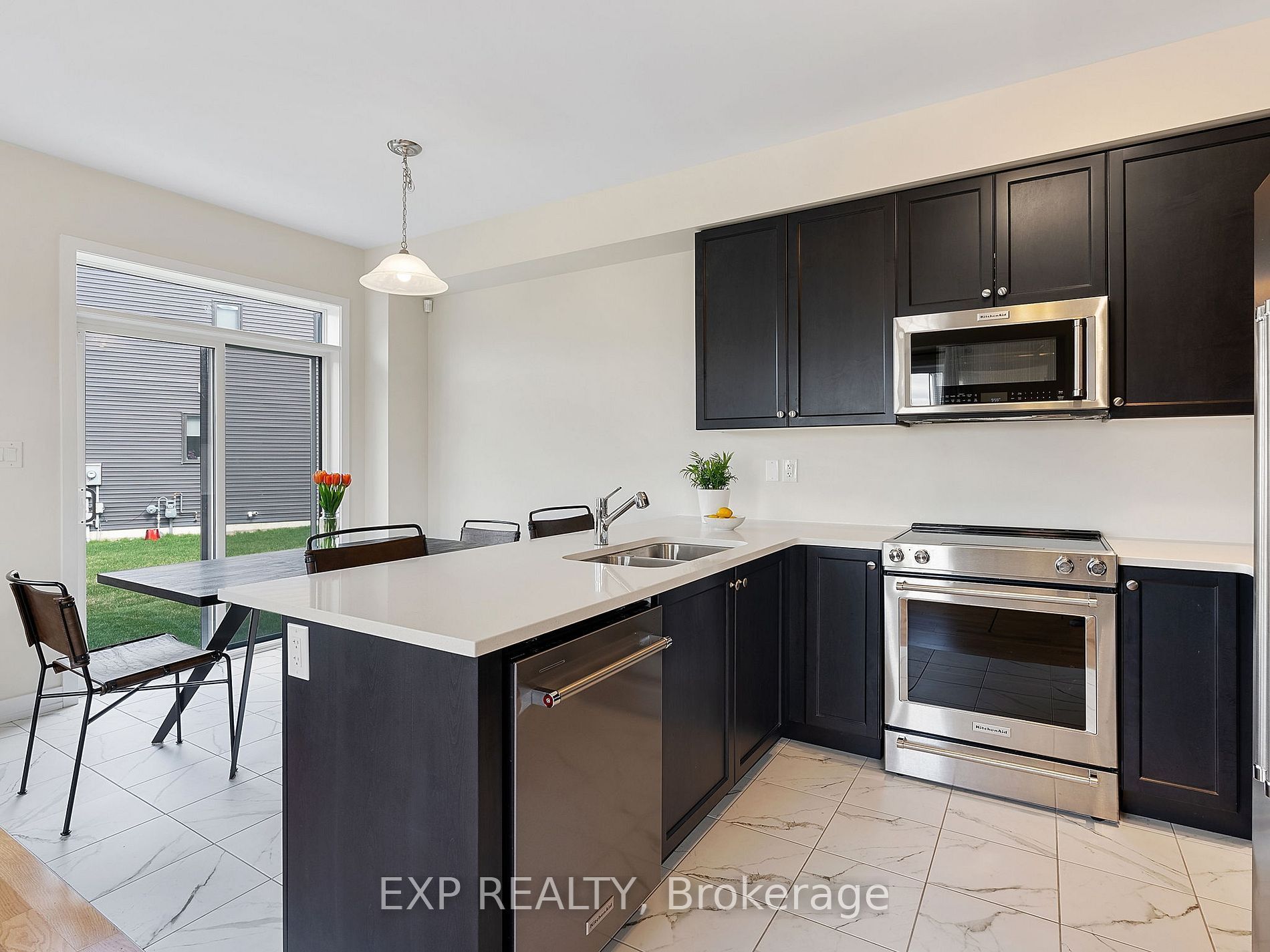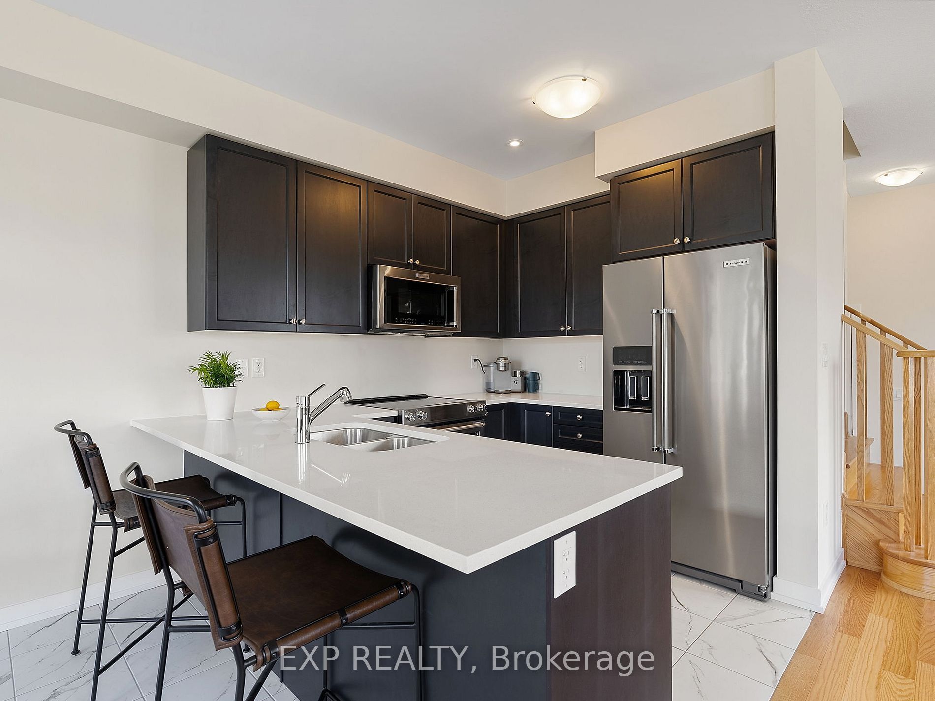 • Tasteful upgrades throughout, including quartz countertops and upgraded appliances.