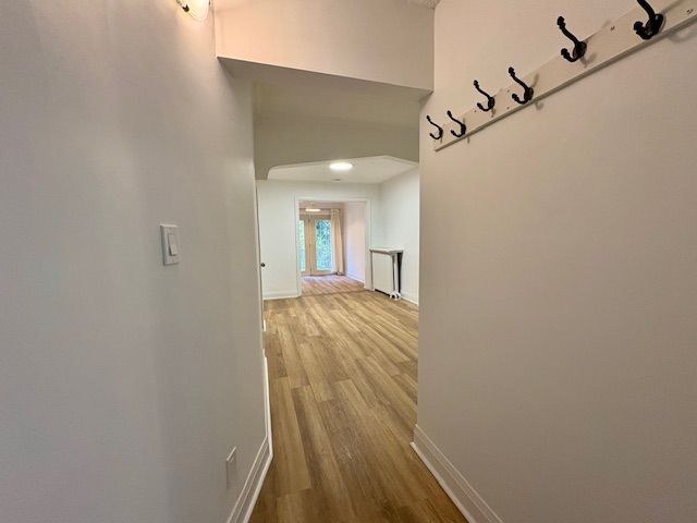 Step into freshly renovated comfort in this main-floor 2 bedrooms/1 bathroom suite set in the vibrant upper beaches/danforth neighbourhoods. Both bedrooms offer lots of natural light, closets, and sleek led upgrades, making every space feel bright and modern. Unwind in the spa-inspired 4pc bath, finished with bold black hardware and a vanity with concealed storage to keep everything effortlessly organized. The large open-concept living room flows into a dedicated dining area, where sliding patio doors open to your private rear deck overlooking a ravine-perfect for anyone craving a touch of nature without leaving the city. Enjoy 1-car front pad parking, in-suite laundry, for a truly turnkey lifestyle. Tenant pays hydro separately metered. Directly across from bowmore jr. & sr. Public school, you're steps to winter tobogganing hills, city recreation programs, no frills (5 minute walk), local restaurants, cafés, and easy access to the 24-ttc streetcar plus a one-bus hop to coxwell station (on bloor danforth subway line). Live with ease at #1700 ~ where comfort and convenience make every day feel brand-new.