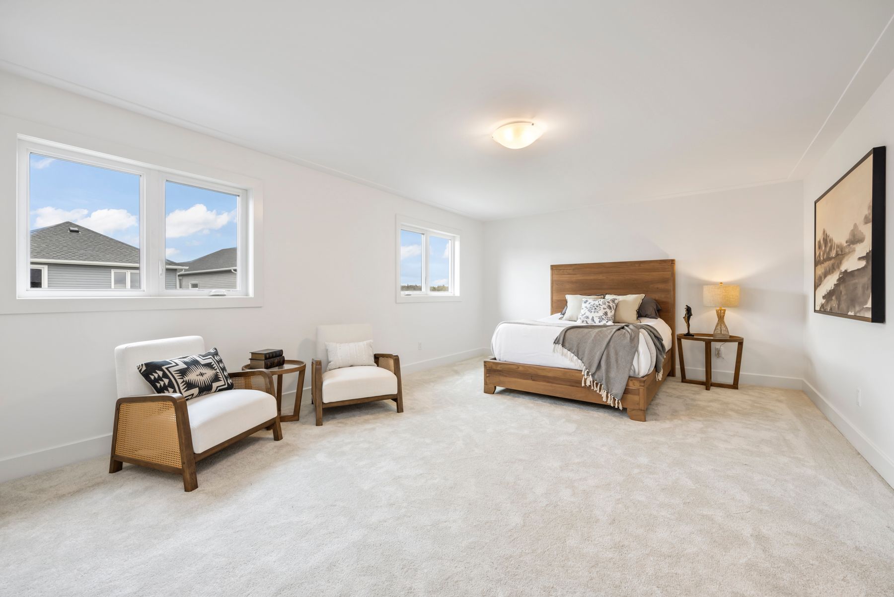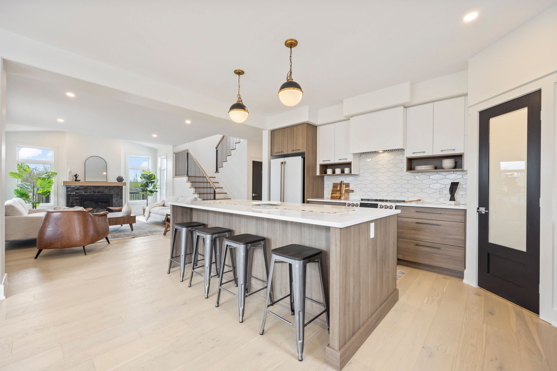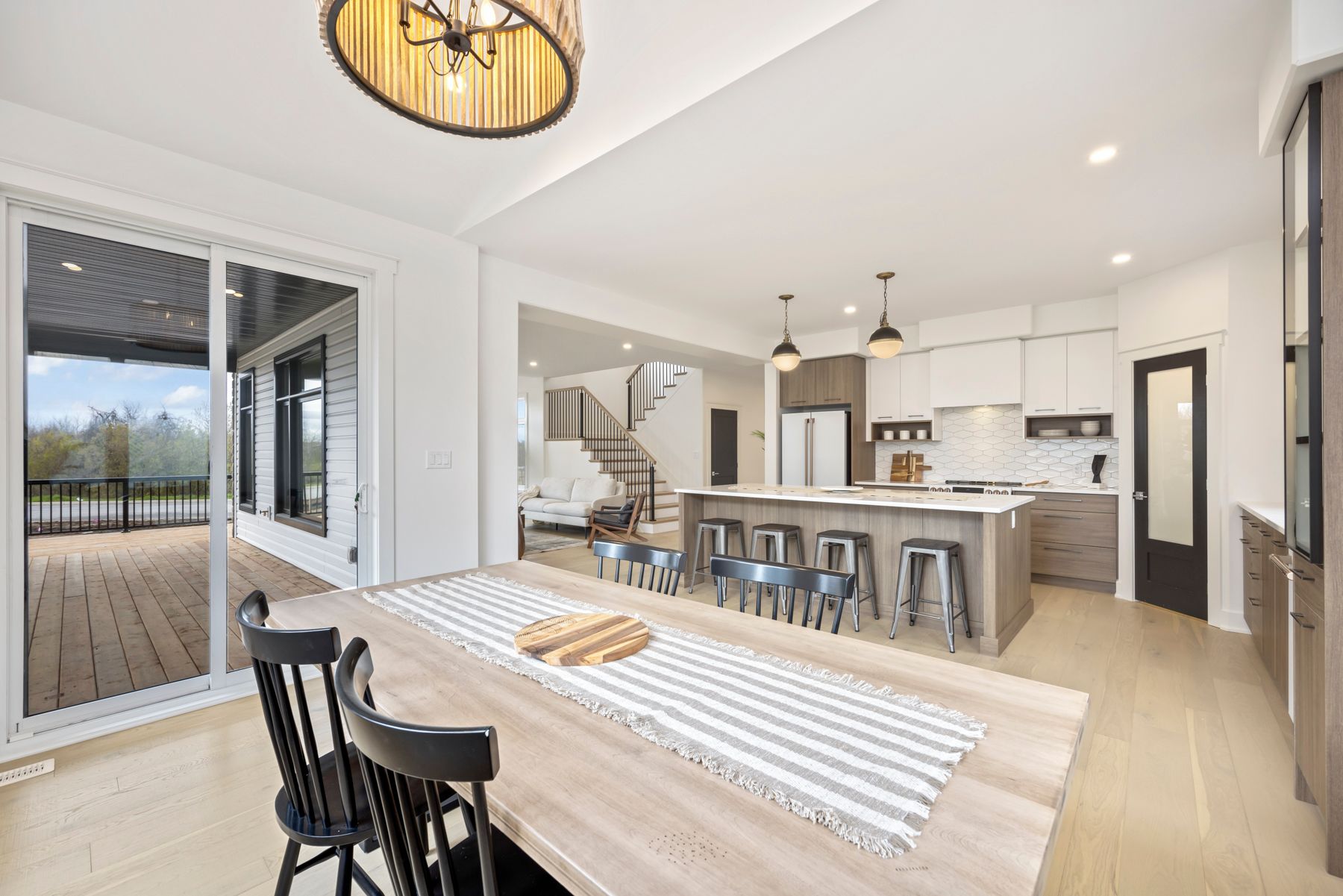 Now on the market for the first time! Welcome to this exceptional builder's model home. Perfectly positioned on a spacious corner lot overlooking greenspace, & nestled on what many consider the most desirable street in the subdivision, this home is a true standout. Every inch of this property has been upgraded with thoughtful design & premium finishes. From the moment you step inside, you'll notice the warmth of engineered hardwood & tile flooring flowing thru-out the main level. The layout is both functional & flexible, offering a formal living room that easily transforms into a home office or formal dining space depending on your needs. At the heart of the home is an expansive great room with a cozy gas fireplace, seamlessly connected to the stunning kitchen. Designed for both entertaining & everyday living, the kitchen boasts an 8-foot island, walk-in pantry, custom display cabinets all overlooking a bright dining area wrapped in windows. A patio door leads you to a wraparound covered deck-perfect for enjoying morning coffee or evening drinks while taking in the view of the greenspace to the east. The main floor also features a practical mudroom/laundry area, complete with a walk-in closet. A stylish two-piece bath completes the main floor. Upstairs, the primary suite is a peaceful retreat, offering a spacious walk-in closet with built-in organizers and a luxurious five-piece ensuite with double sinks, an oversized vanity, freestanding tub, and a custom glass shower built for two. Three additional generously sized bedrooms & a well-appointed four-piece bath make the upper level complete. The lower level is an open canvas with over 9-foot ceilings & a bathroom rough-in-ready for your future vision, whether it's a home gym, media room, or in-law suite. Outside, the professionally landscaped yard includes a lawn sprinkler system, and the premium corner lot offers both privacy and curb appeal. This one-of-a-kind home delivers comfort, style, & location all in one.