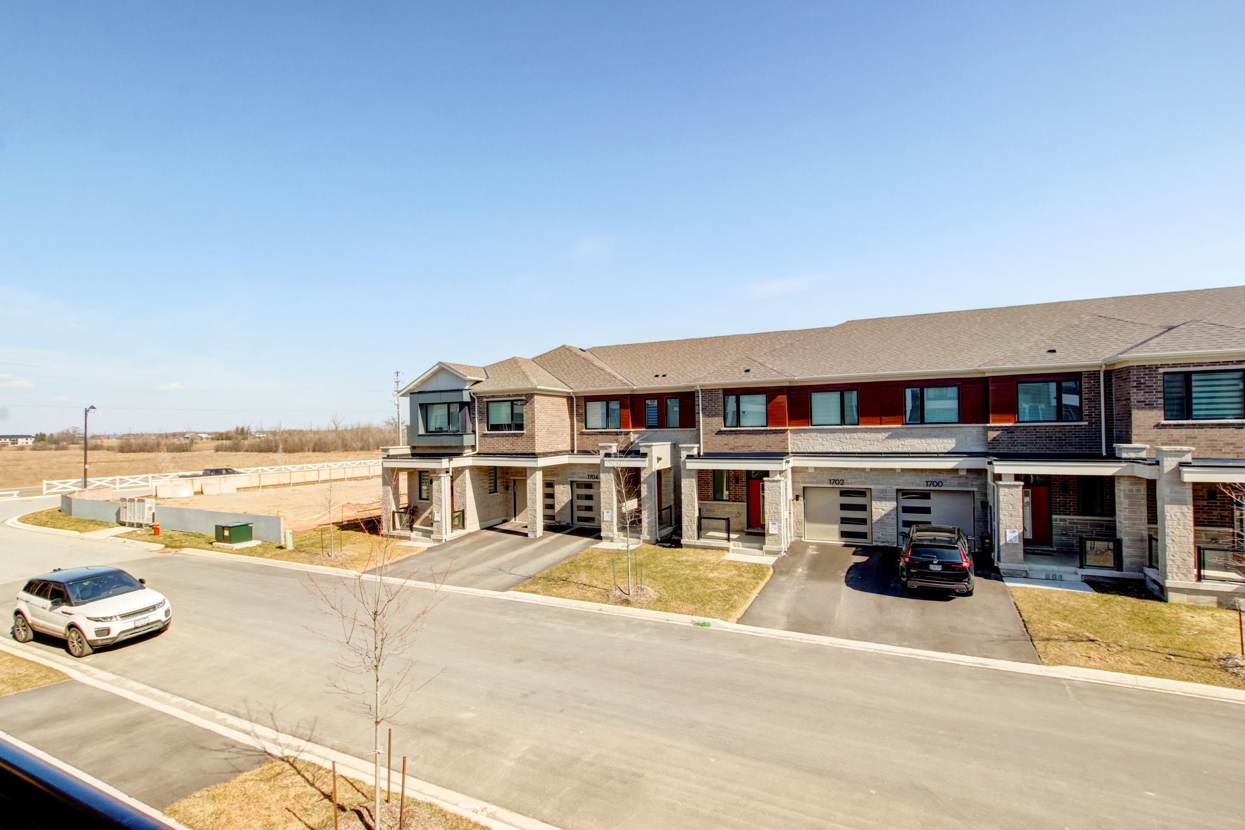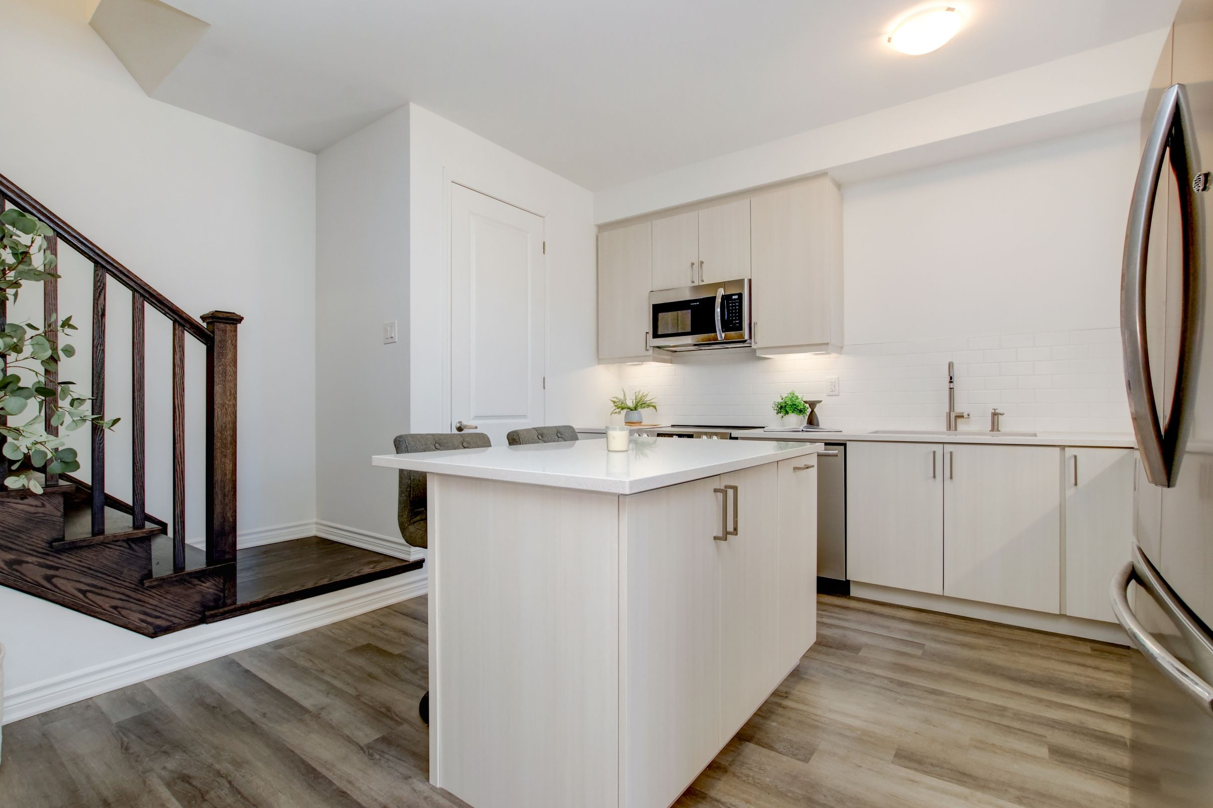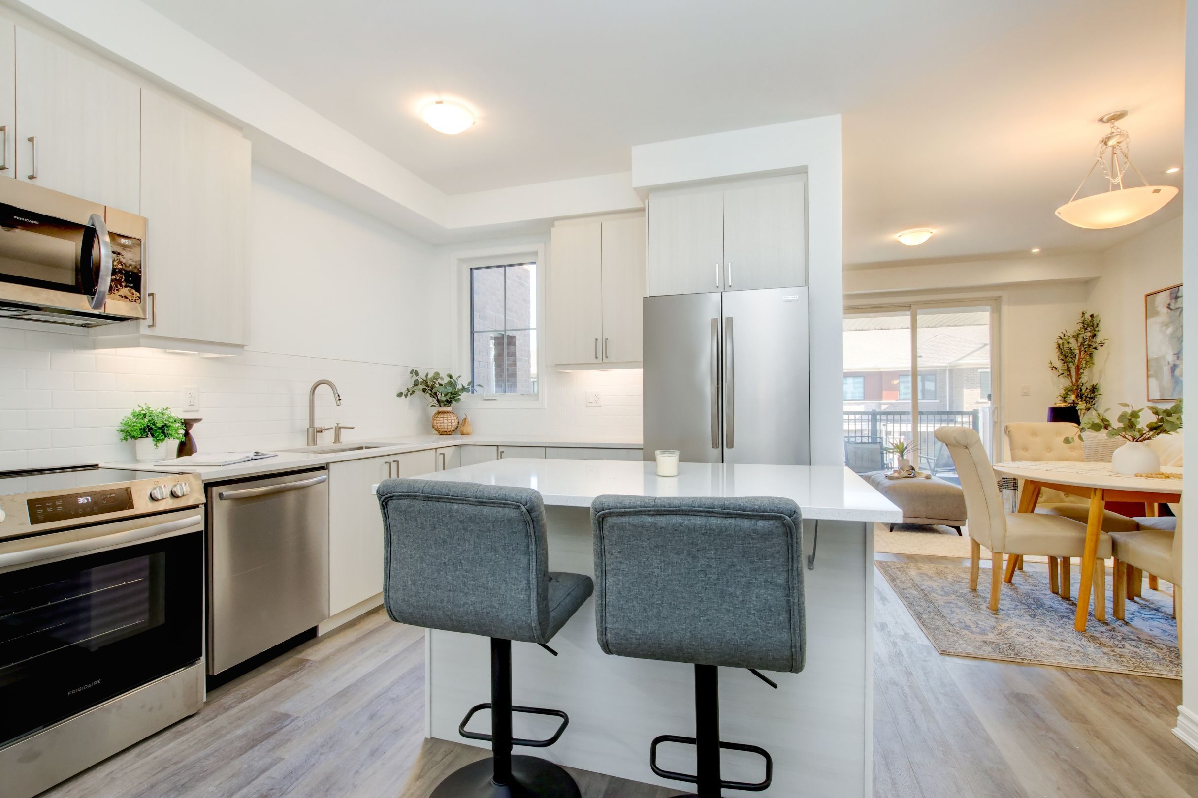 Impeccable and move-in ready! This 2 year old trendy freehold mattamy townhome is situated on a quiet court in east milton. Modern kitchen boasts stainless steel appliances, quartz countertops, tile backsplash and island/breakfast bar. Dining room and family room lead to a spacious balcony; a great flow for entertaining. The hardwood staircase leads to a spacious upper level with 3 spacious bedrooms including a primary with 3pc ensuite bath (seamless glass shower) and juliette balcony. Totally carpet free and well cared for home, owned tankless water heater. Great location for young families and commuters. Just minutes to the 401, 407, milton go station, parks, schools, supermarkets, and shopping.