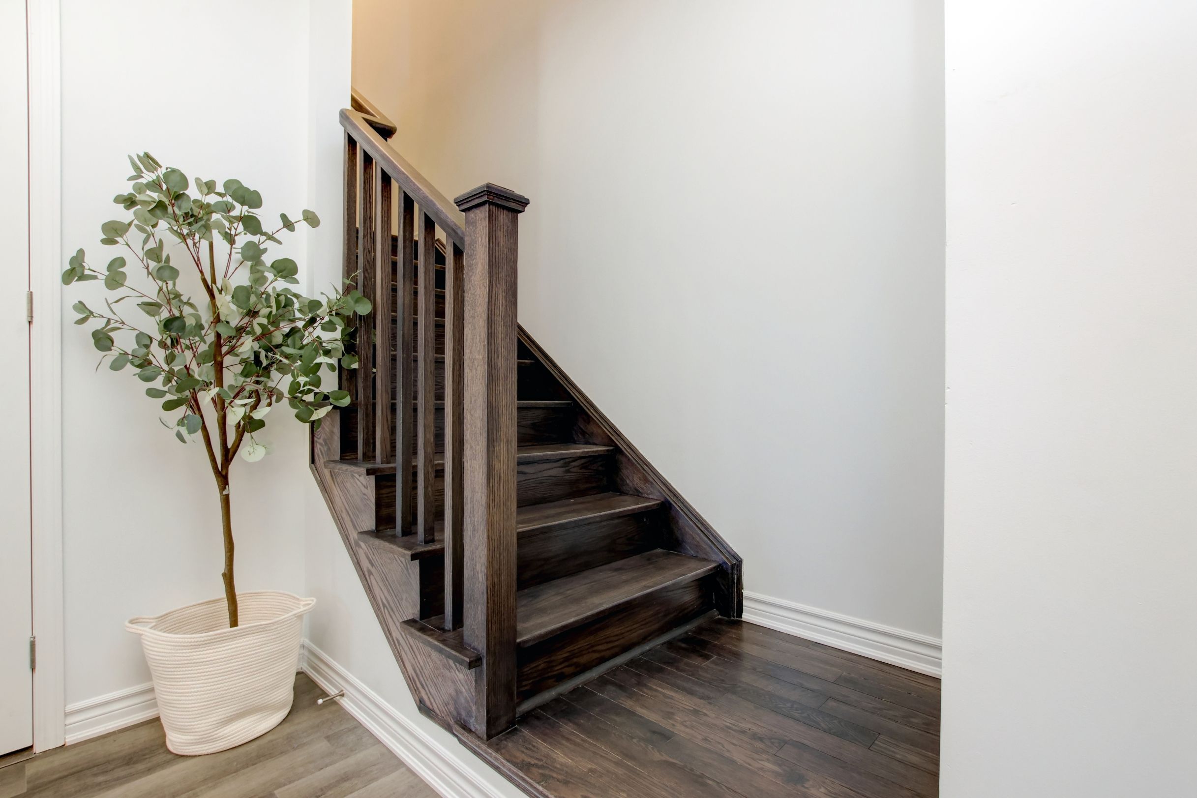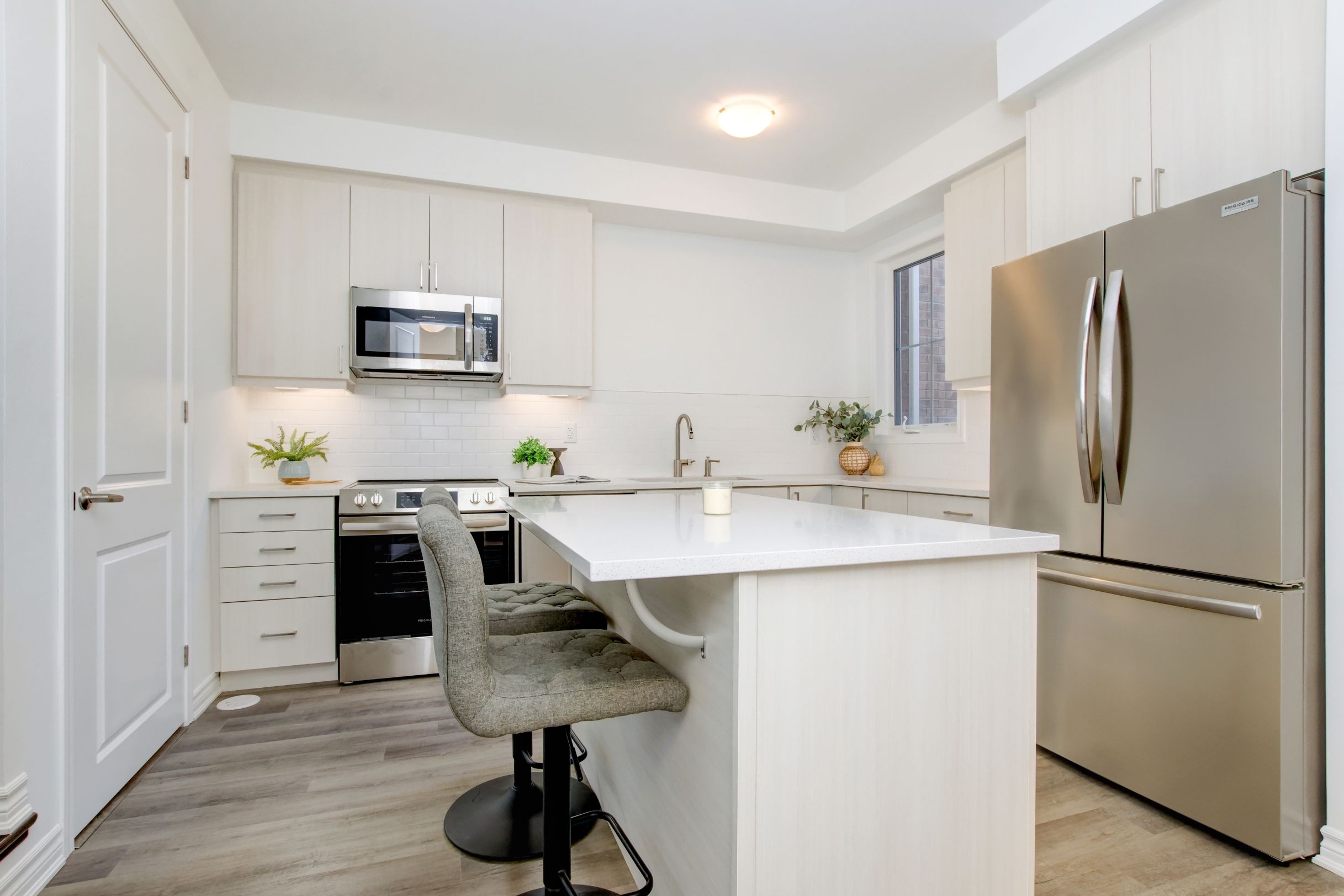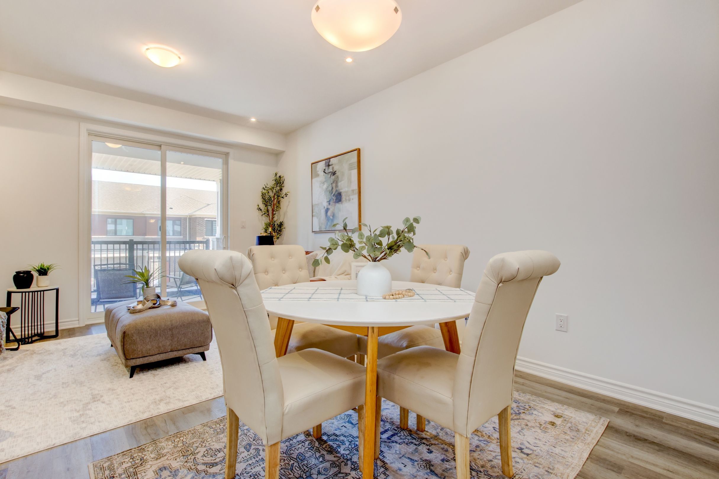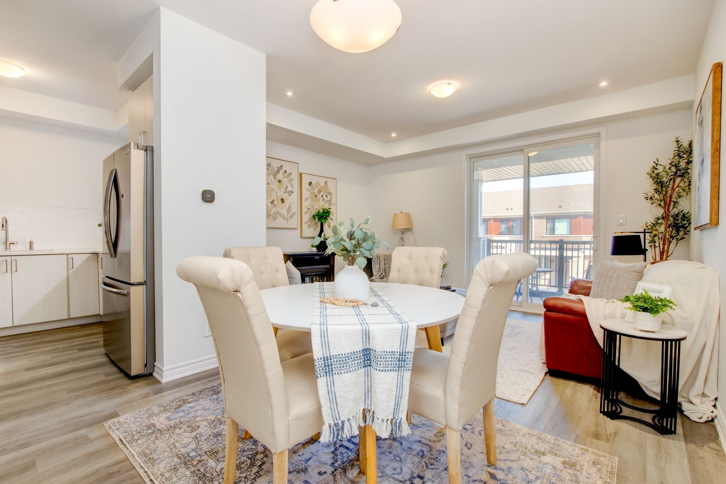 Impeccable and move-in ready! This 2 year old trendy freehold mattamy townhome is situated on a quiet court in east milton. Modern kitchen boasts stainless steel appliances, quartz countertops, tile backsplash and island/breakfast bar. Dining room and family room lead to a spacious balcony; a great flow for entertaining. The hardwood staircase leads to a spacious upper level with 3 spacious bedrooms including a primary with 3pc ensuite bath (seamless glass shower) and juliette balcony. Totally carpet free and well cared for home, owned tankless water heater. Great location for young families and commuters. Just minutes to the 401, 407, milton go station, parks, schools, supermarkets, and shopping.
