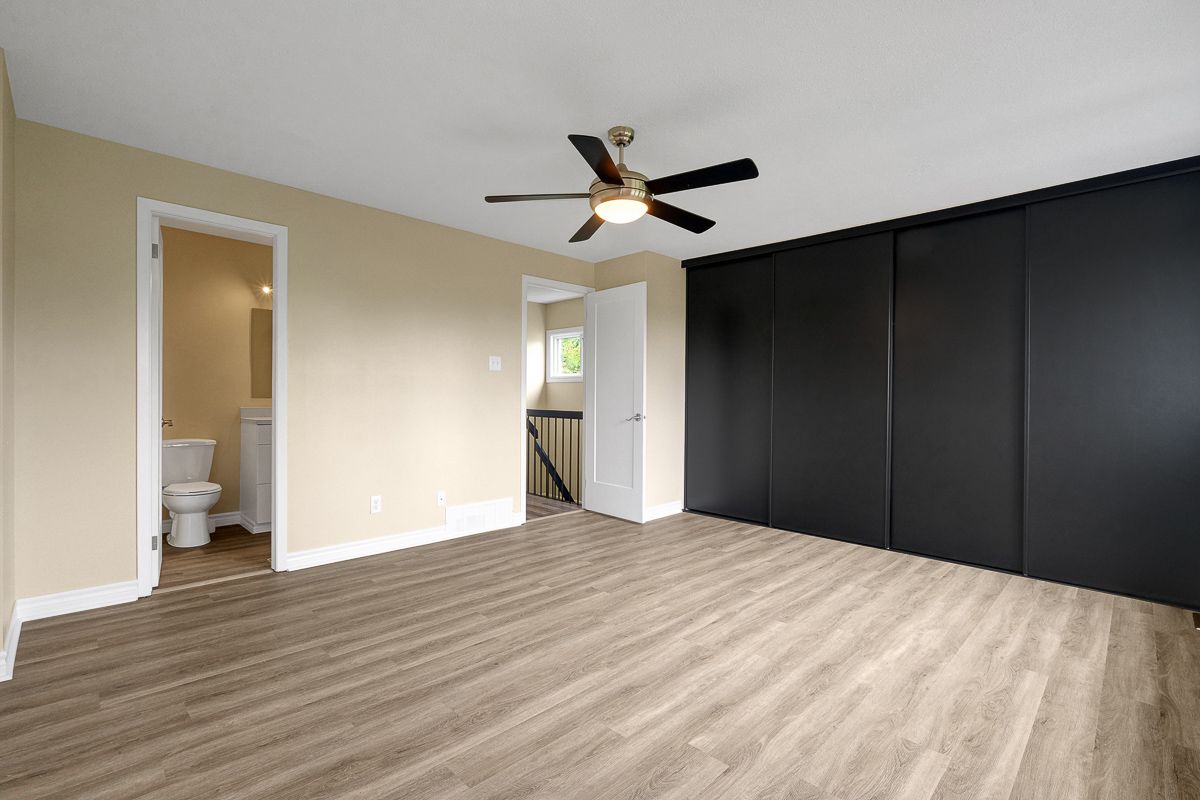 • Large primary bedroom with natural light and wall-to-wall closet.