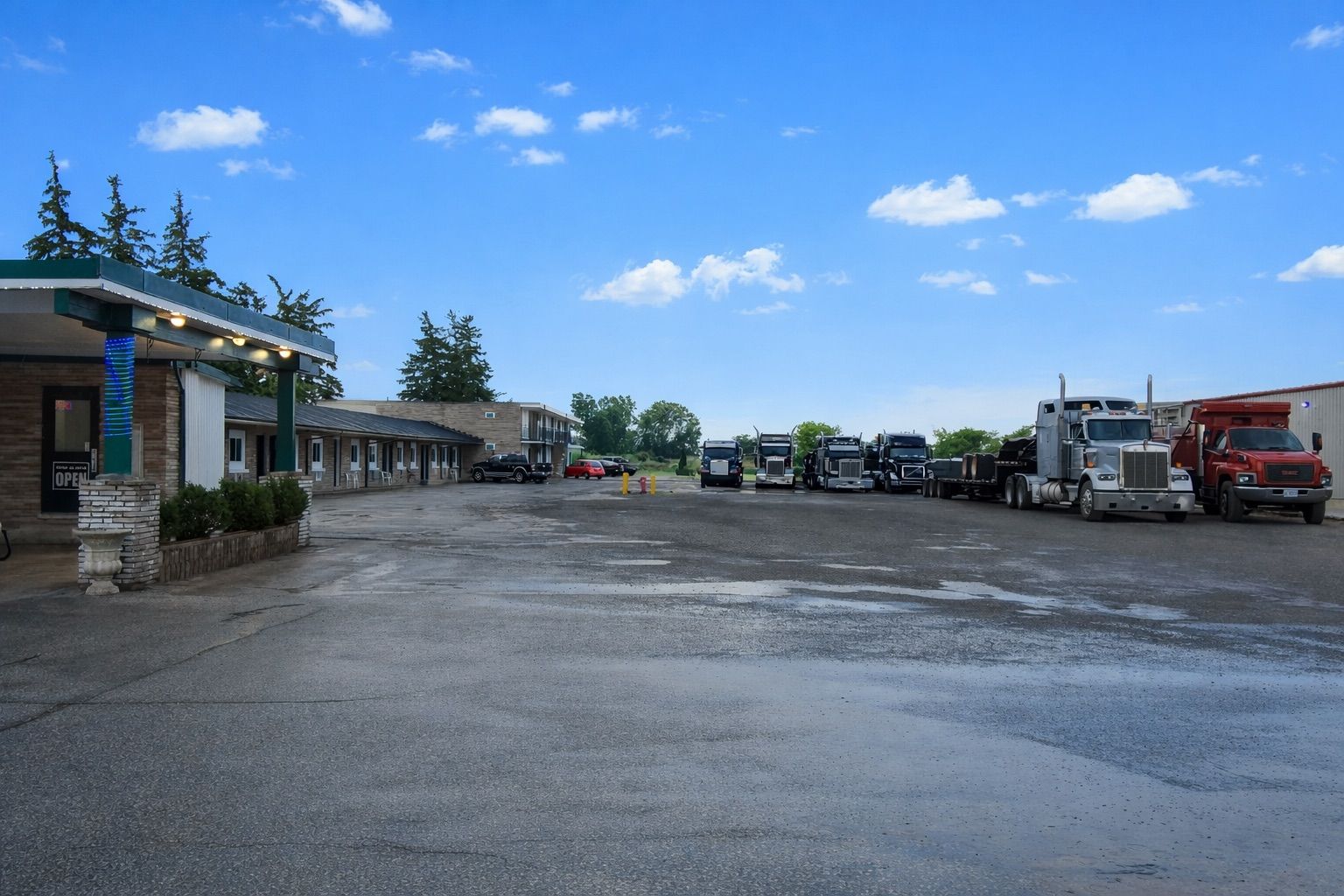 • Ample parking available for over 40 vehicles, including transport trucks.